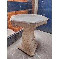 Large concrete garden birdbath with a shell shaped top and classical design plinth. approx. 45cm diameter by 40cm tall