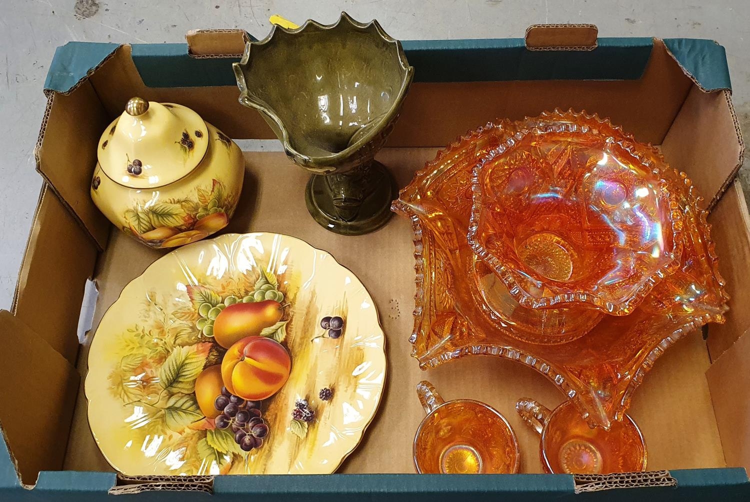 Box of 7 quality ceramic & vasoline glass items (7)