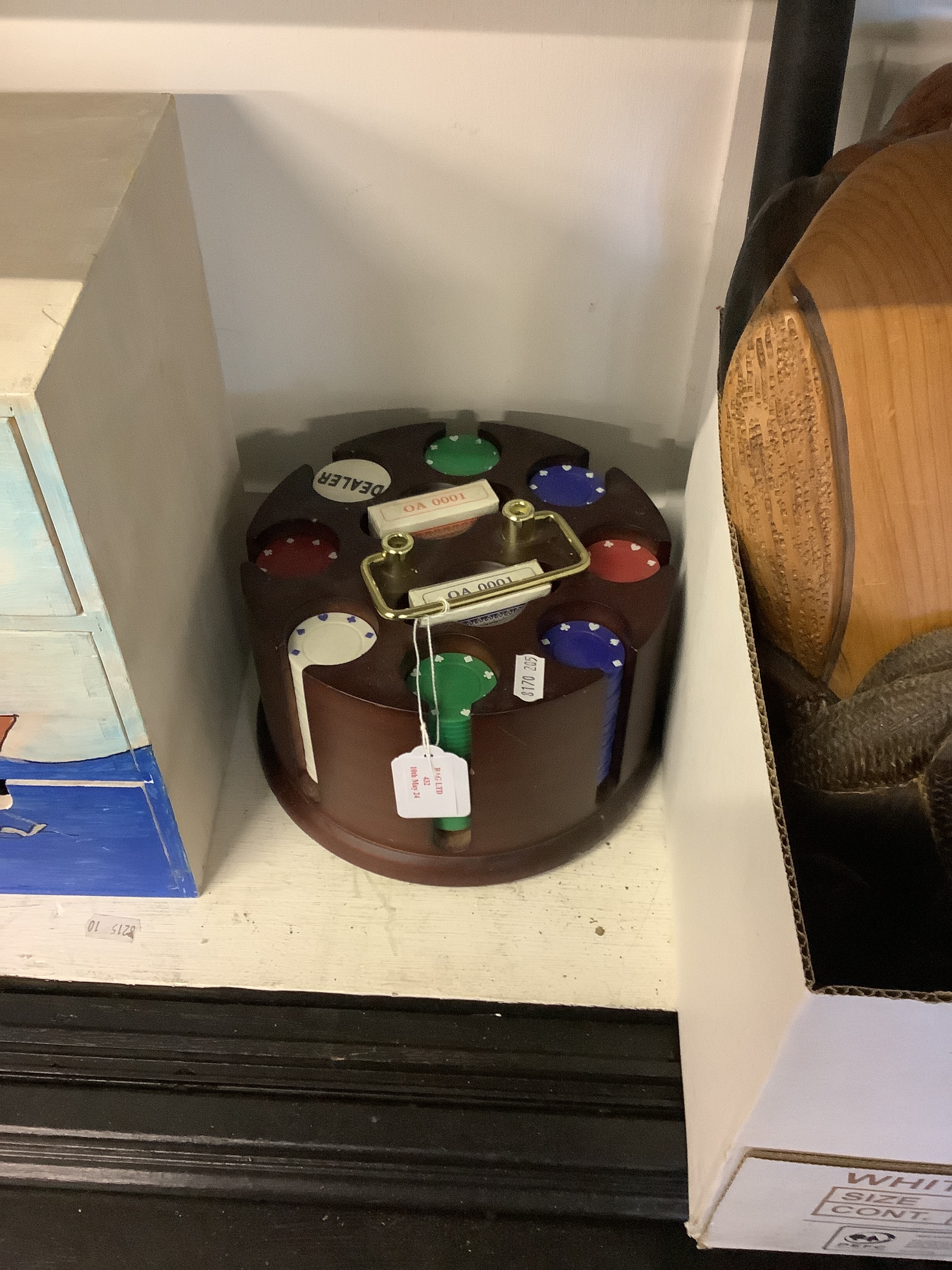 A poker set containing cards, chips etc