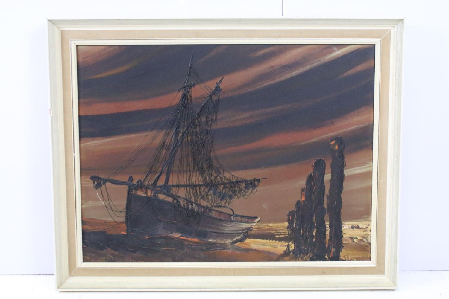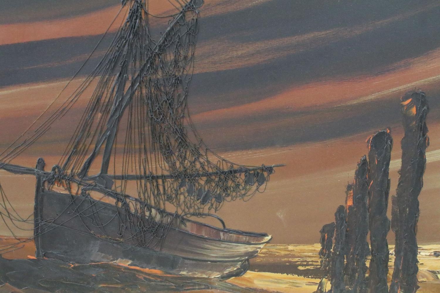 De Dion, sailing boat with rigging, impasto oil on canvas, signed lower left, 44 x 59.5cm, framed