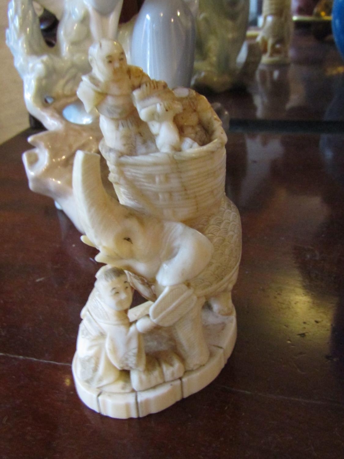 Netsuke Figure of Children with Elephant Approximately 4 Inches High