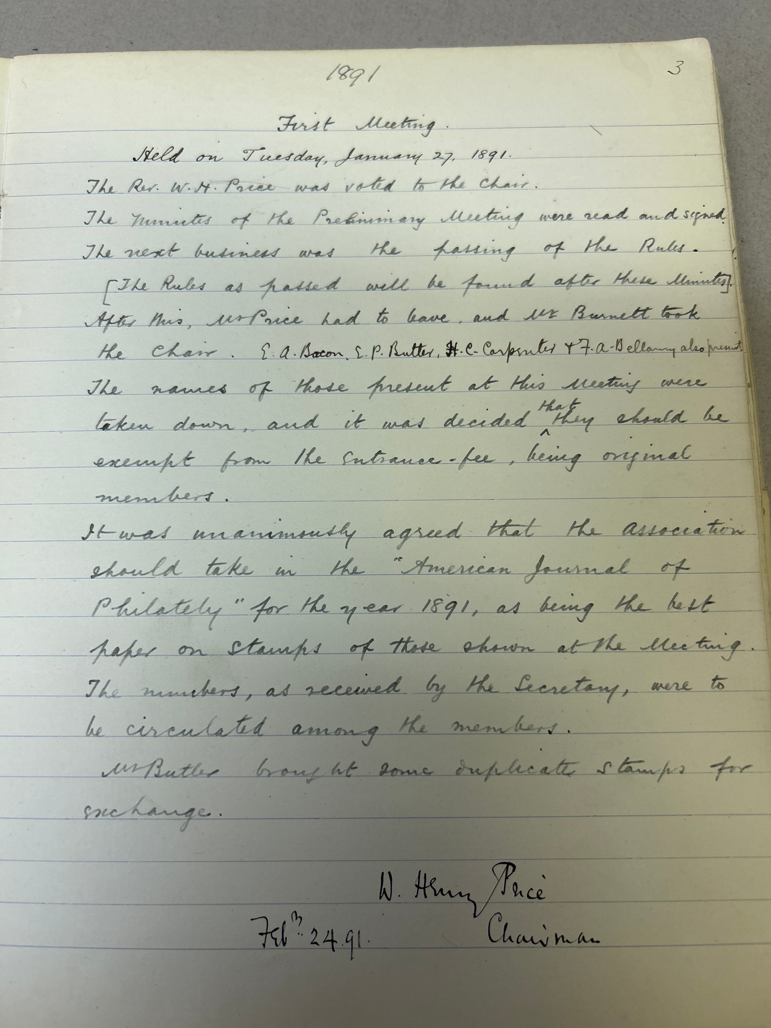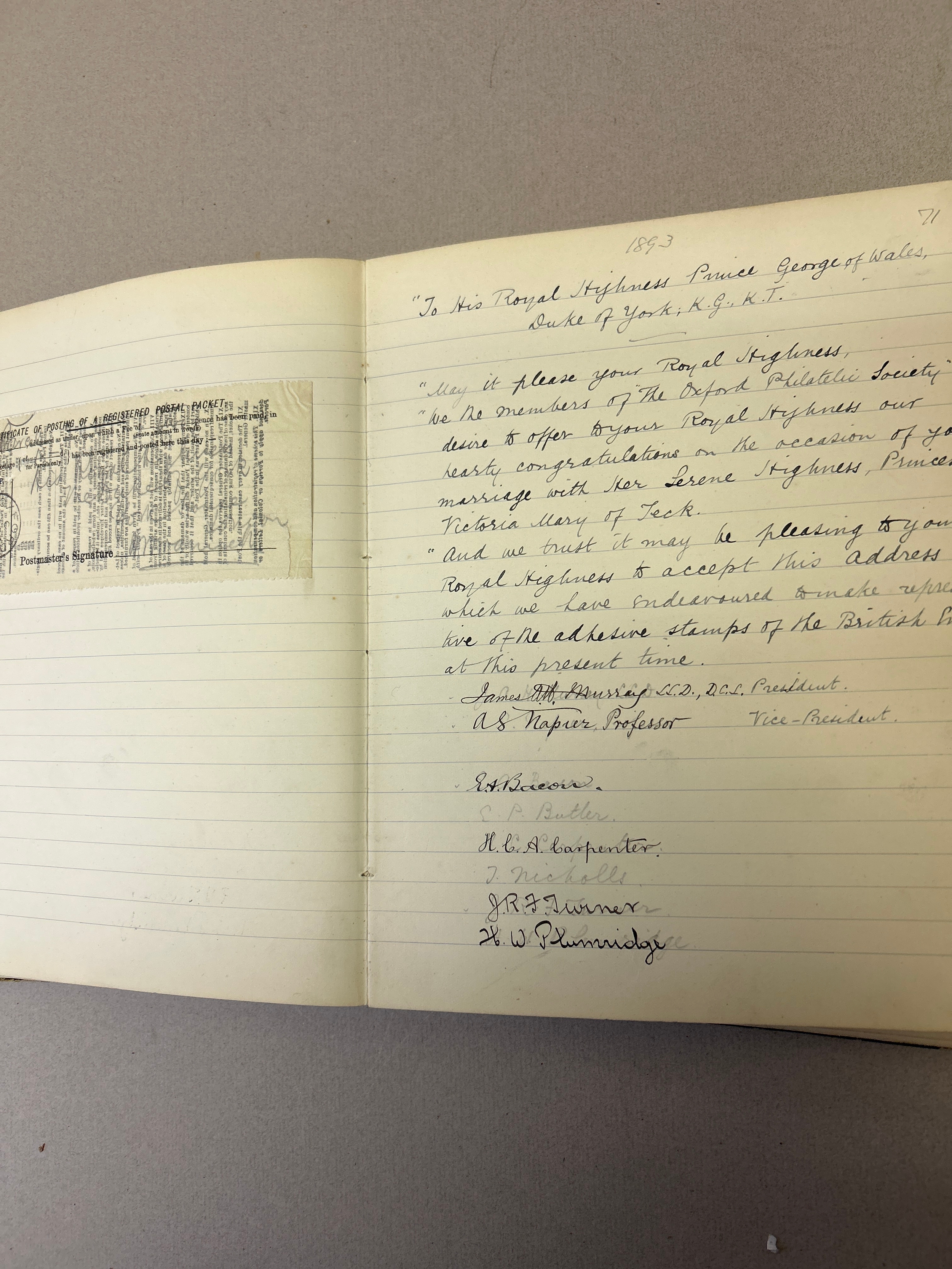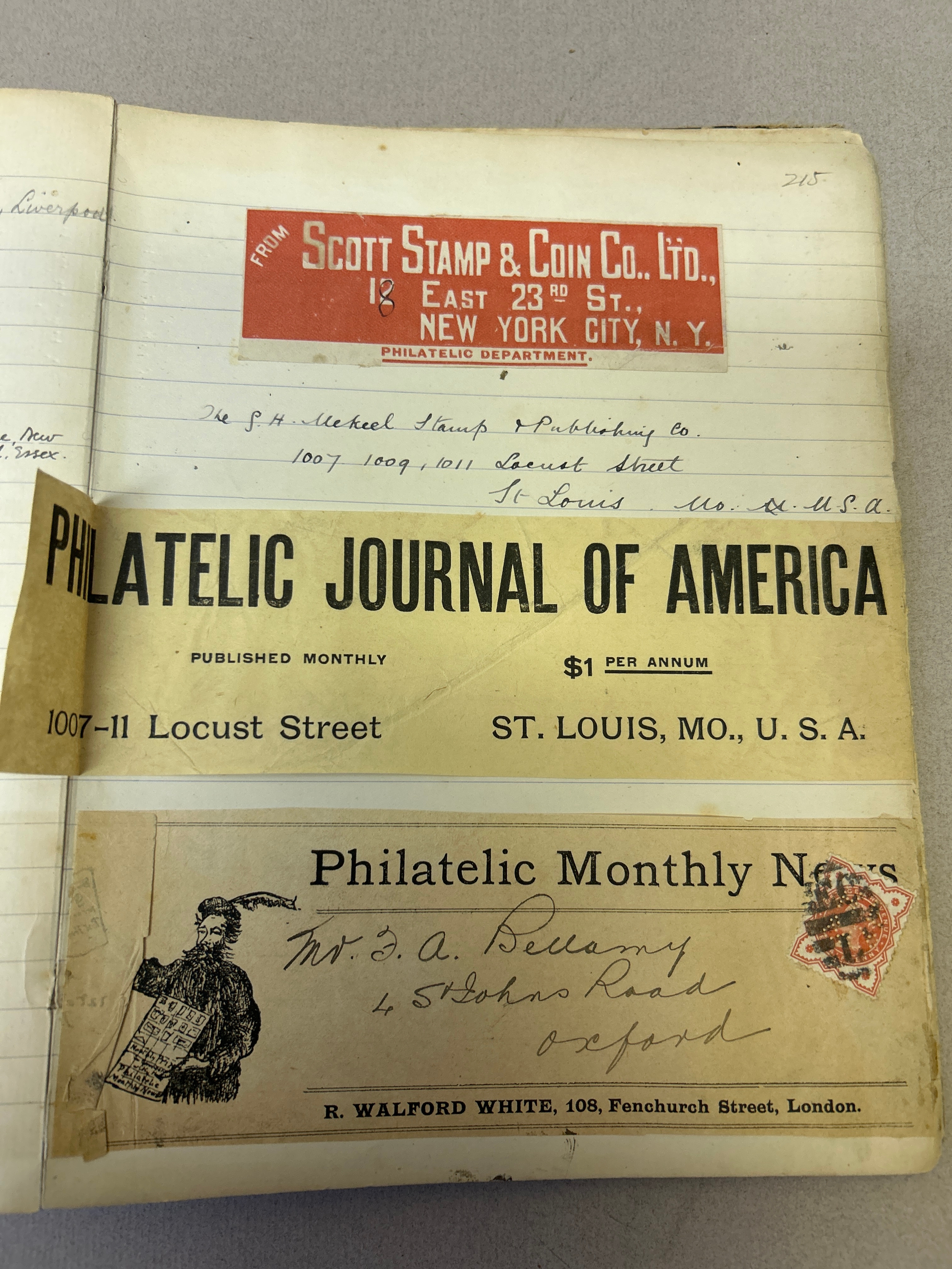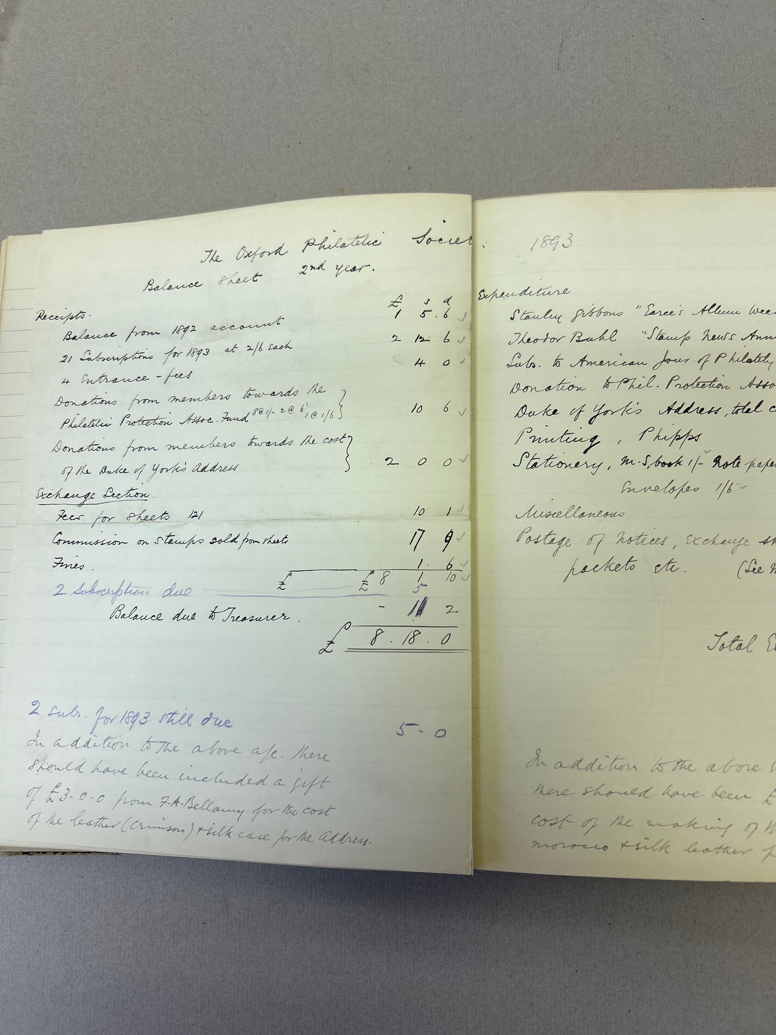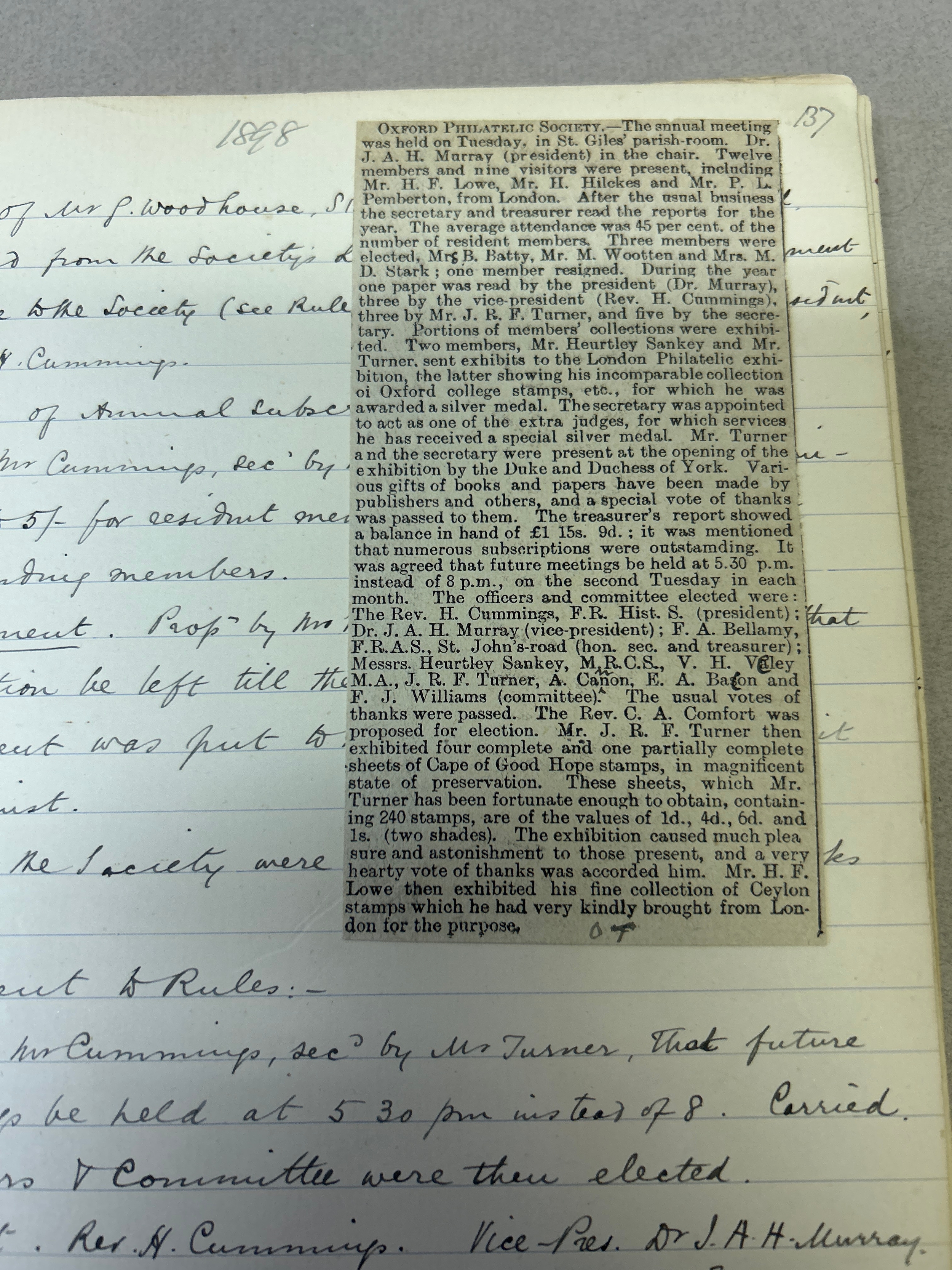 Stamp Collecting, Philately. An important 19th Century Minute Book of the Jubilee Philatelic Association (1890) and the Oxford Philatelic Society. The minutes cover the period January 1890 to December 1901. As well as minutes the book contains balance sheets, lists of members (included Mayor of Oxford), a Newspaper cutting, letter from a member (headed Oxford County Asylum Littlemore 1901), letter headings of other philatelic organisations in America etc