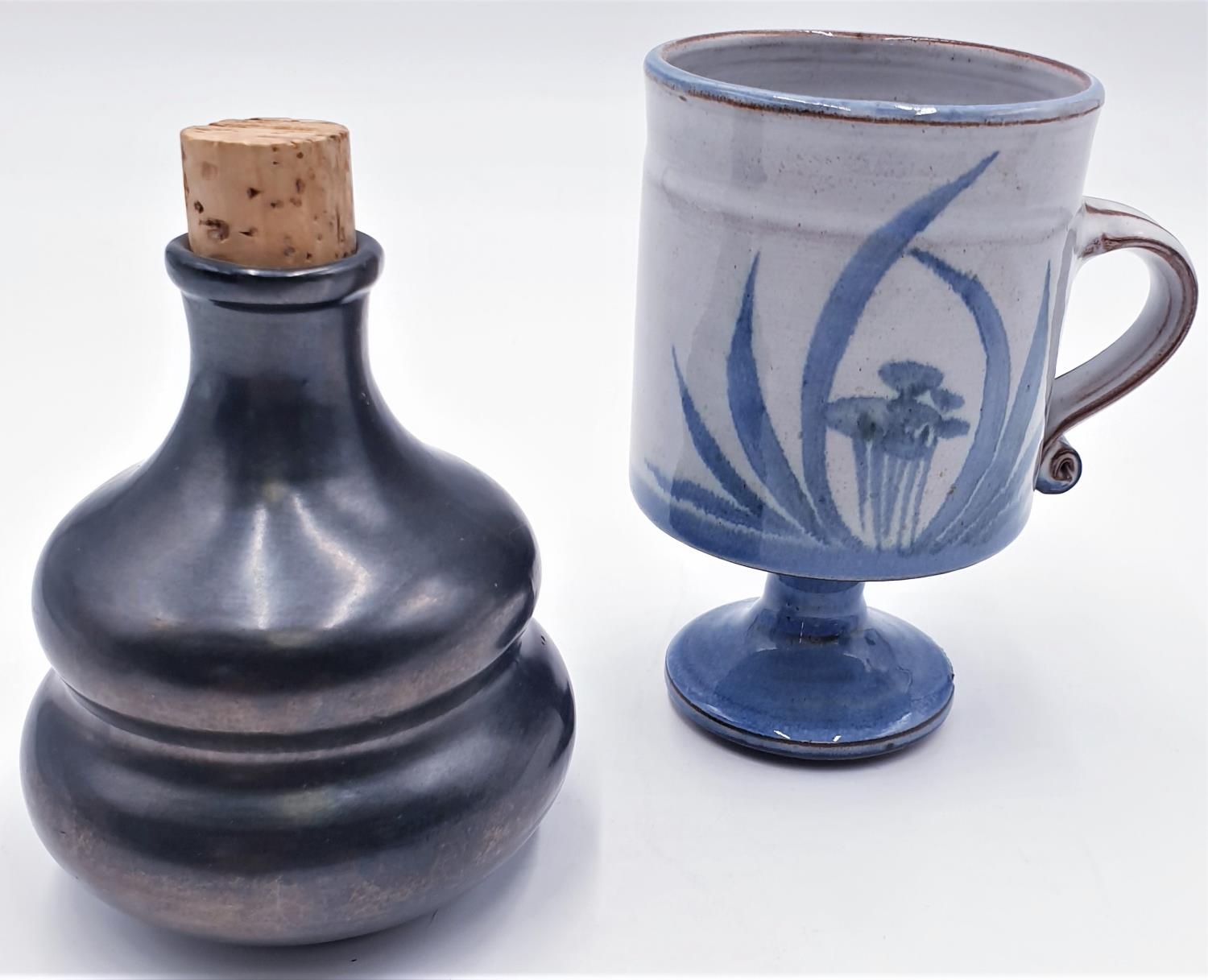 STUDIO CERAMICS A PHILIP HARRIS BULBOUS BOTTLE Plus A BRIGLIN MUG/CUP