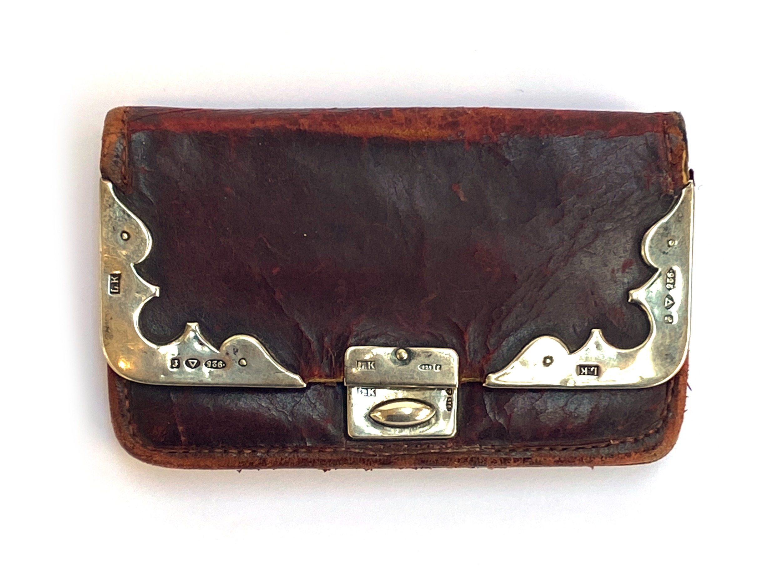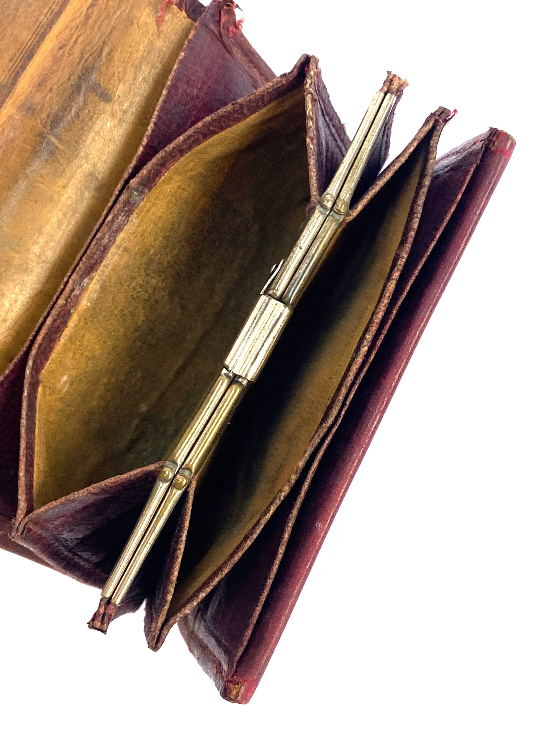 An Edwardian silver mounted red leather purse, import marks for Birmingham 1905