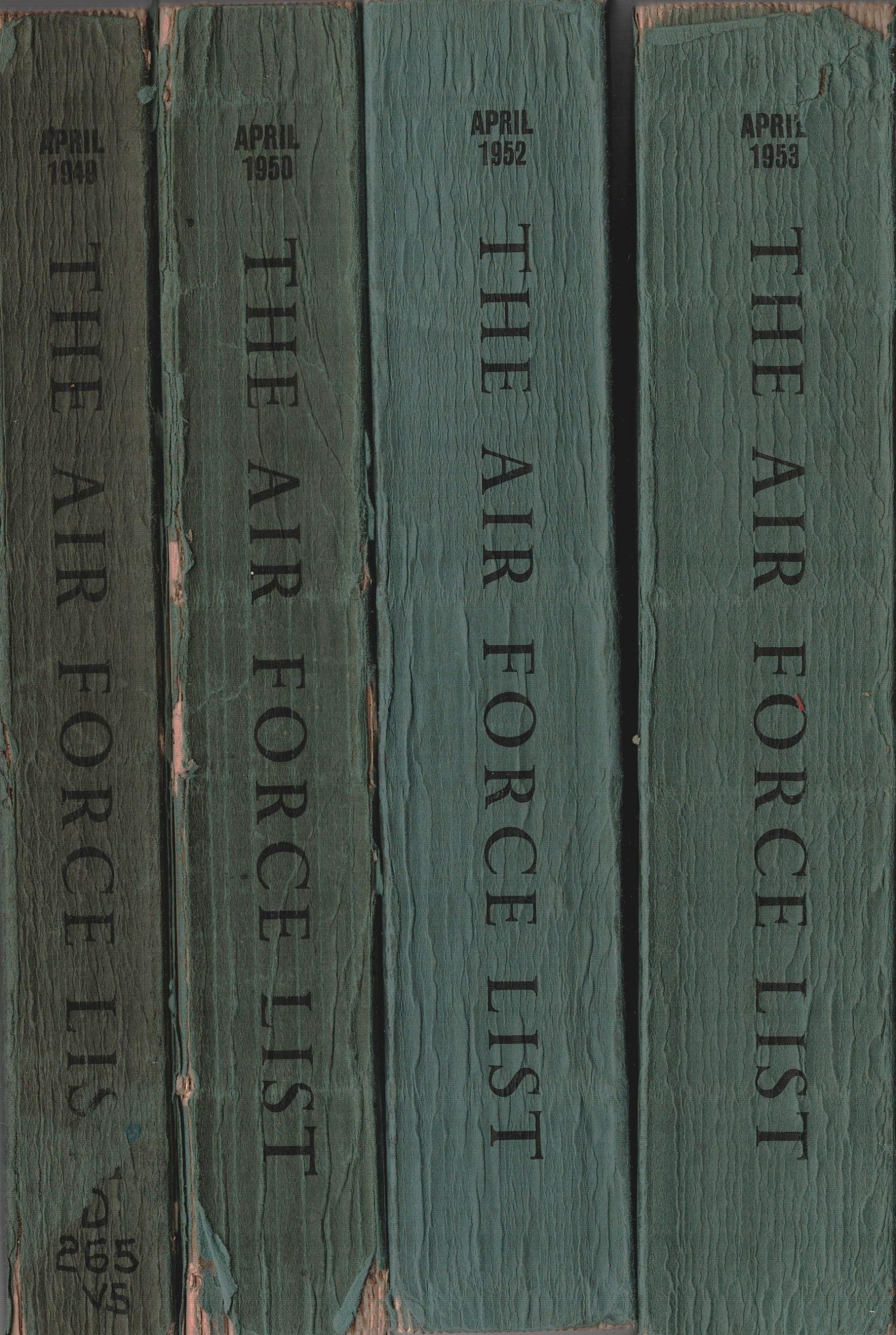 The Air Force List Paperback Books Collection 4. April 1949, April 1950, April 1952, April 1953. Some pages are torn.