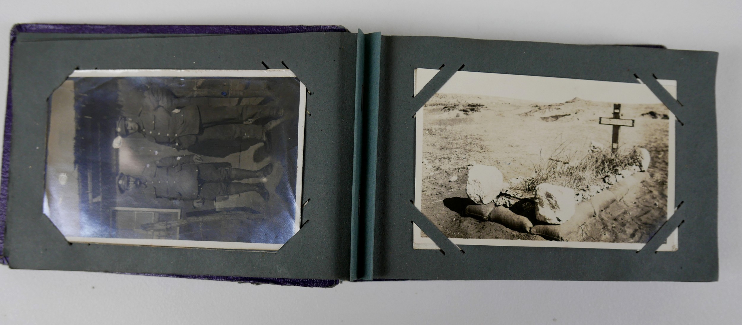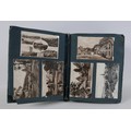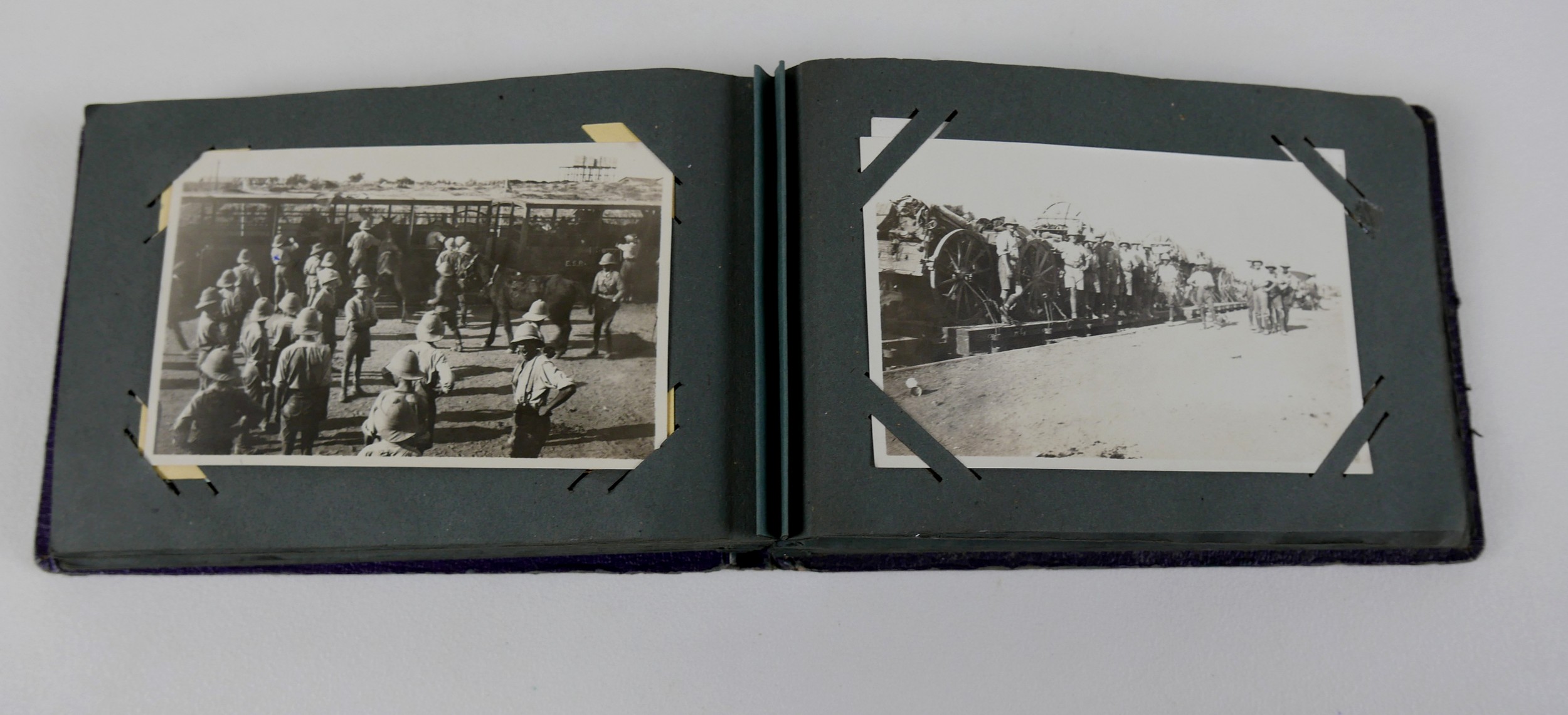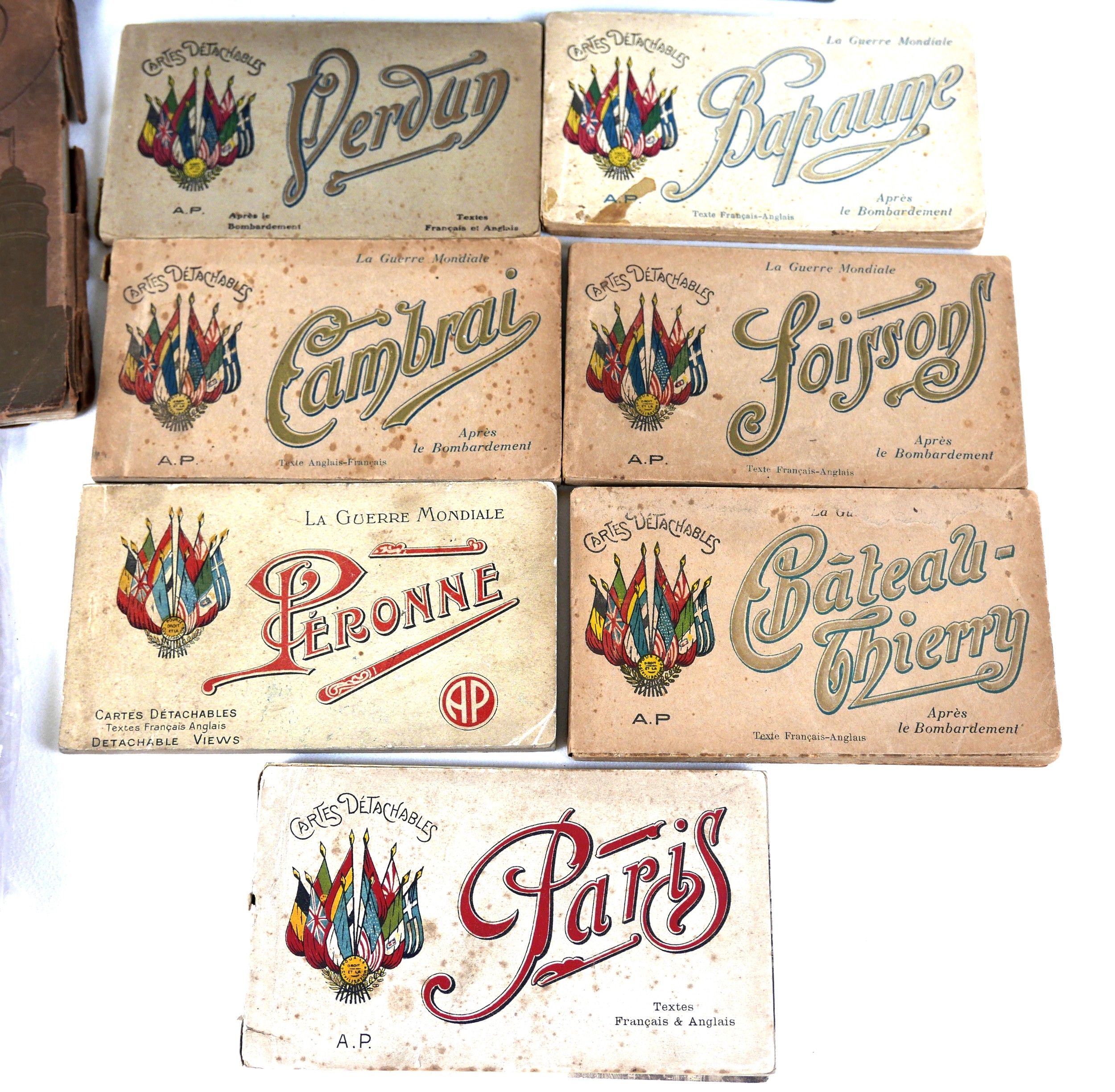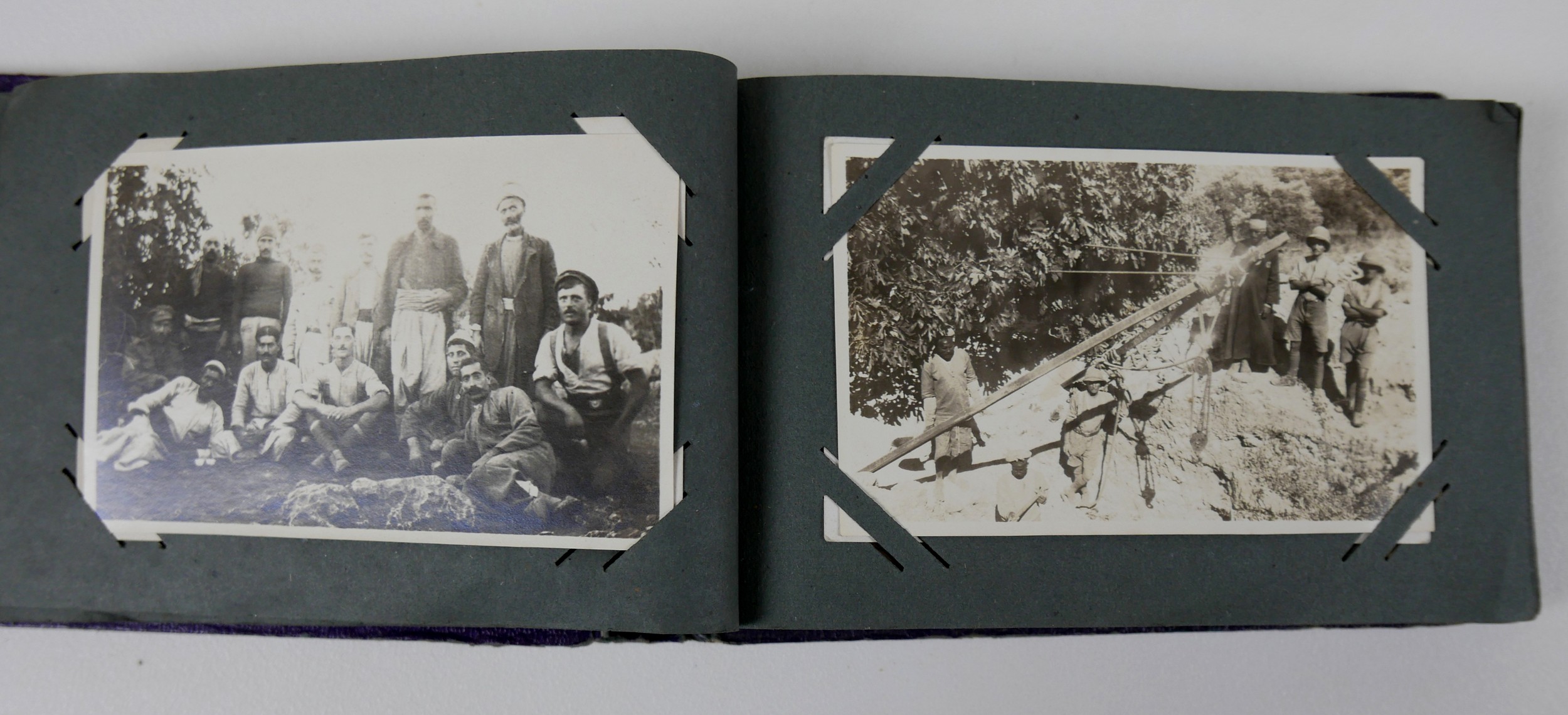 A postcard album, containing topographical and some humorous postcards, an album of early 20th century Egypt photo and postcards, seven WWI A. P. Cartes Detachables, a Souvenir de Constantinople, and an Arabic language book. (1 bag)