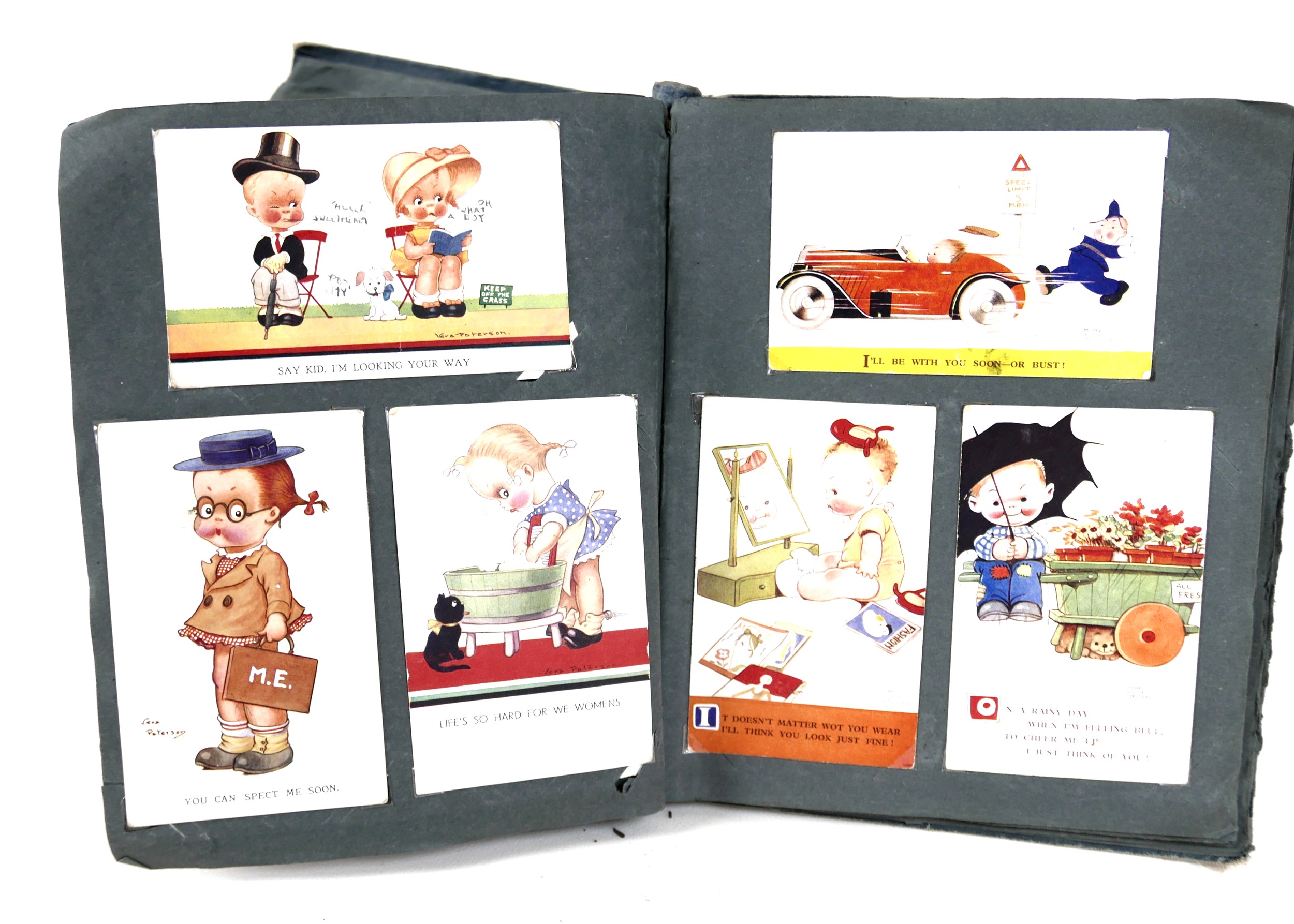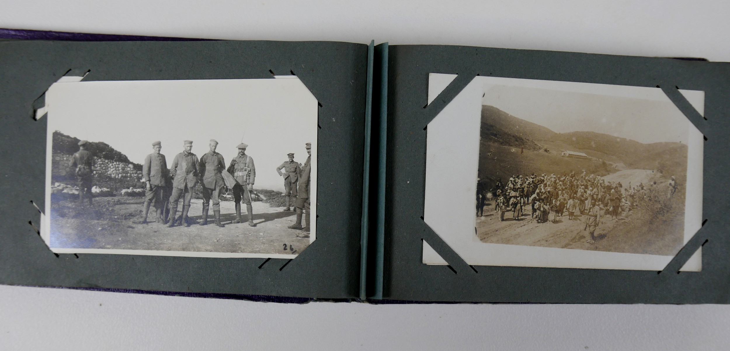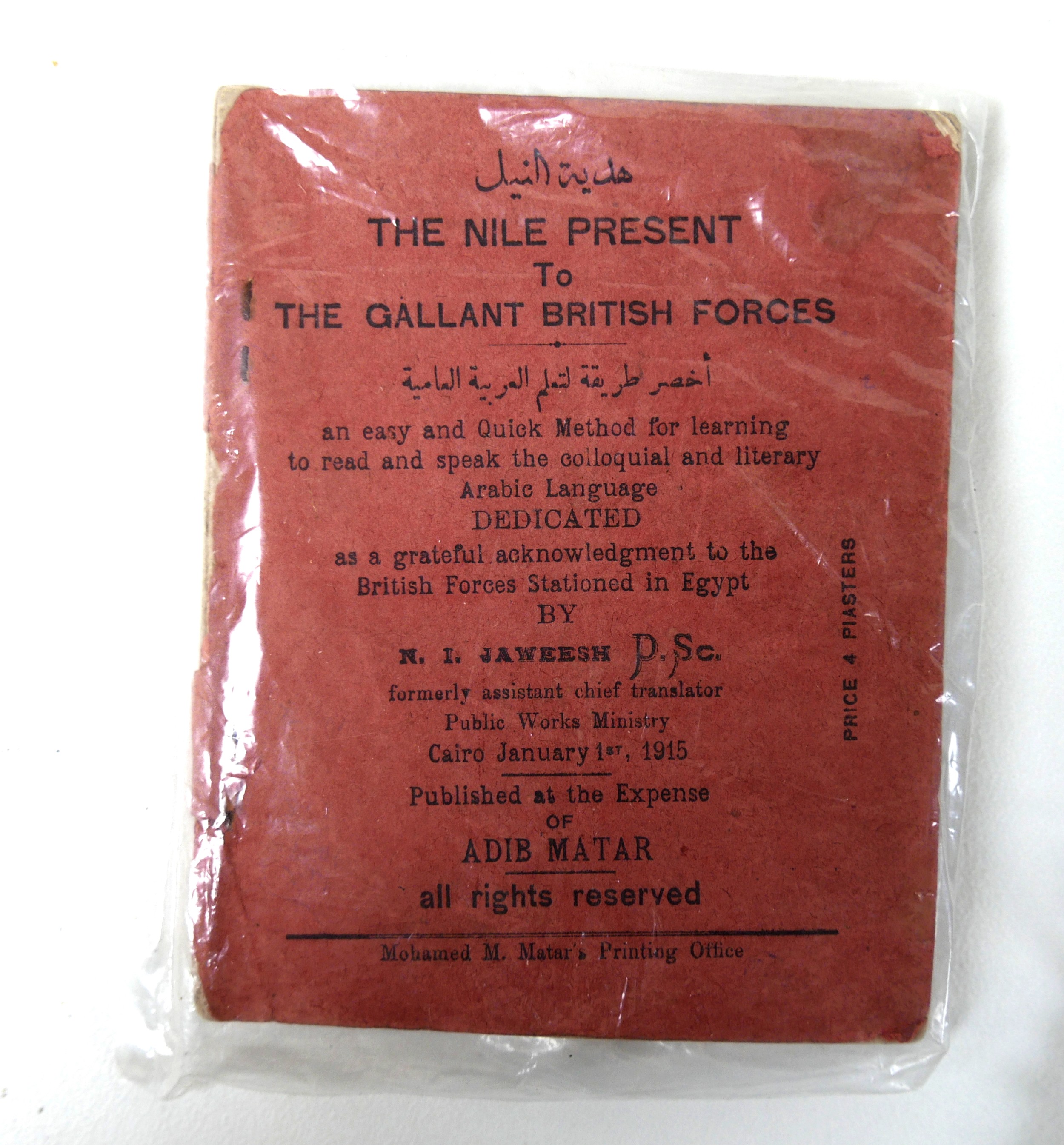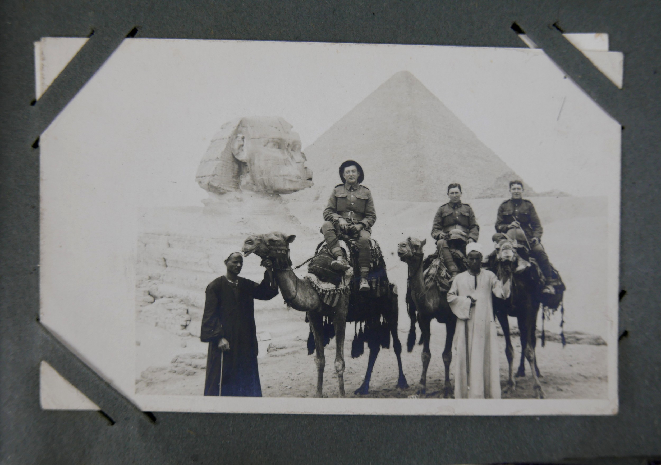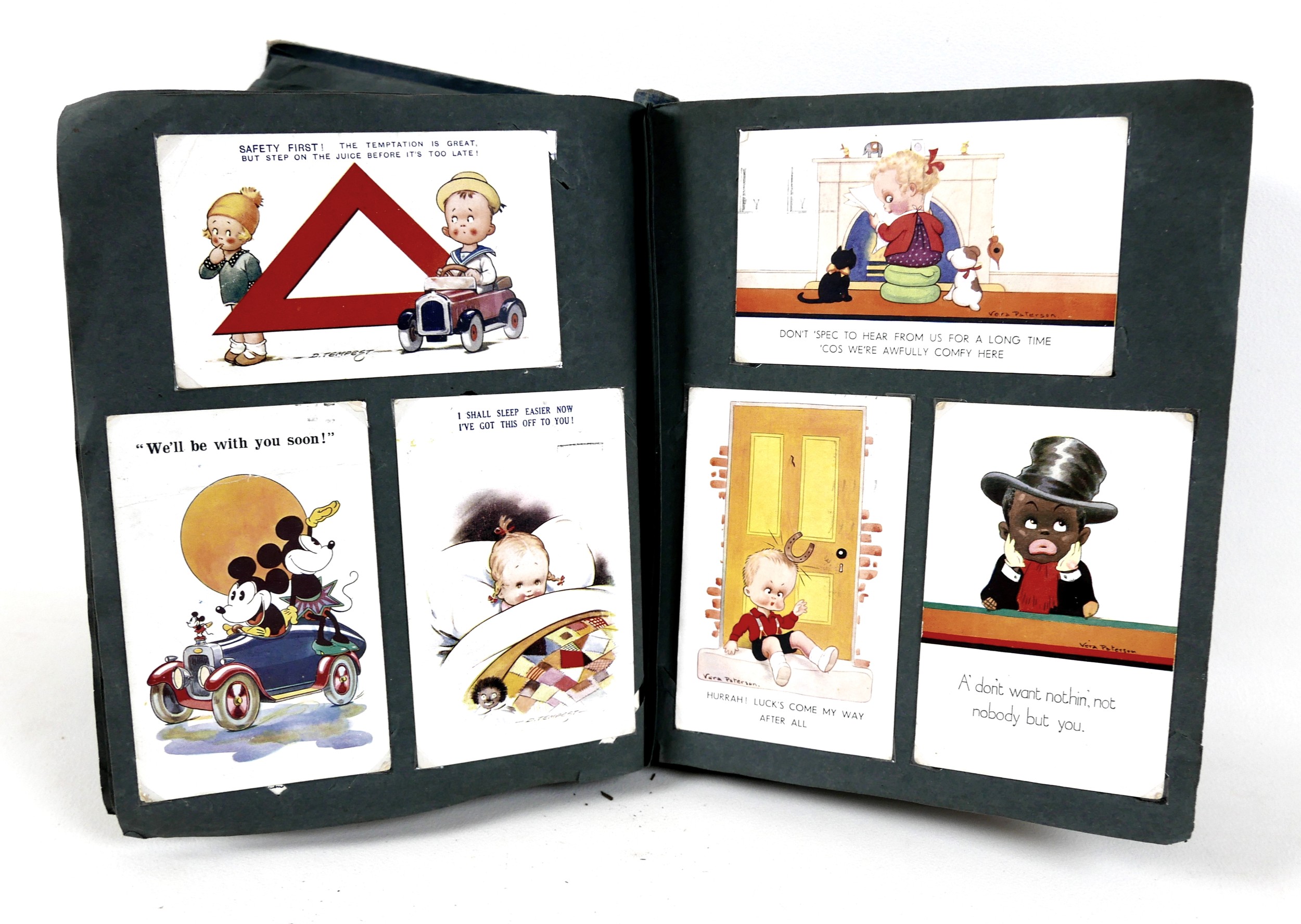 A postcard album, containing topographical and some humorous postcards, an album of early 20th century Egypt photo and postcards, seven WWI A. P. Cartes Detachables, a Souvenir de Constantinople, and an Arabic language book. (1 bag)