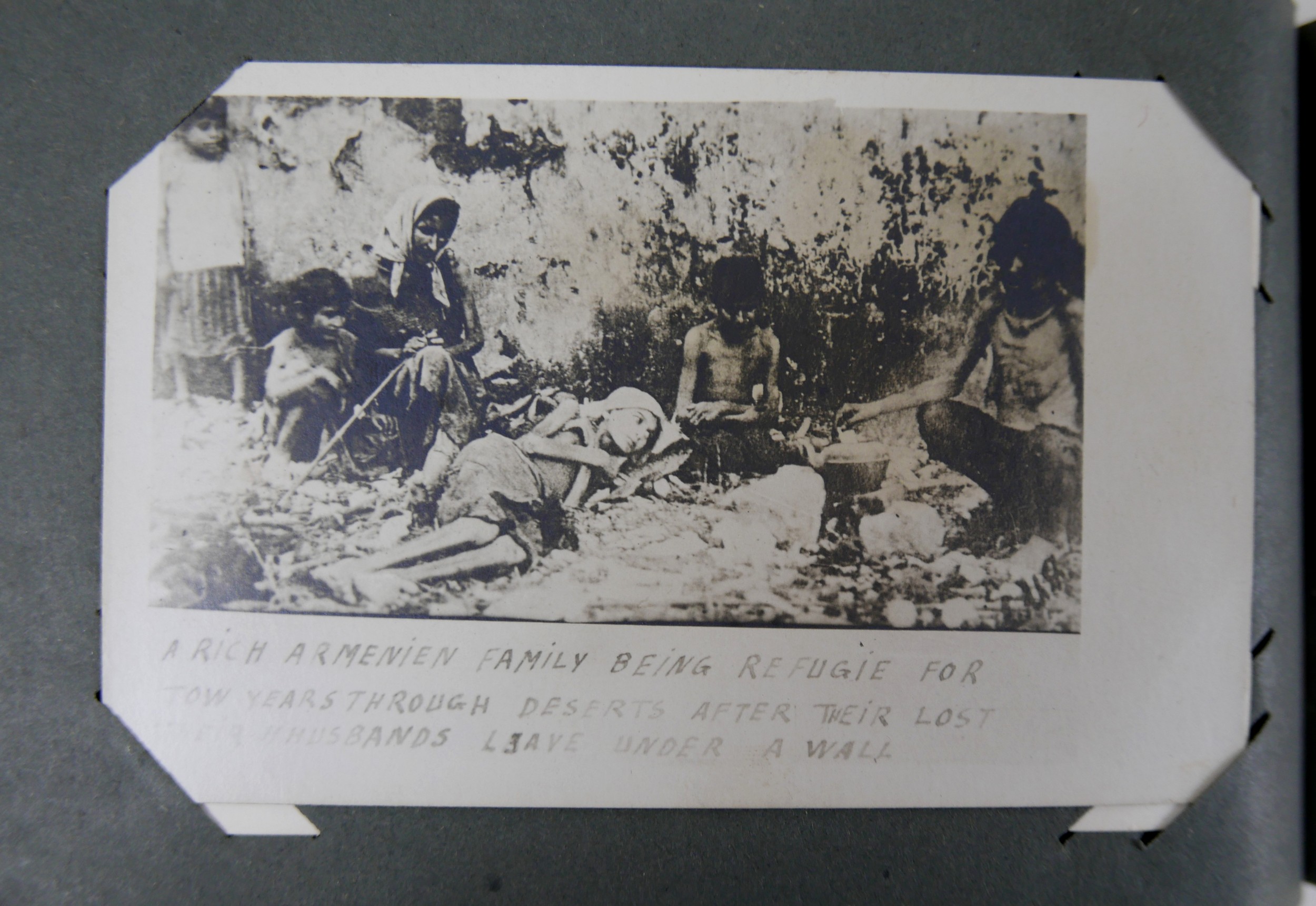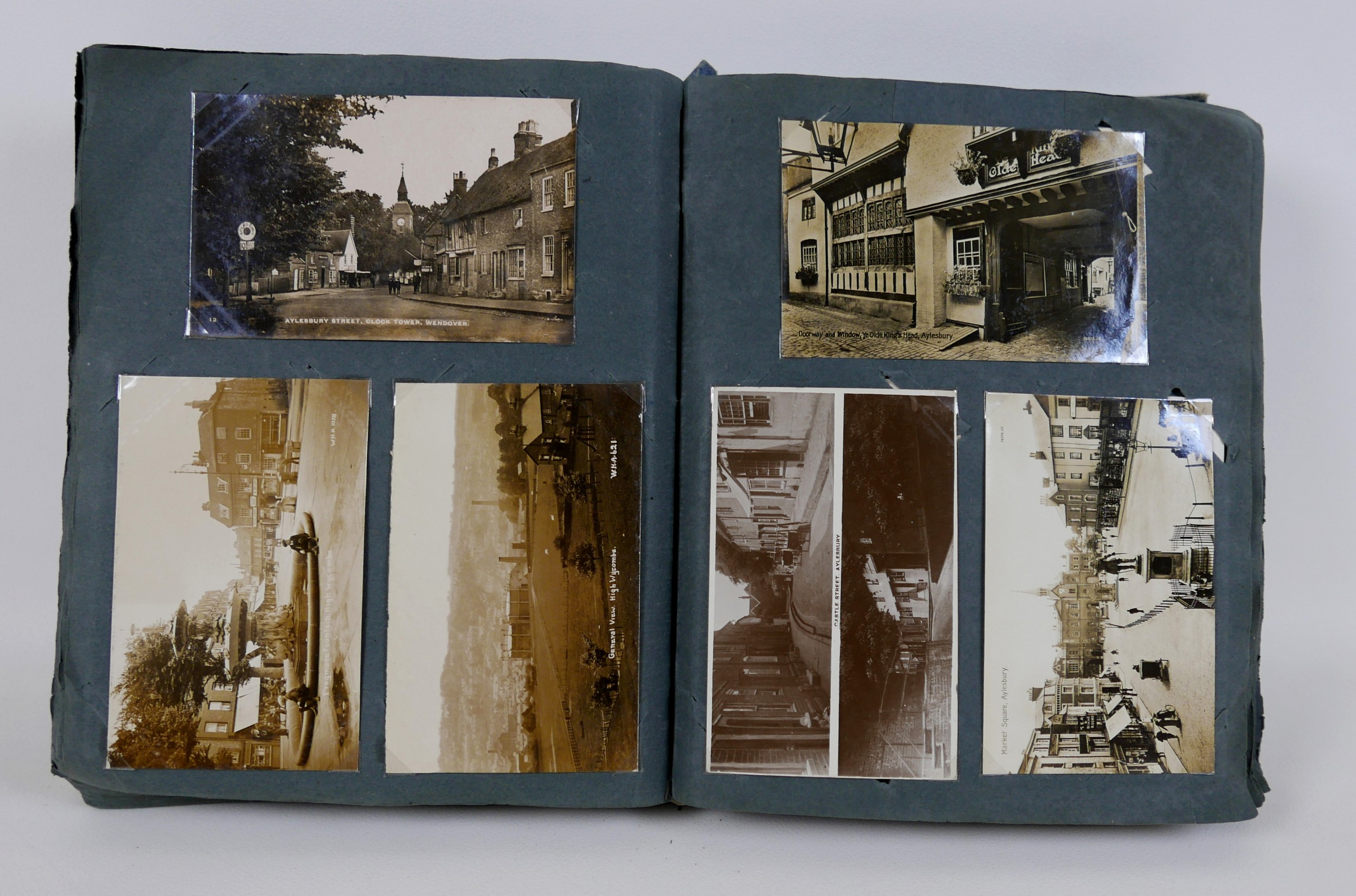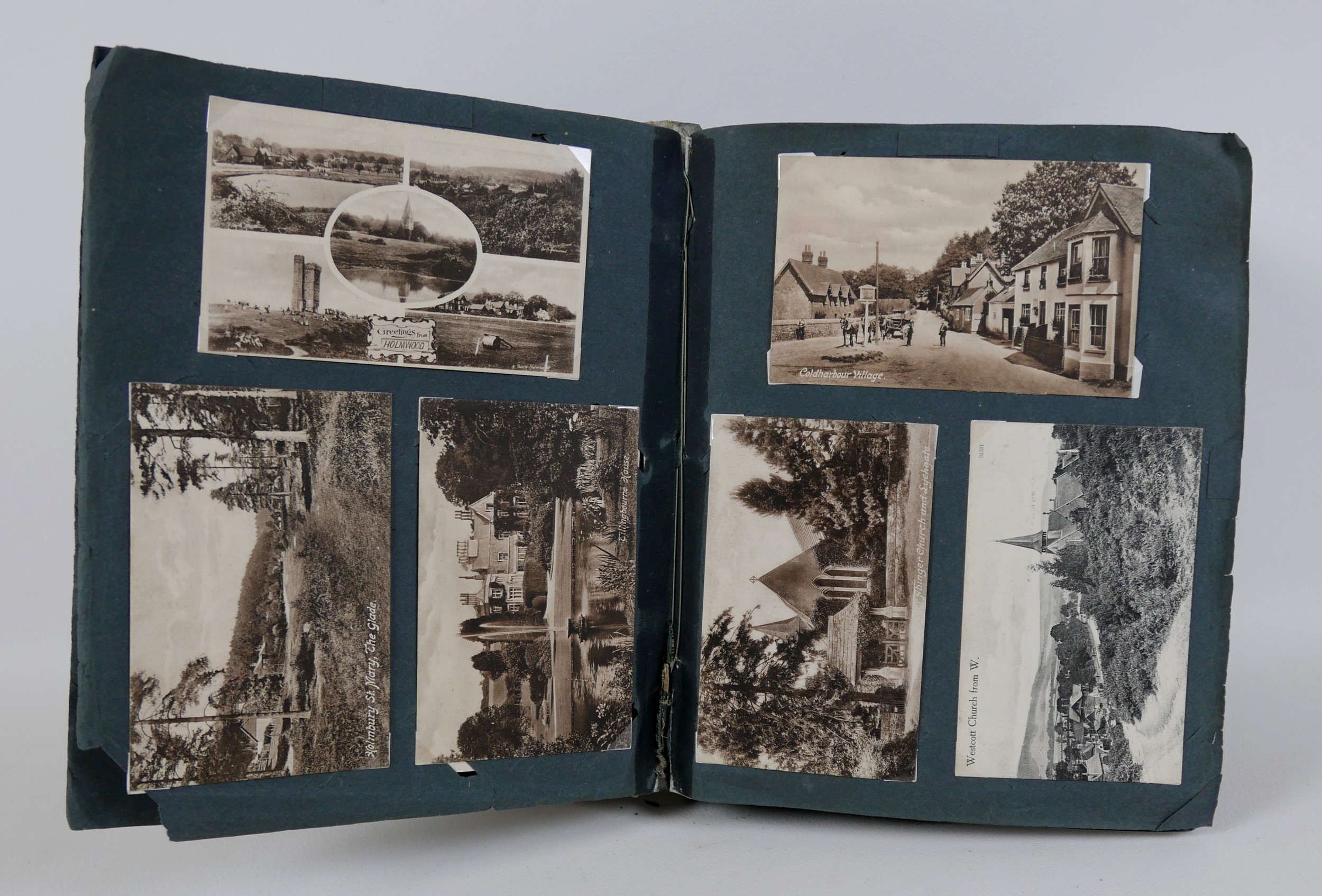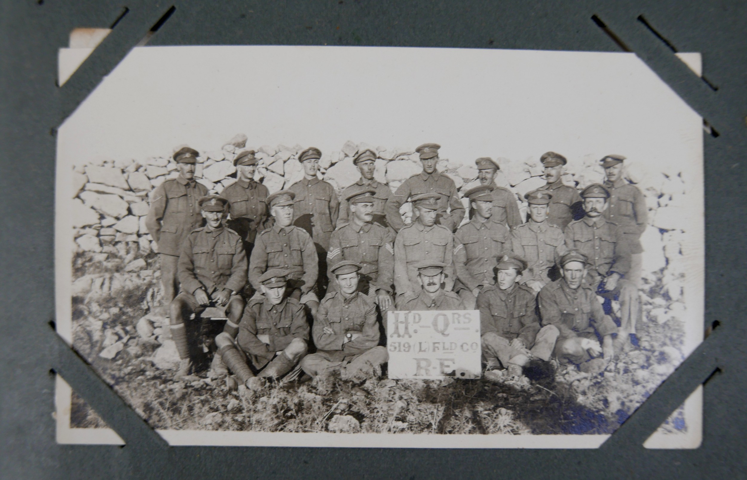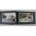 A postcard album, containing topographical and some humorous postcards, an album of early 20th century Egypt photo and postcards, seven WWI A. P. Cartes Detachables, a Souvenir de Constantinople, and an Arabic language book. (1 bag)