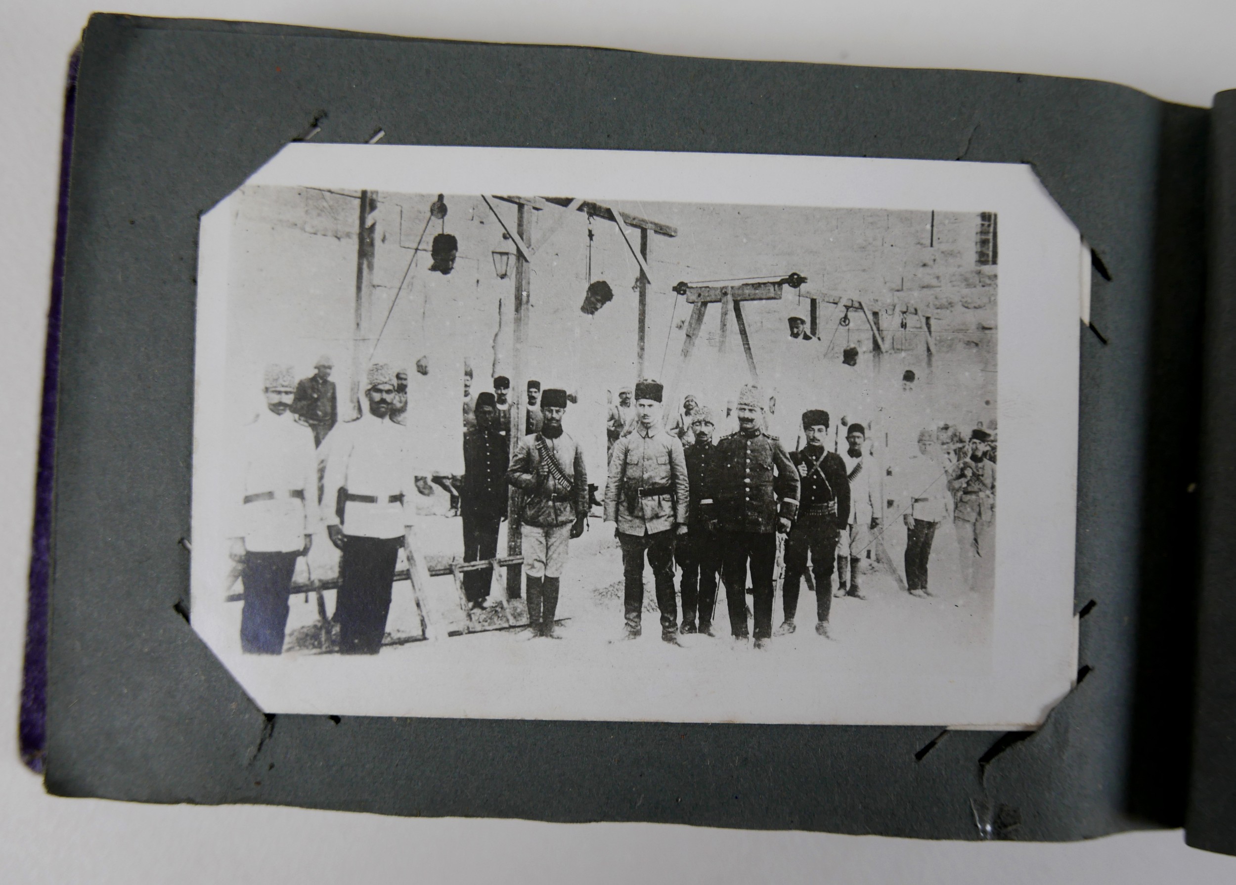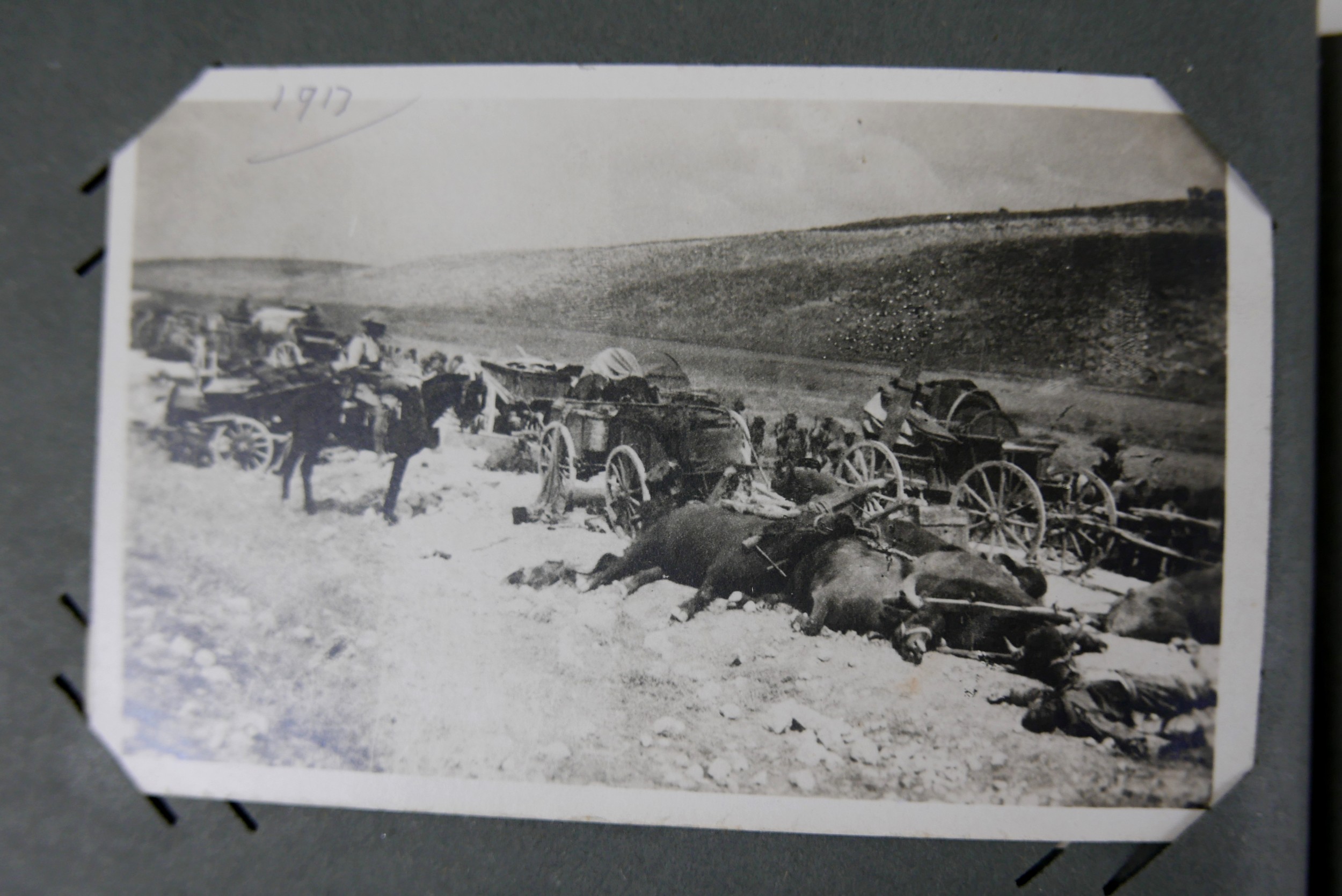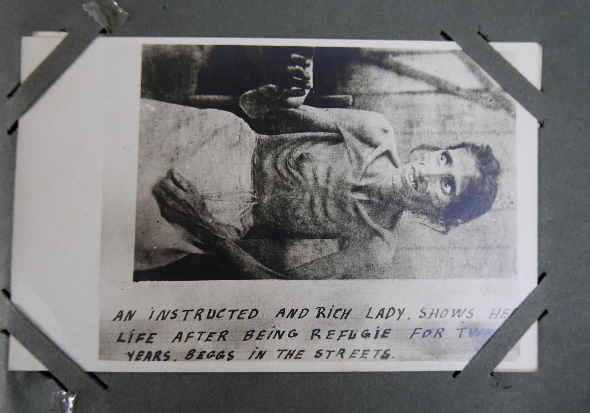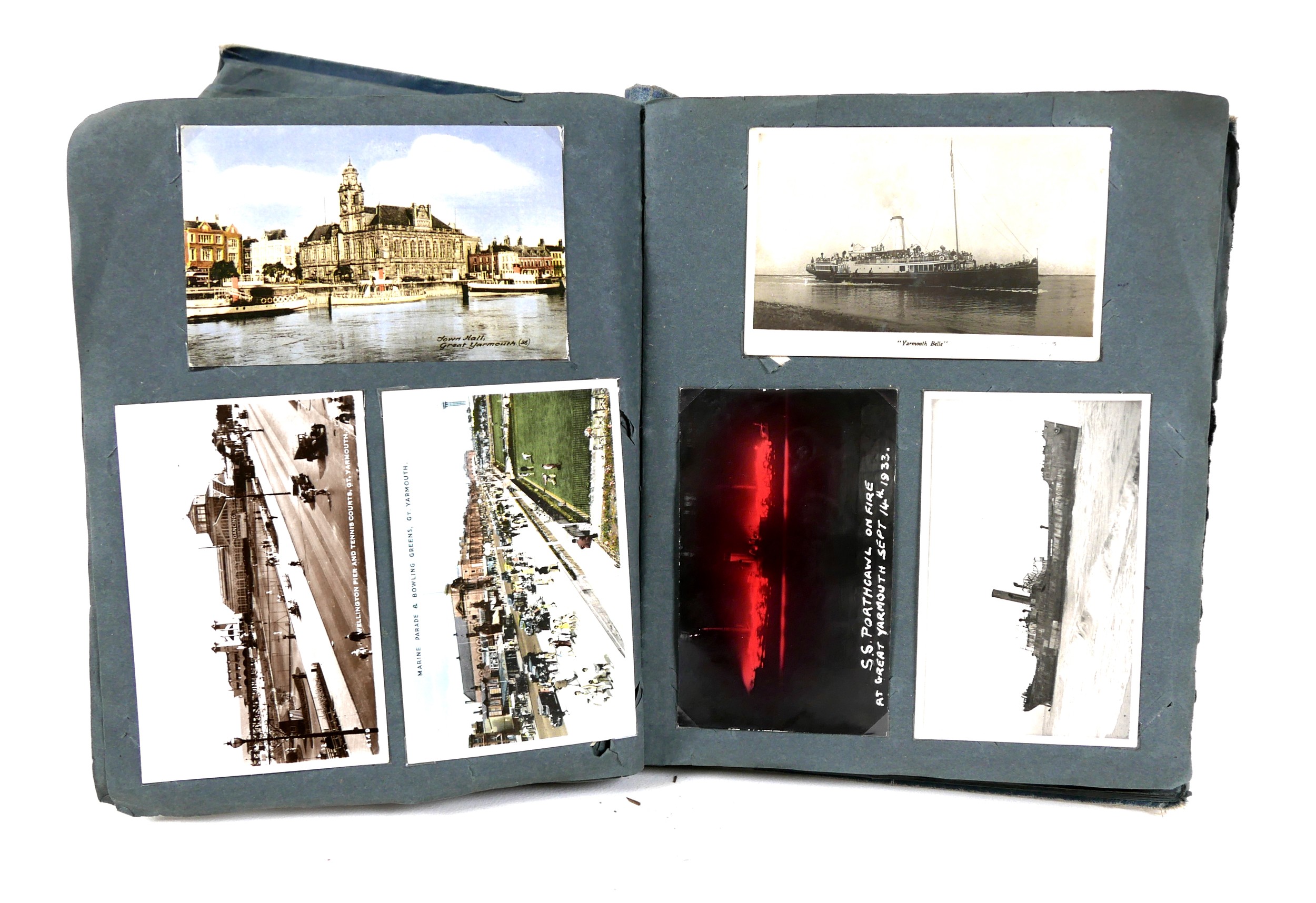 A postcard album, containing topographical and some humorous postcards, an album of early 20th century Egypt photo and postcards, seven WWI A. P. Cartes Detachables, a Souvenir de Constantinople, and an Arabic language book. (1 bag)