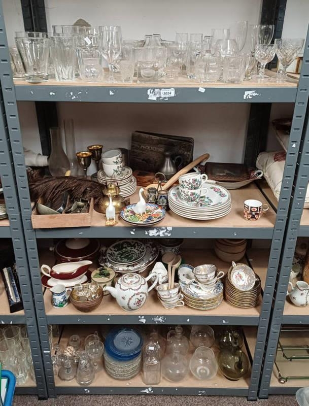 GOOD SELECTION GLASSWARE, PORCELAIN, ORIENTAL WARE ETC ON 4 SHELVES
