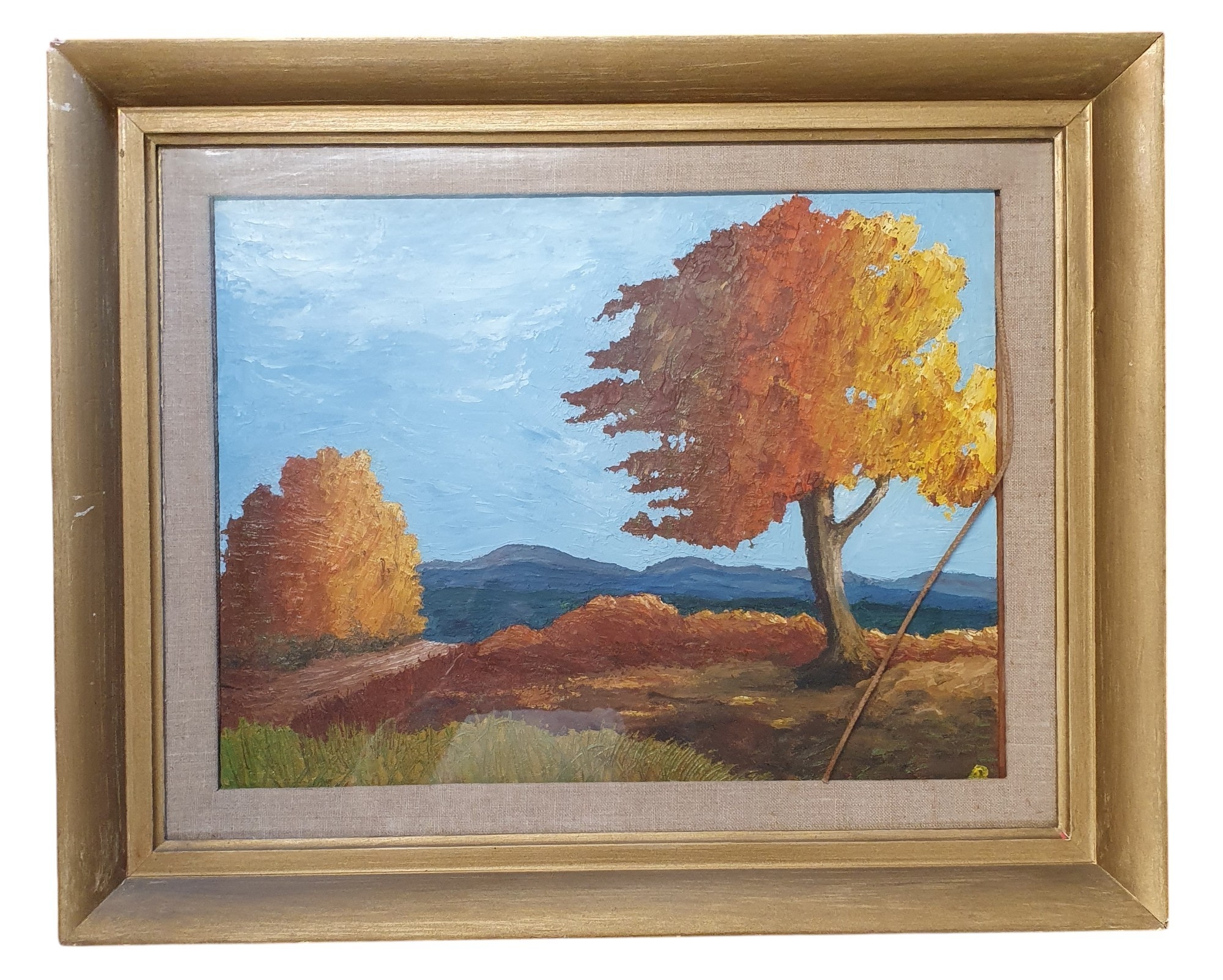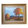 A 20th Century Oil on Board of an autumnal scene at sunset. Monogrammed LR. 40 x 38 cm approx.