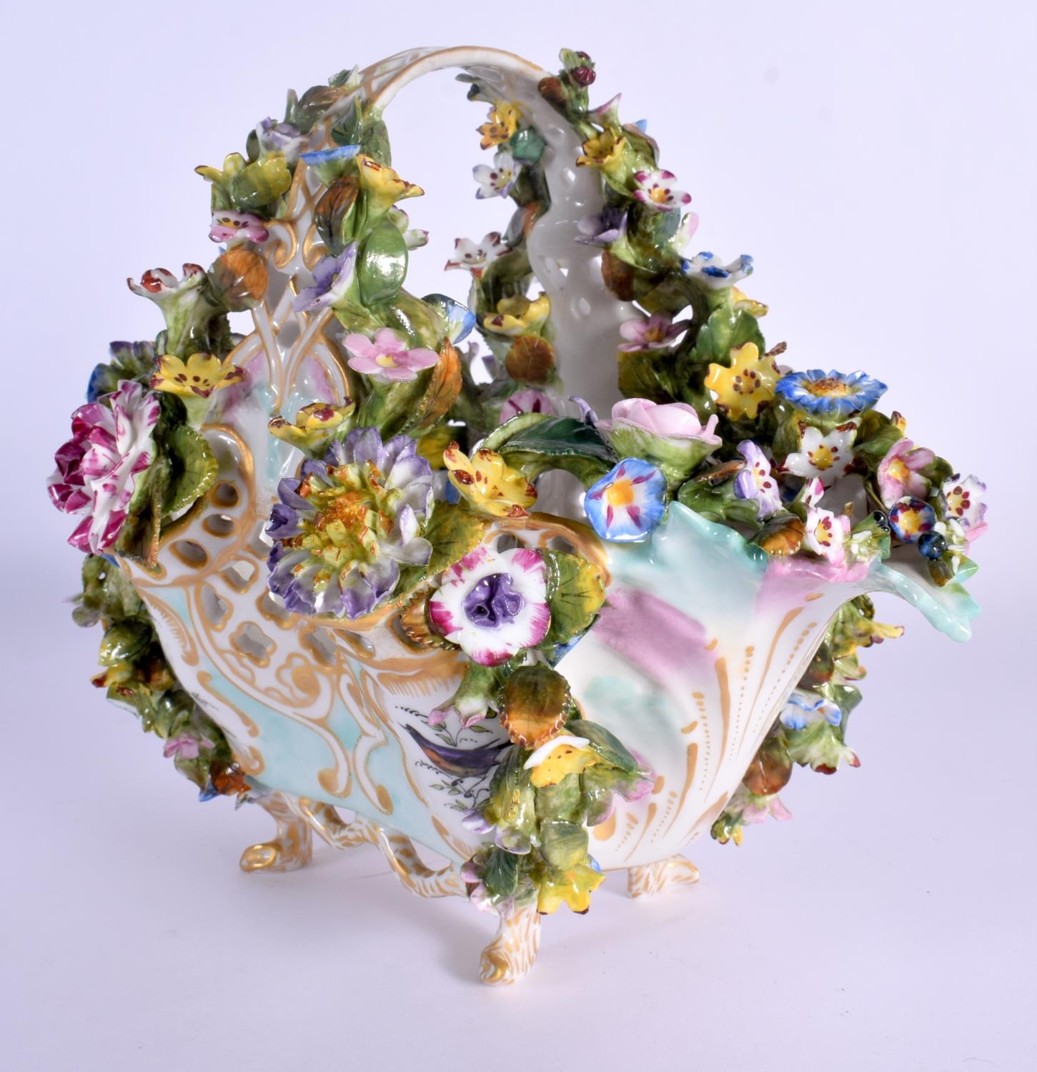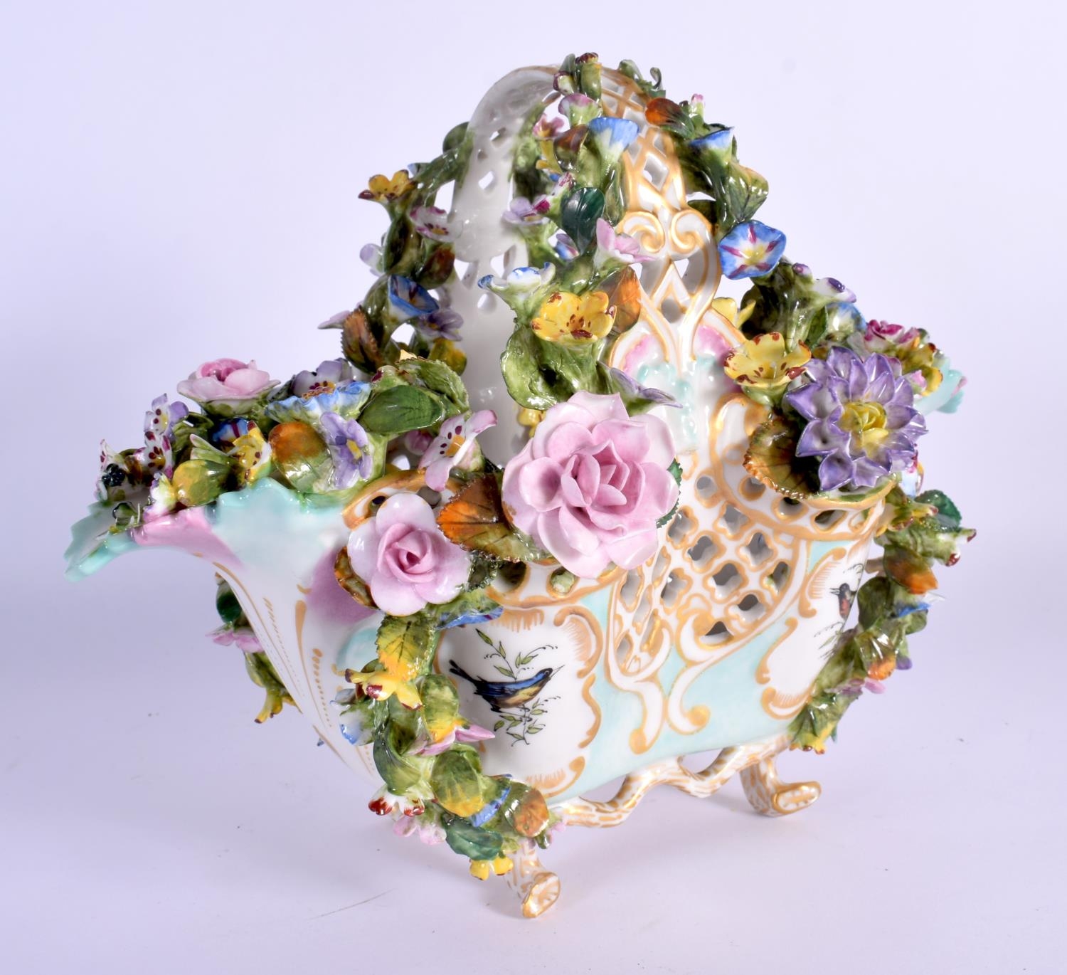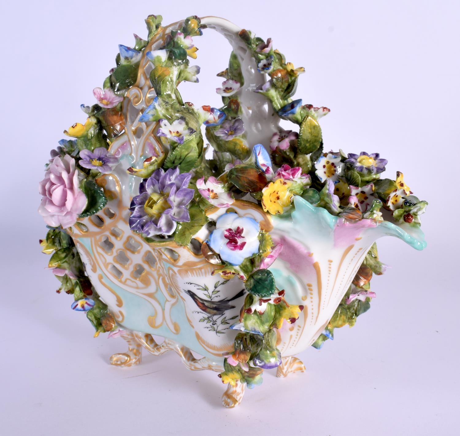 A MID 19TH CENTURY CONTINENTAL PORCELAIN BASKET encrusted all over with foliage painted with birds. 24 cm x 18 cm.