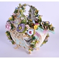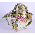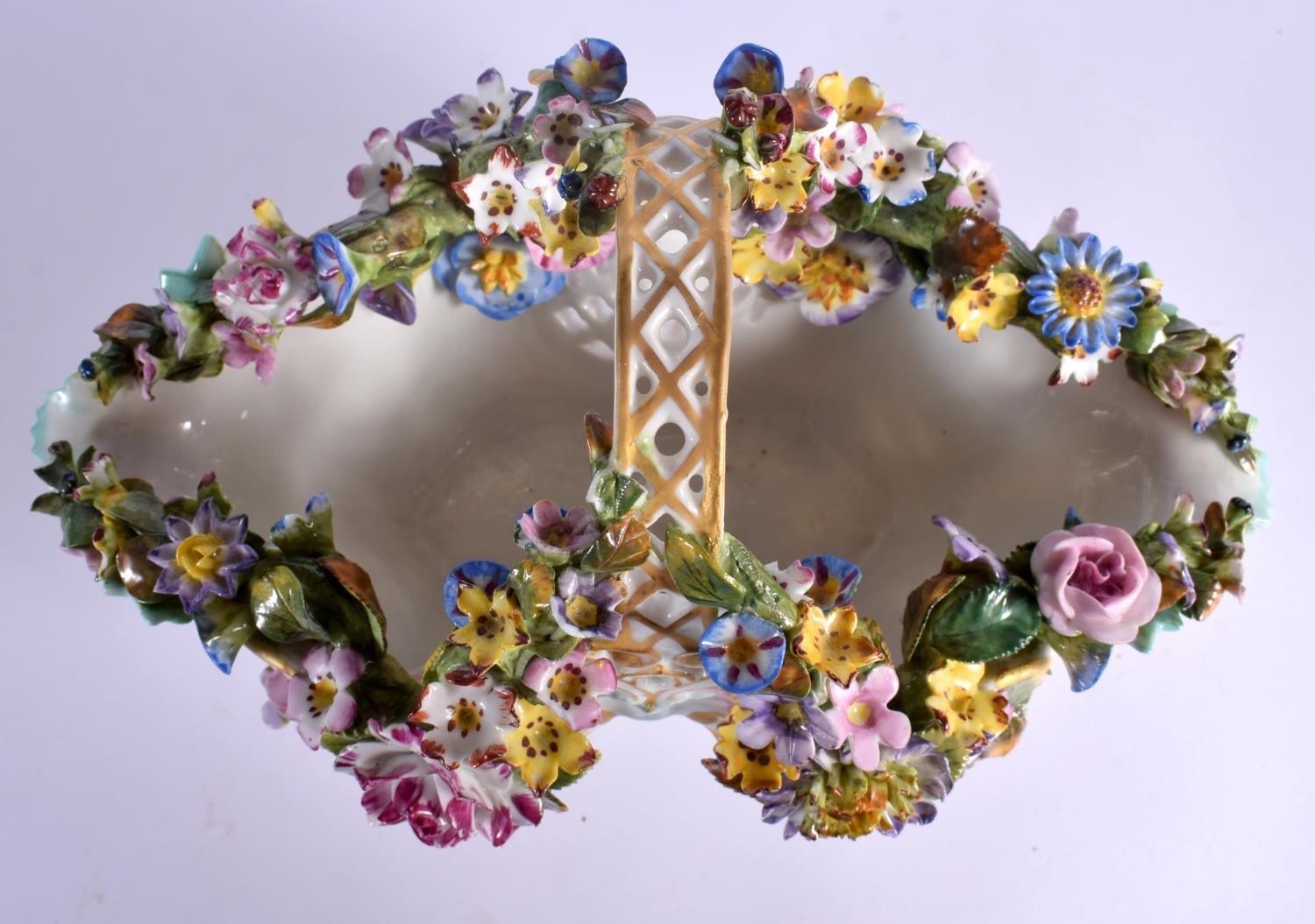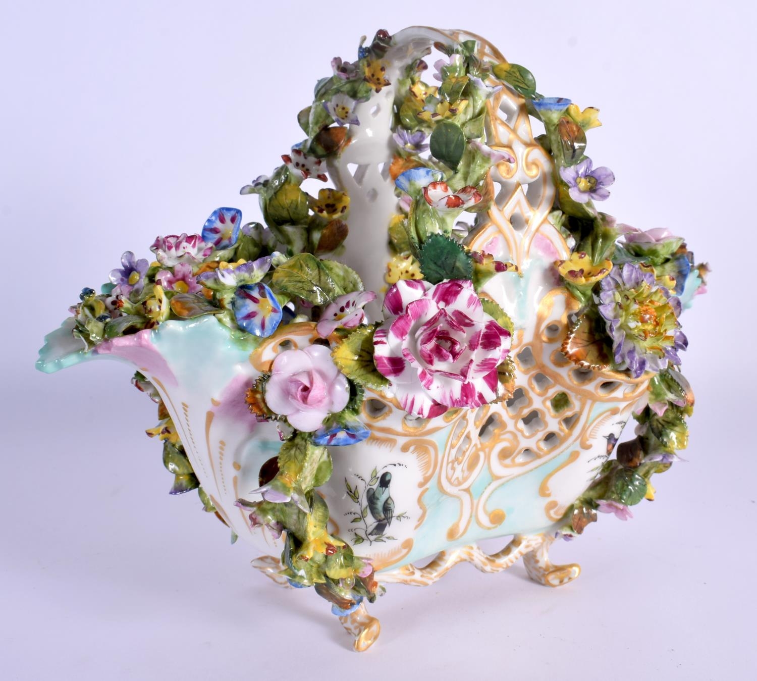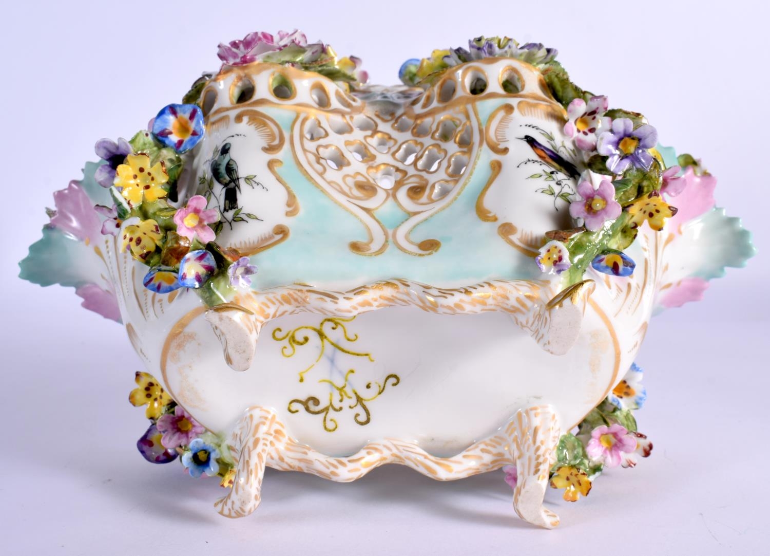 A MID 19TH CENTURY CONTINENTAL PORCELAIN BASKET encrusted all over with foliage painted with birds. 24 cm x 18 cm.