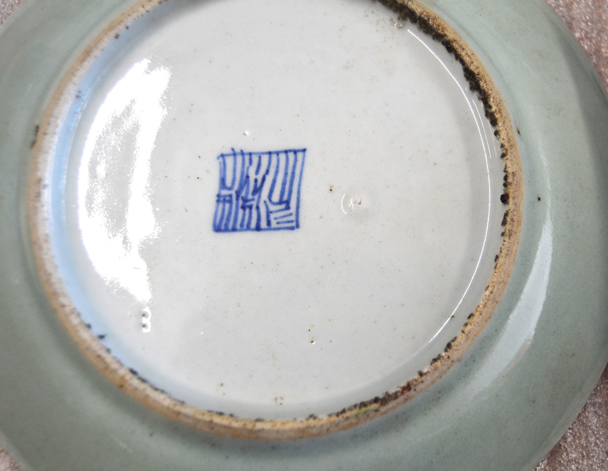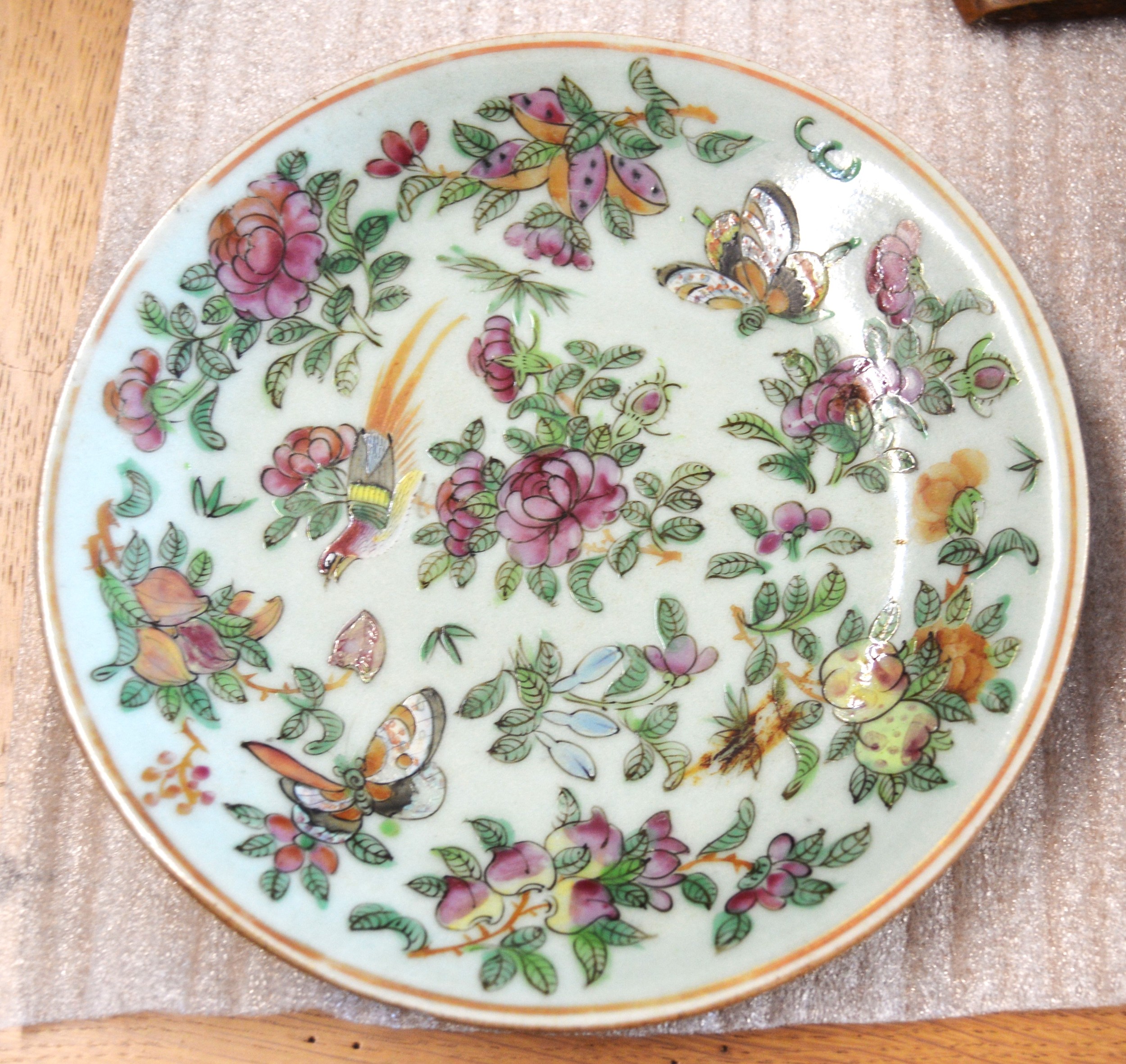 Chinese Celadon Famille Rose Plate approx. 7.5£ Diameter