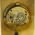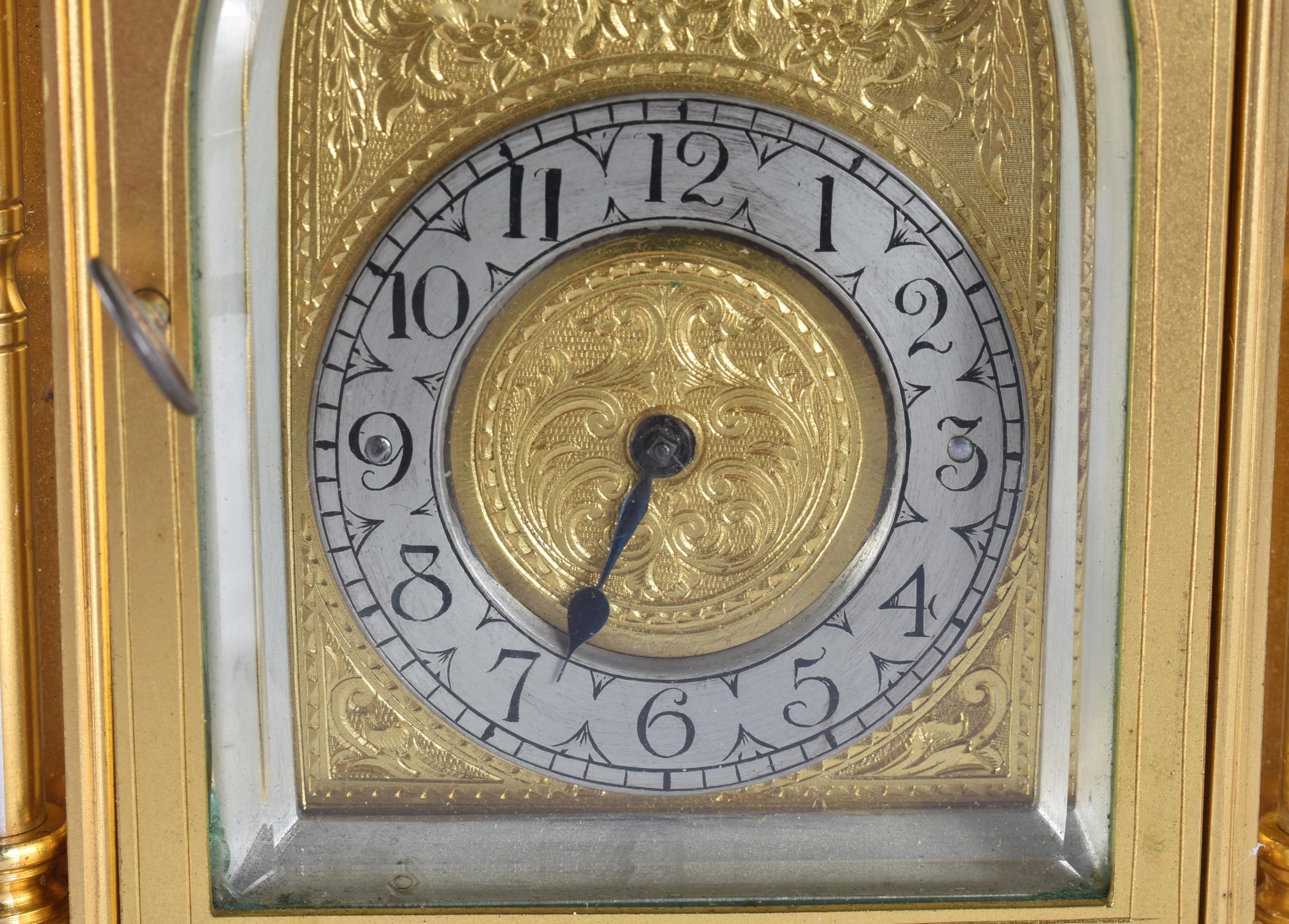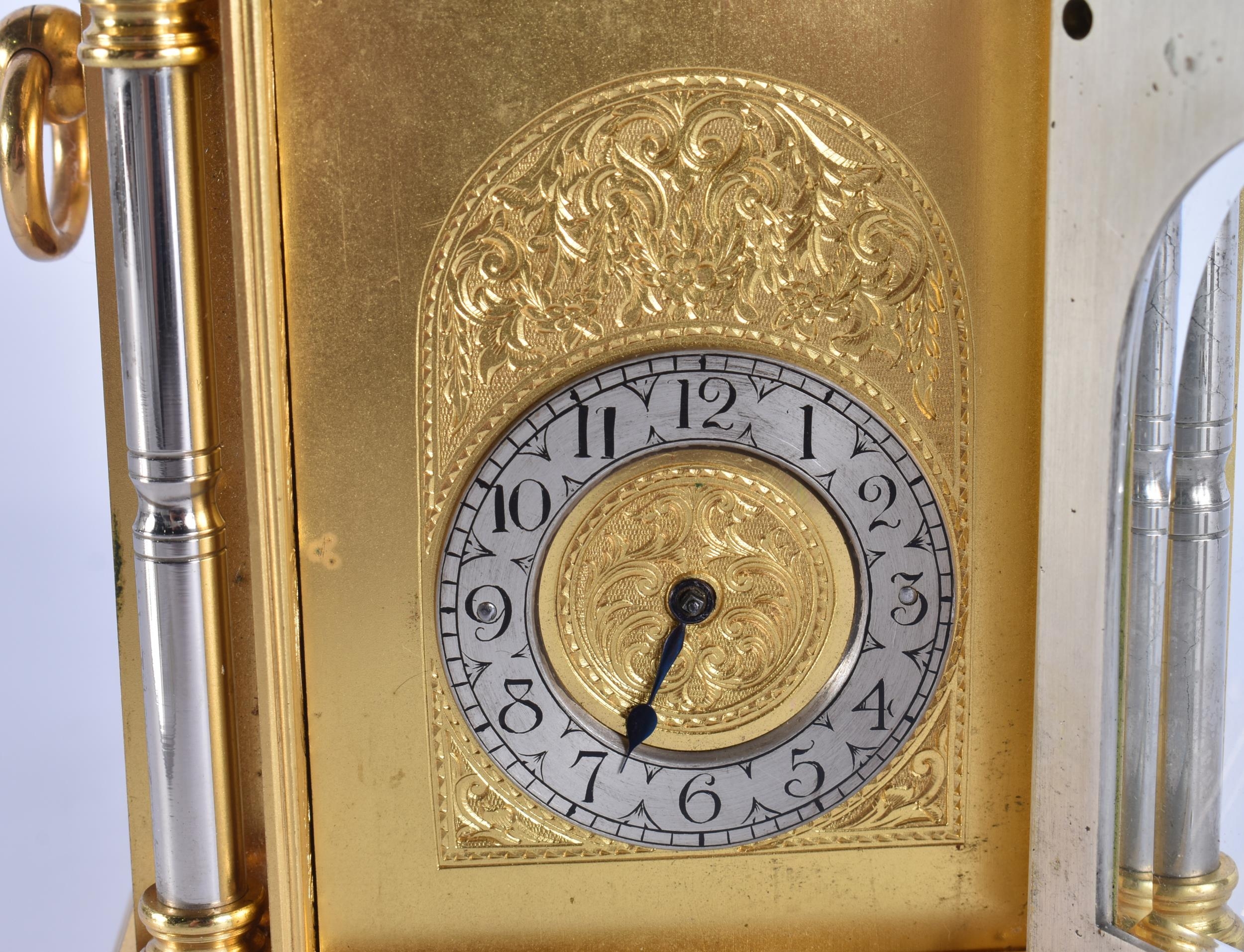 A FINE 19TH CENTURY ENGLISH GILT AND SILVERED BRONZE CLOCK with silvered dial and finely decorated foliage. 18 cm x 8 cm.