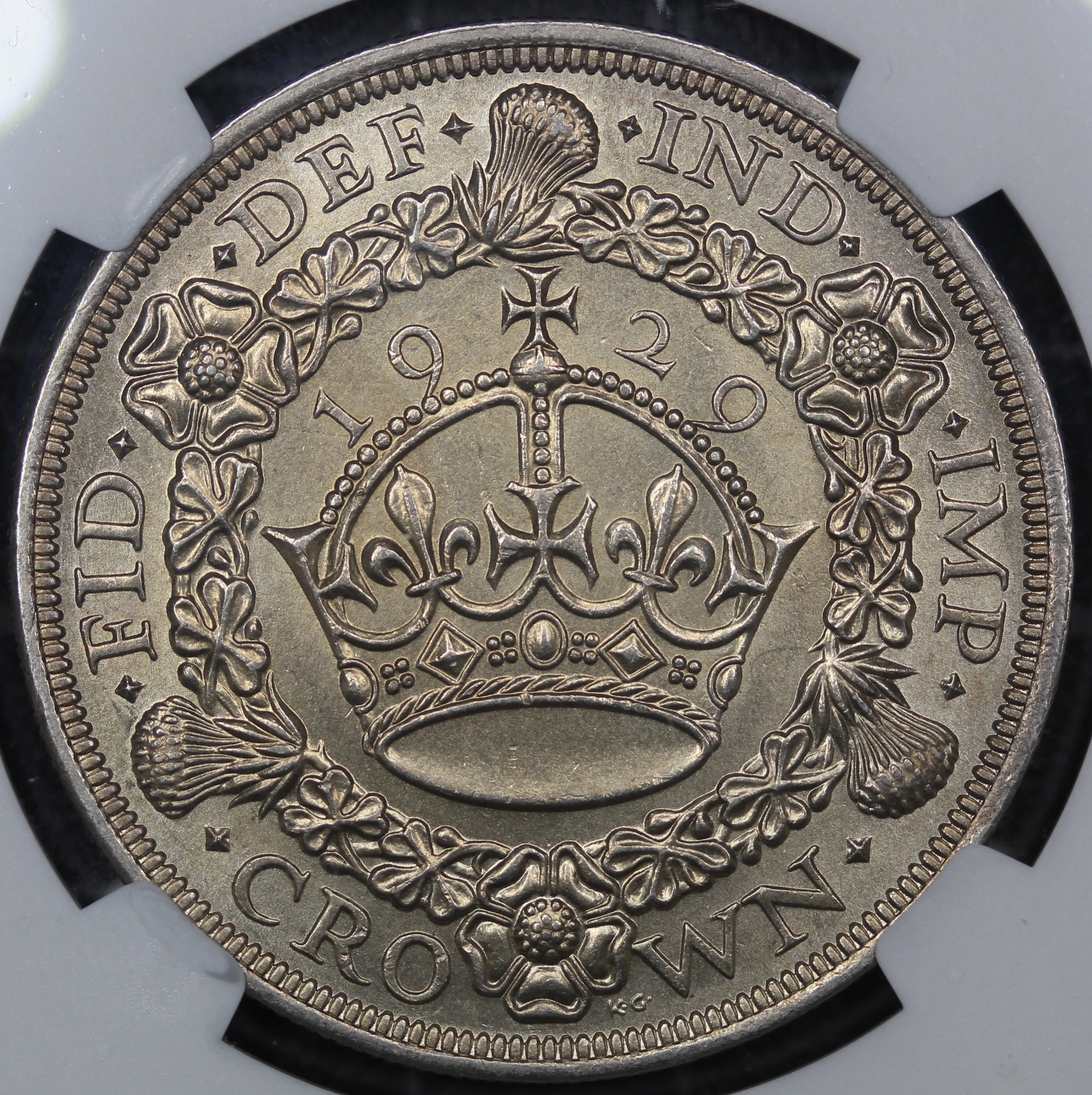 1929 Wreath Crown, George V (ESC 369, Bull 3636, S.4036). Graded NGS MS62, uncirculated, bright with soft lustre. Presented in a Coinery Collection holder. One of 4,994 coins struck.