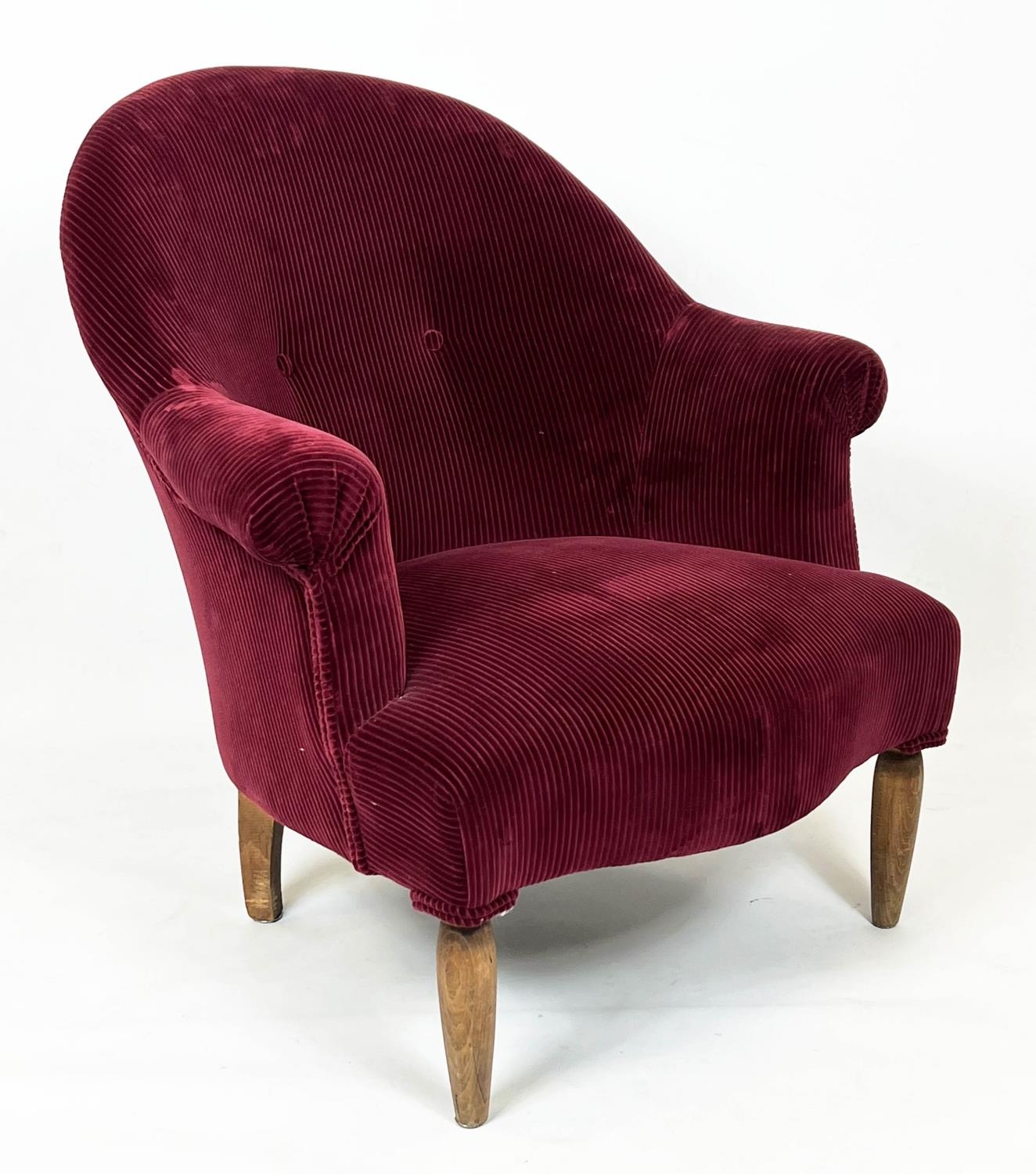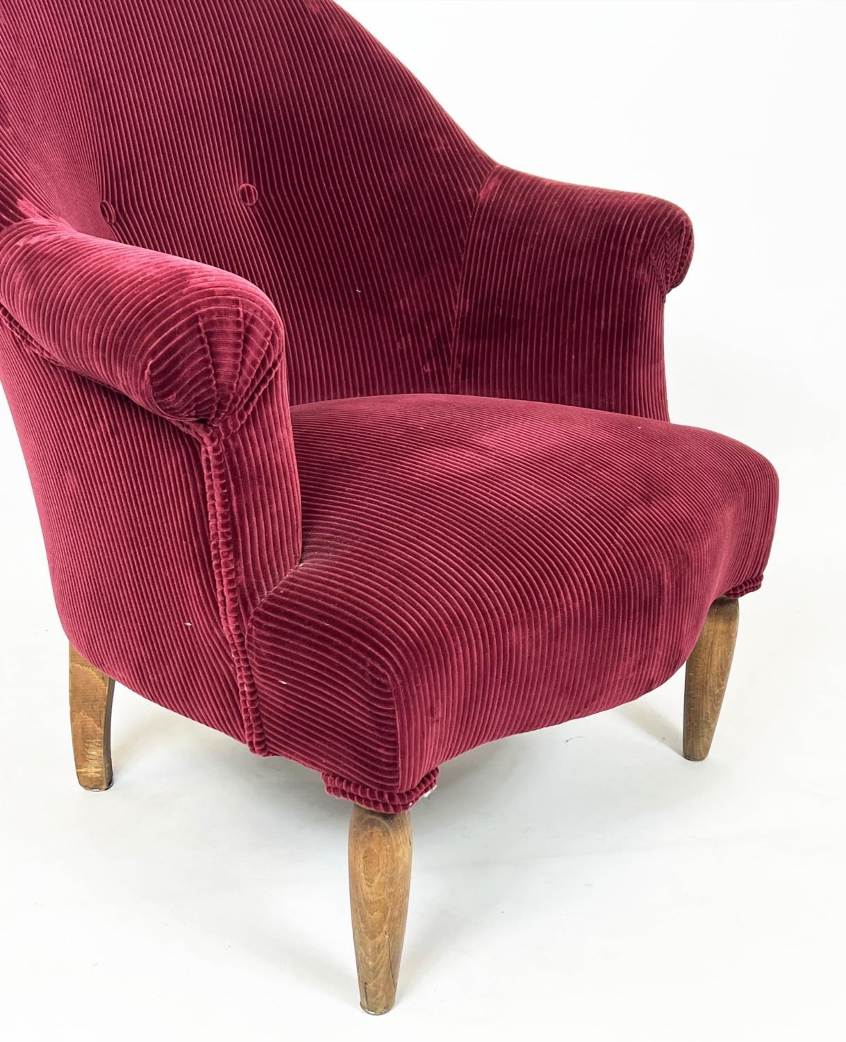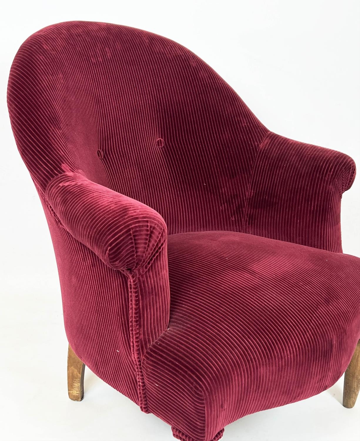 BERGERE, 83cm H x 77cm W, mid 20th century Beechwood in Pierre Frey red corduroy.