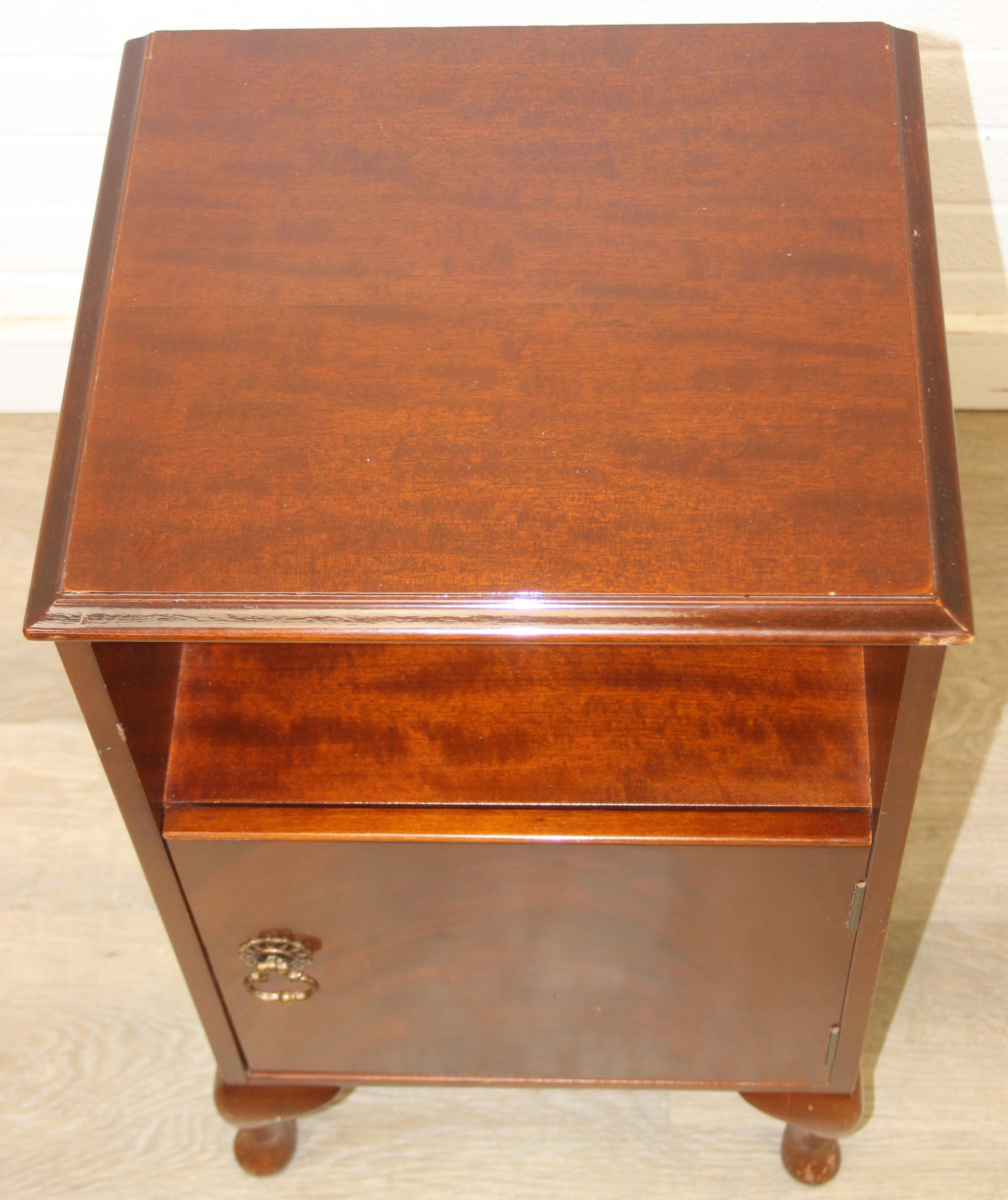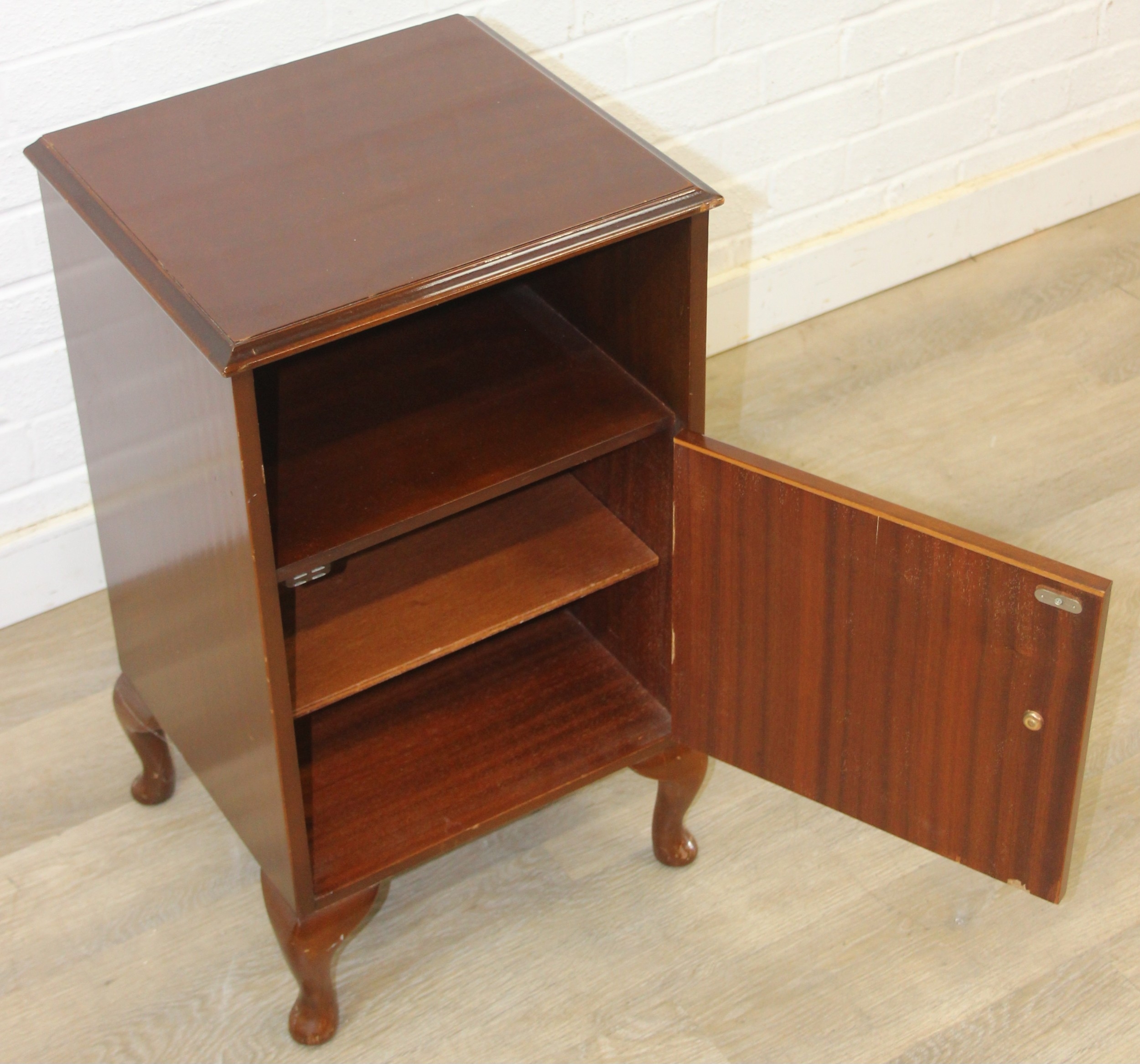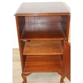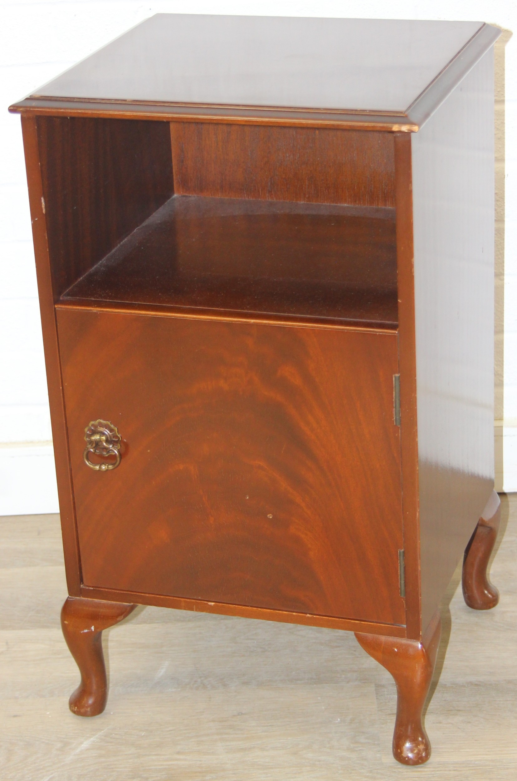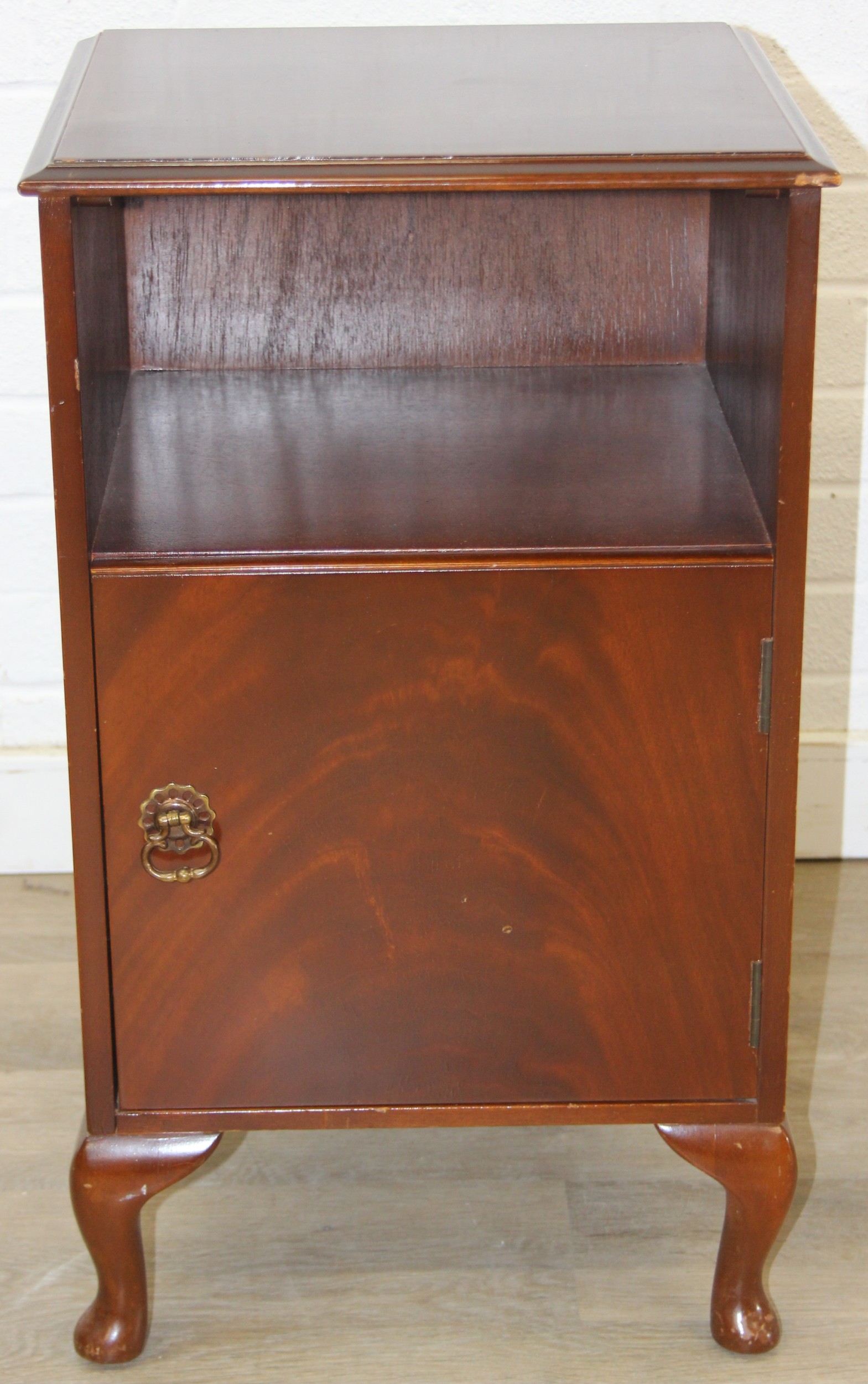 A vintage mahogany bedside cabinet with single cupboard and open section, 40cm x 36cm x 70cm