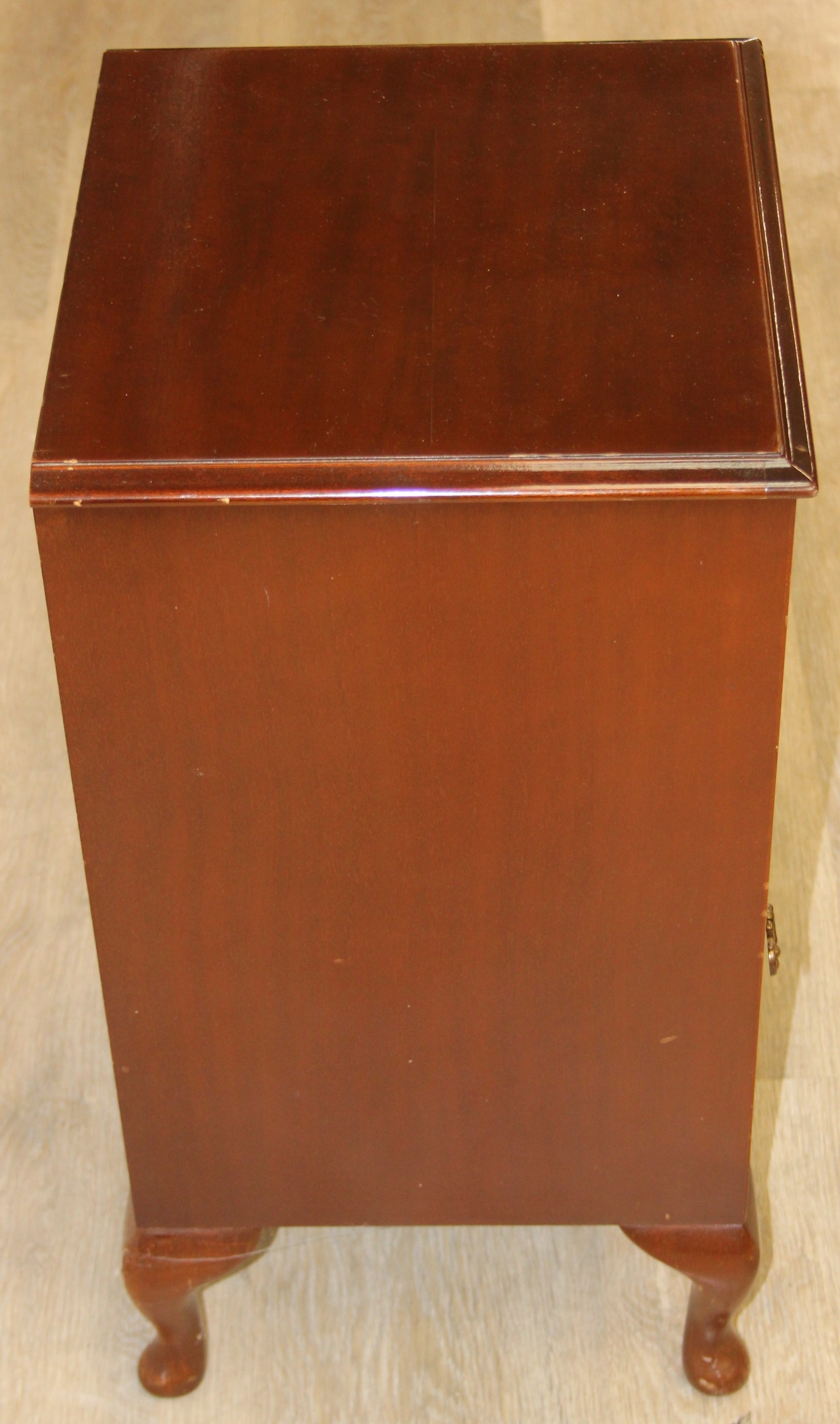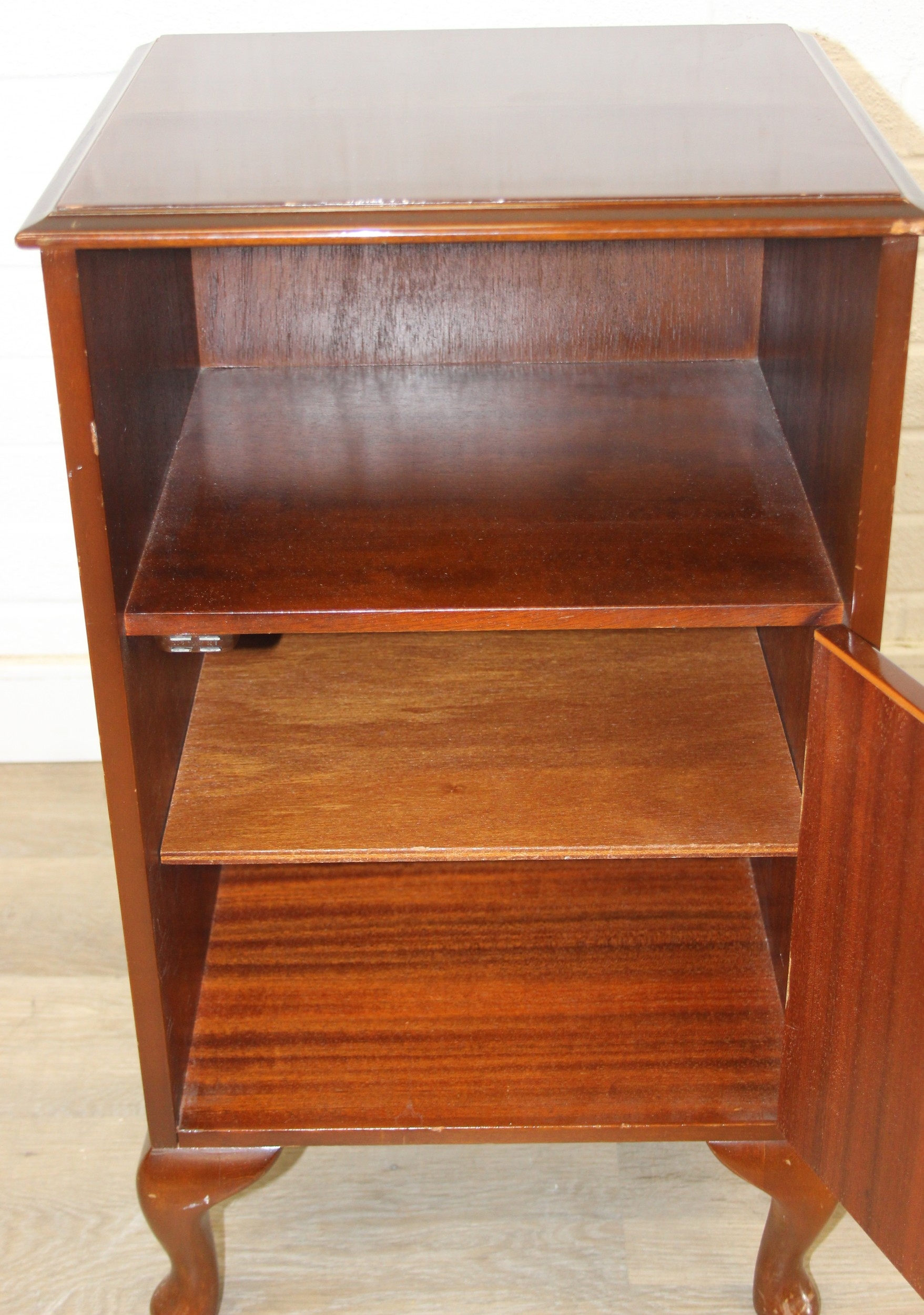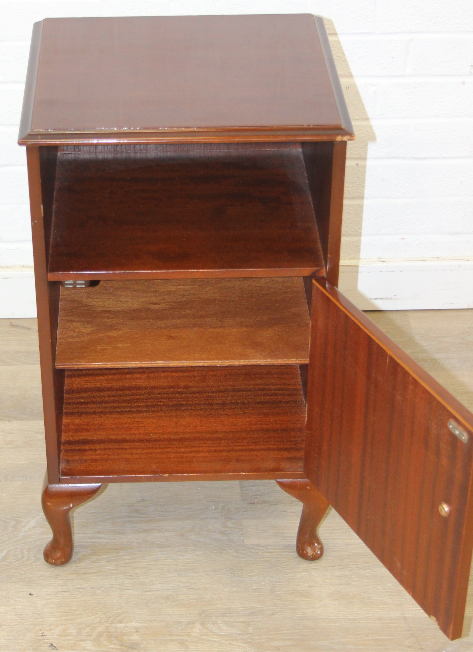 A vintage mahogany bedside cabinet with single cupboard and open section, 40cm x 36cm x 70cm