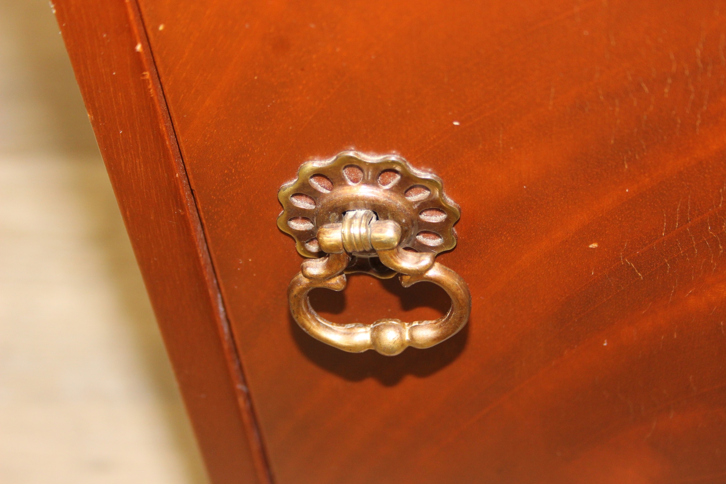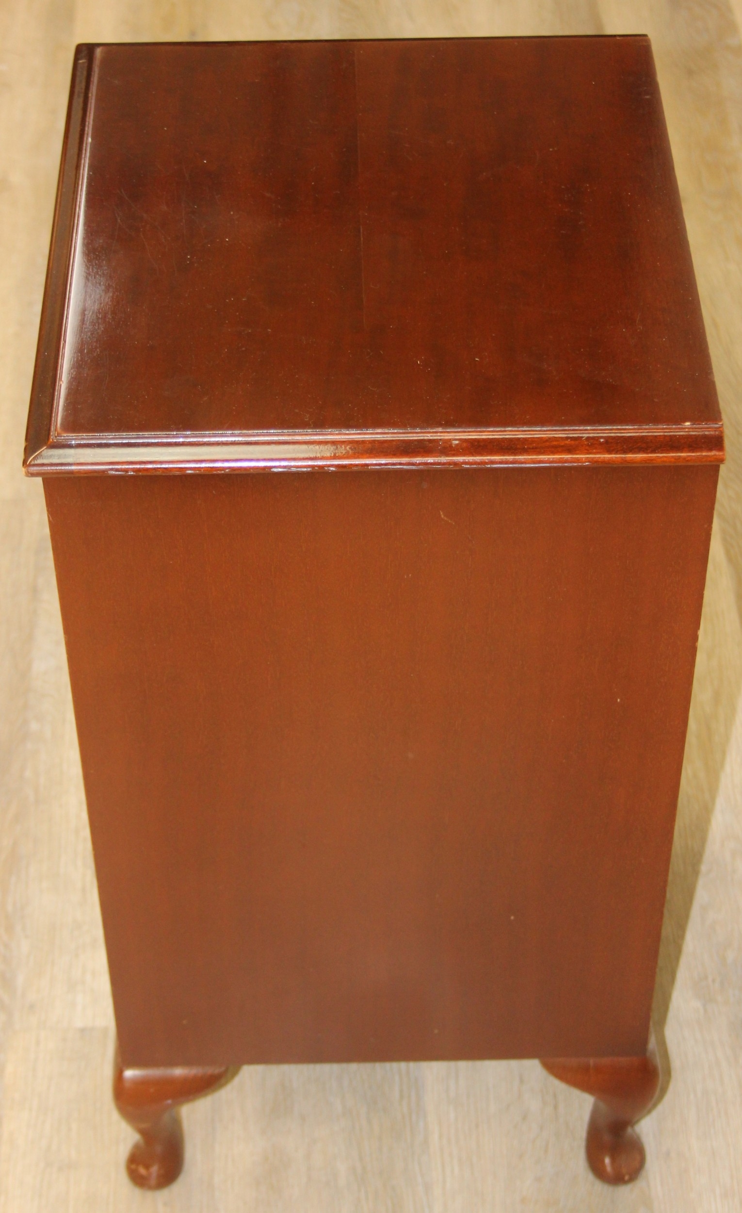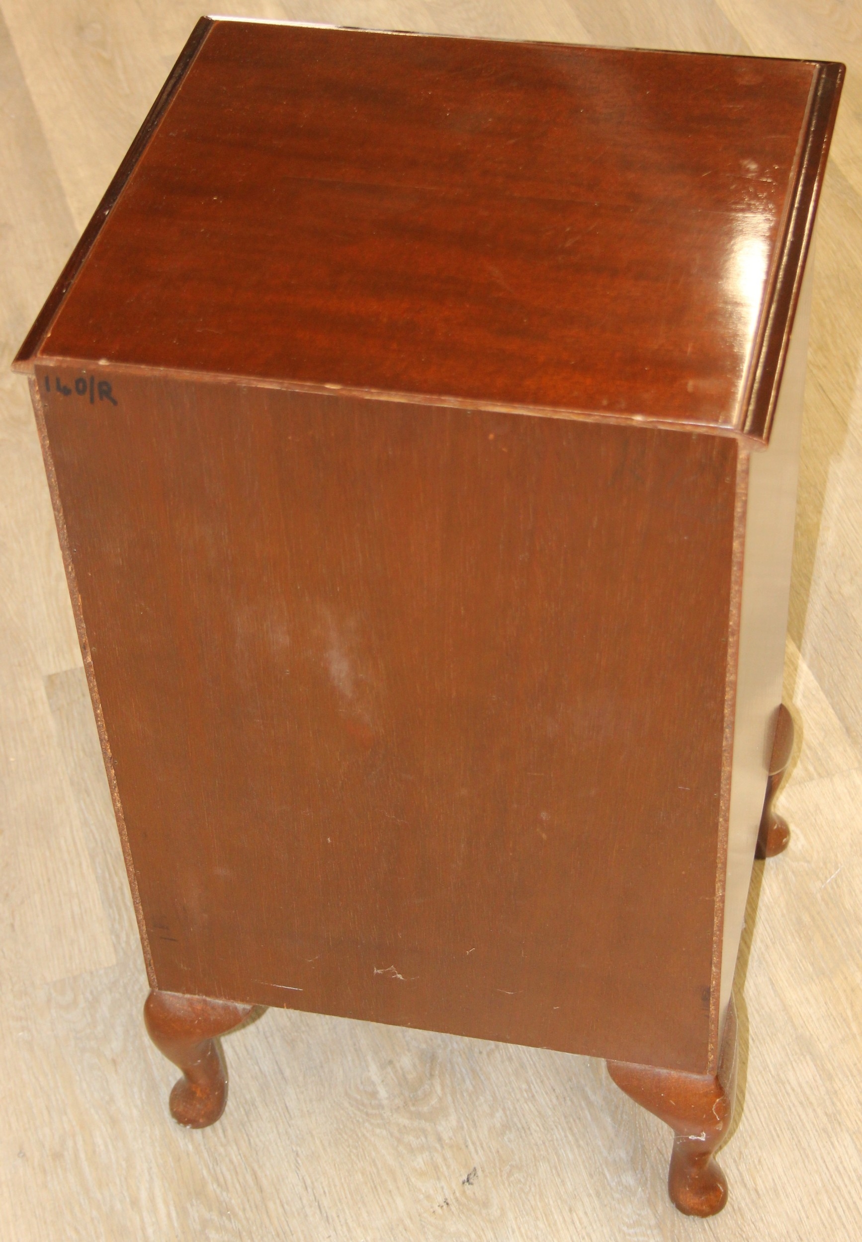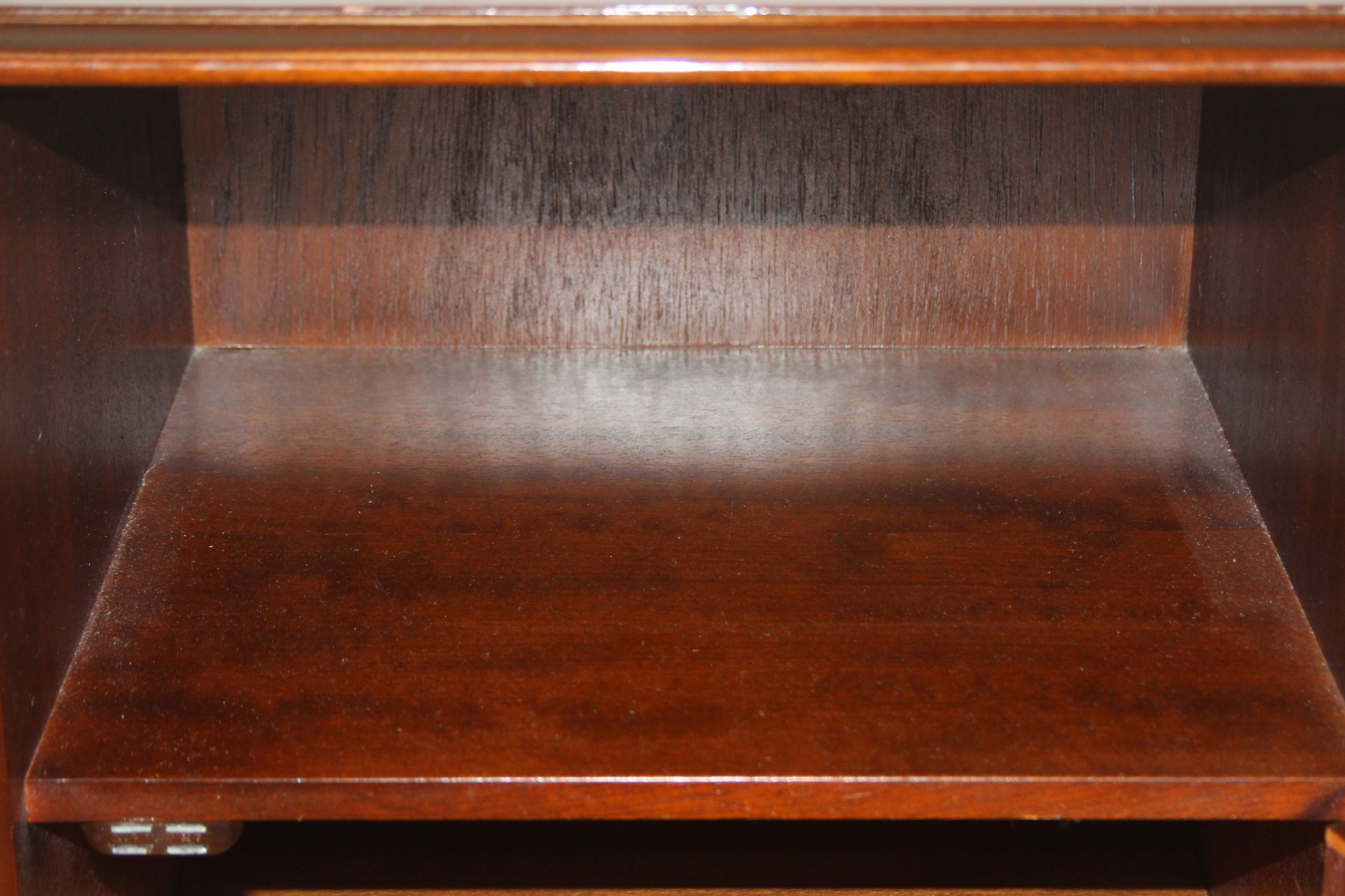 A vintage mahogany bedside cabinet with single cupboard and open section, 40cm x 36cm x 70cm