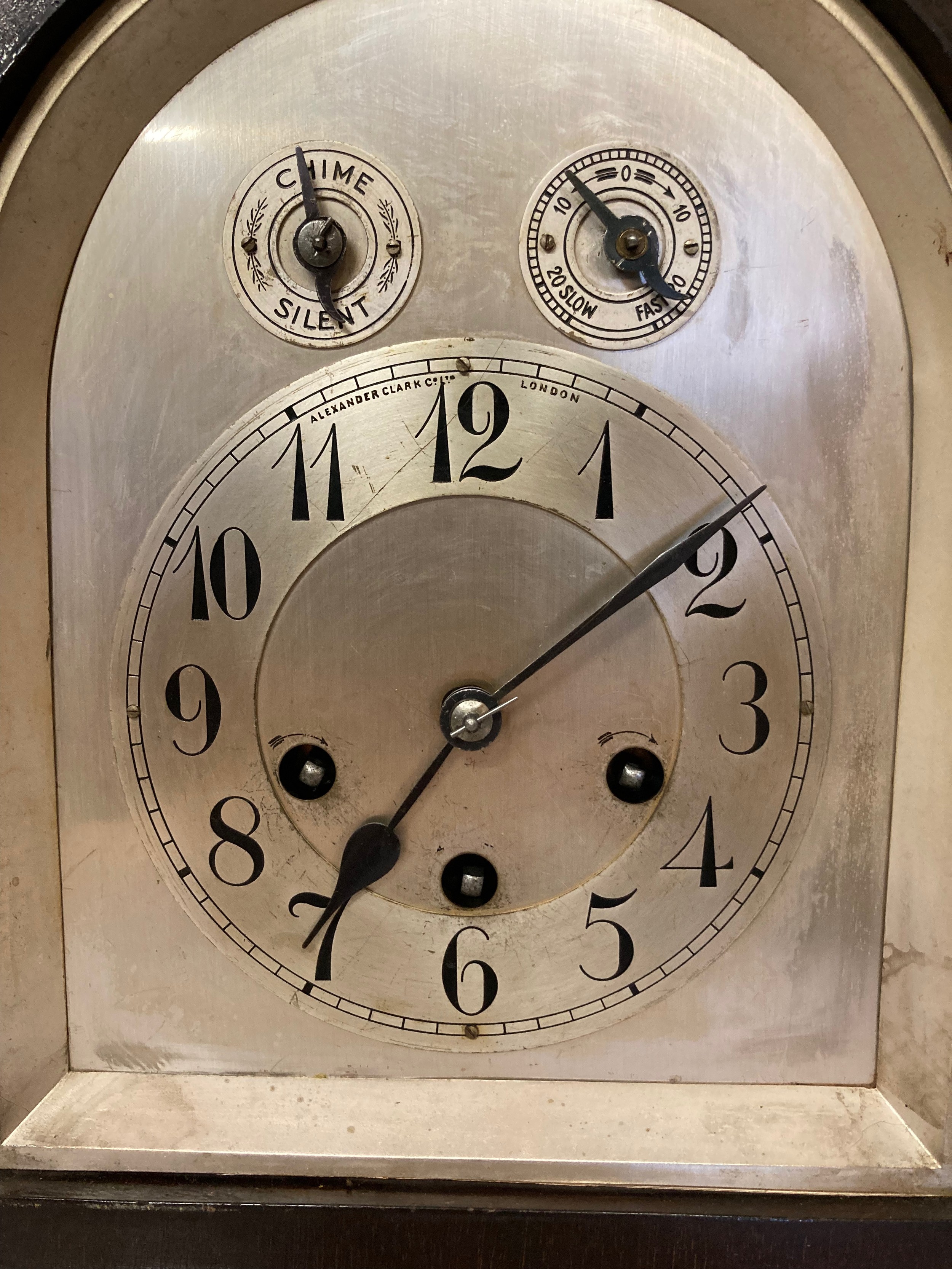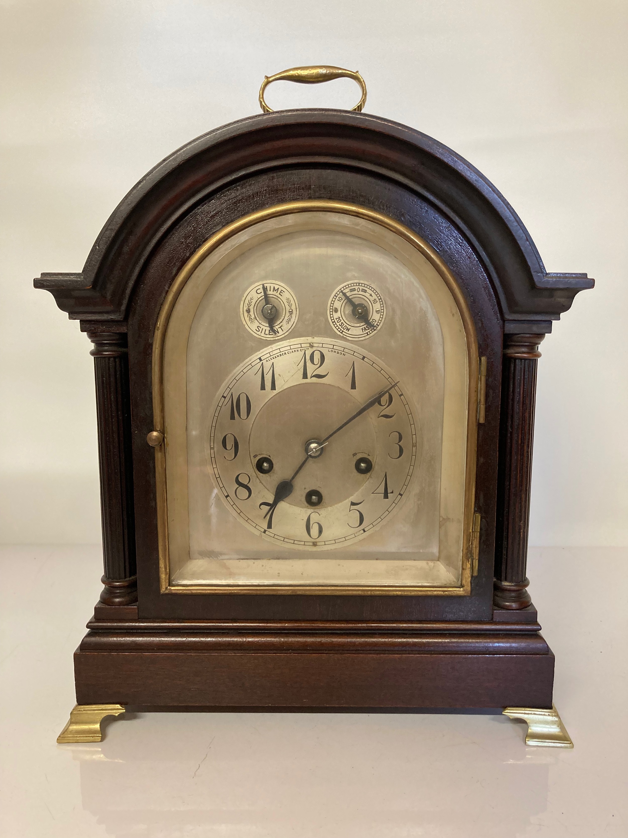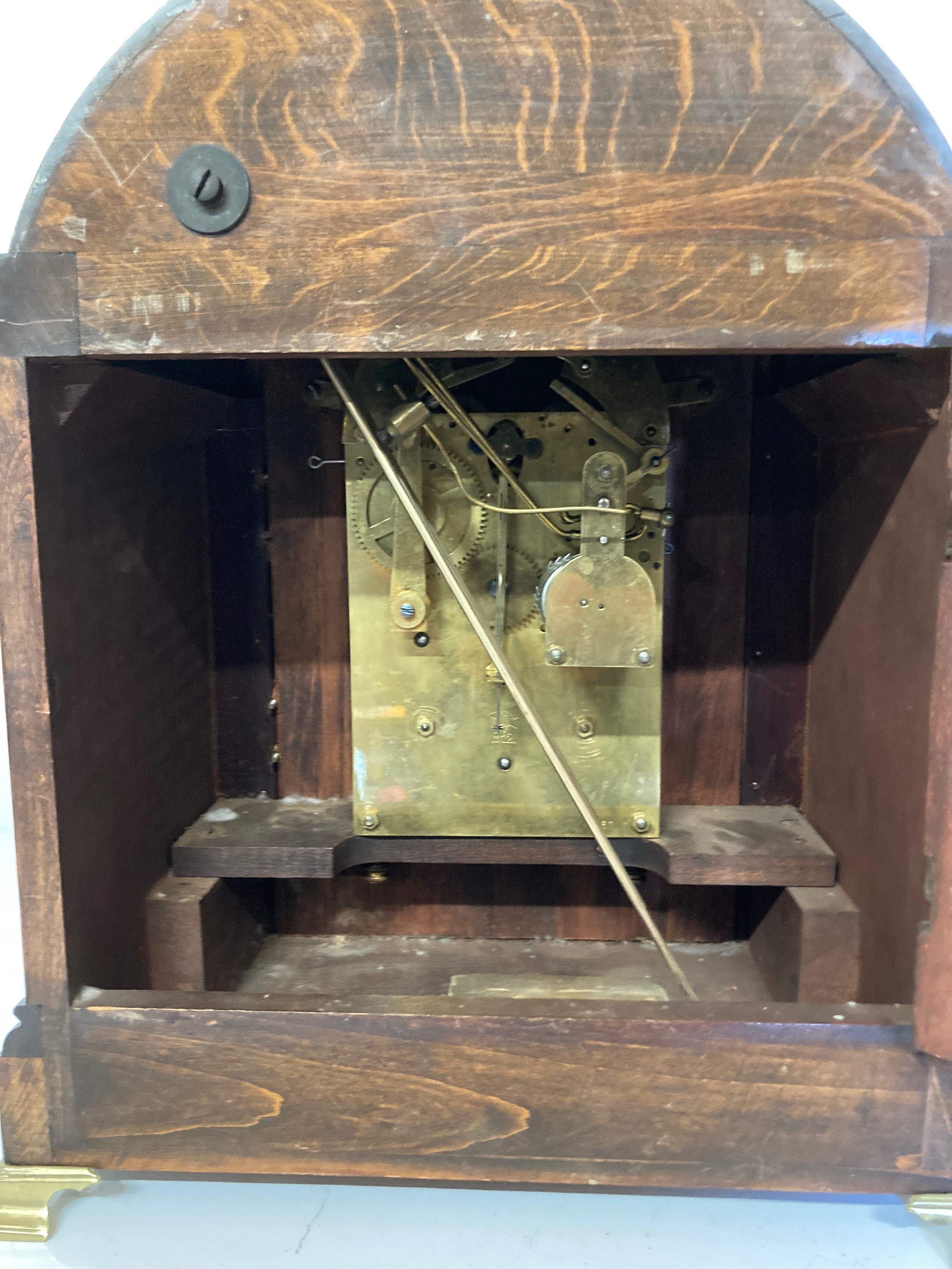 Mahogany cased mantle clock with Jurghans movement 15 inches high