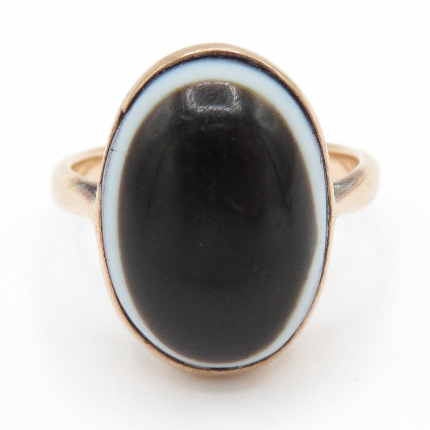 Antique 9ct Gold Bulleye Agate Ring (4.1g) Size I