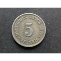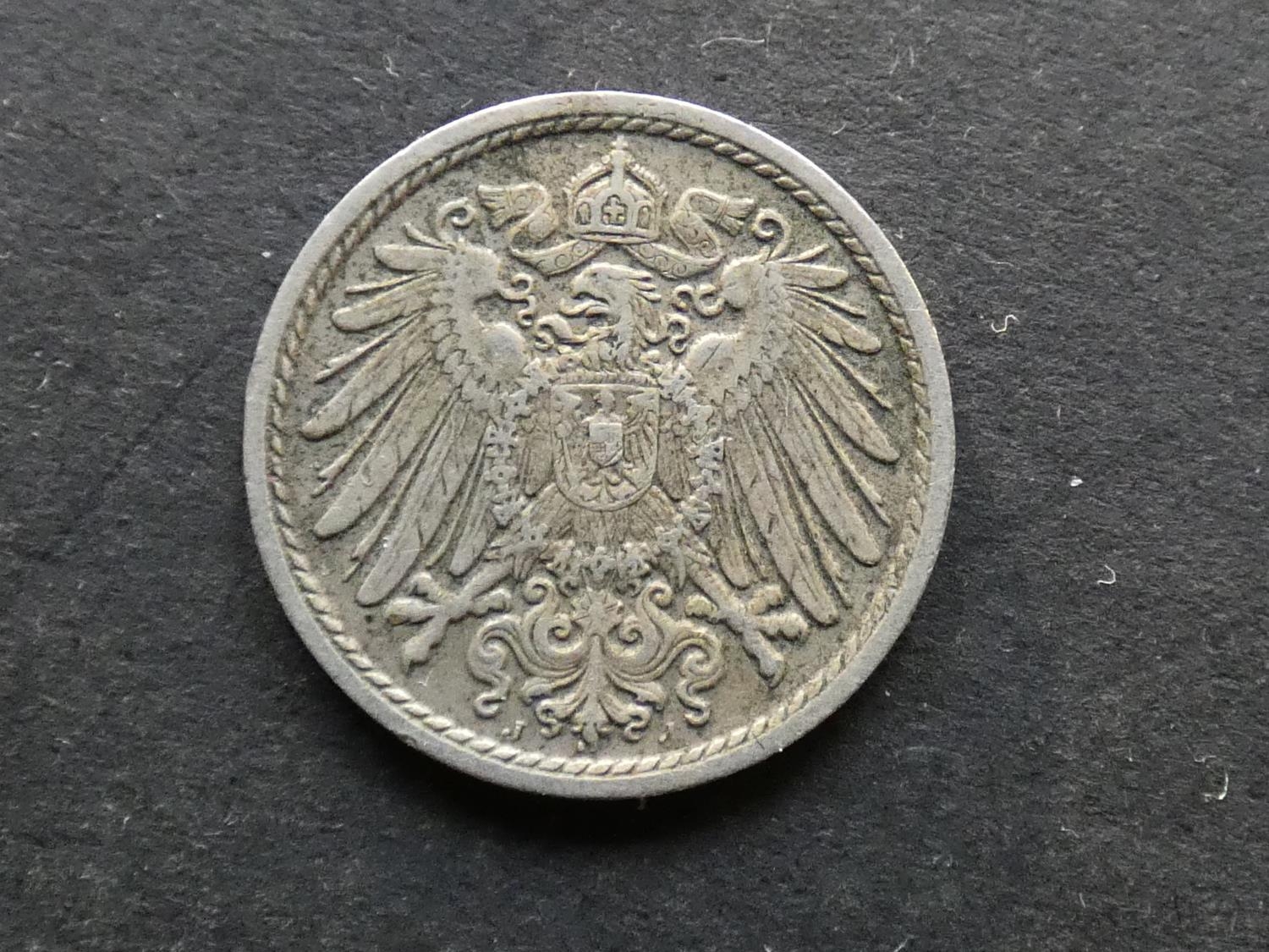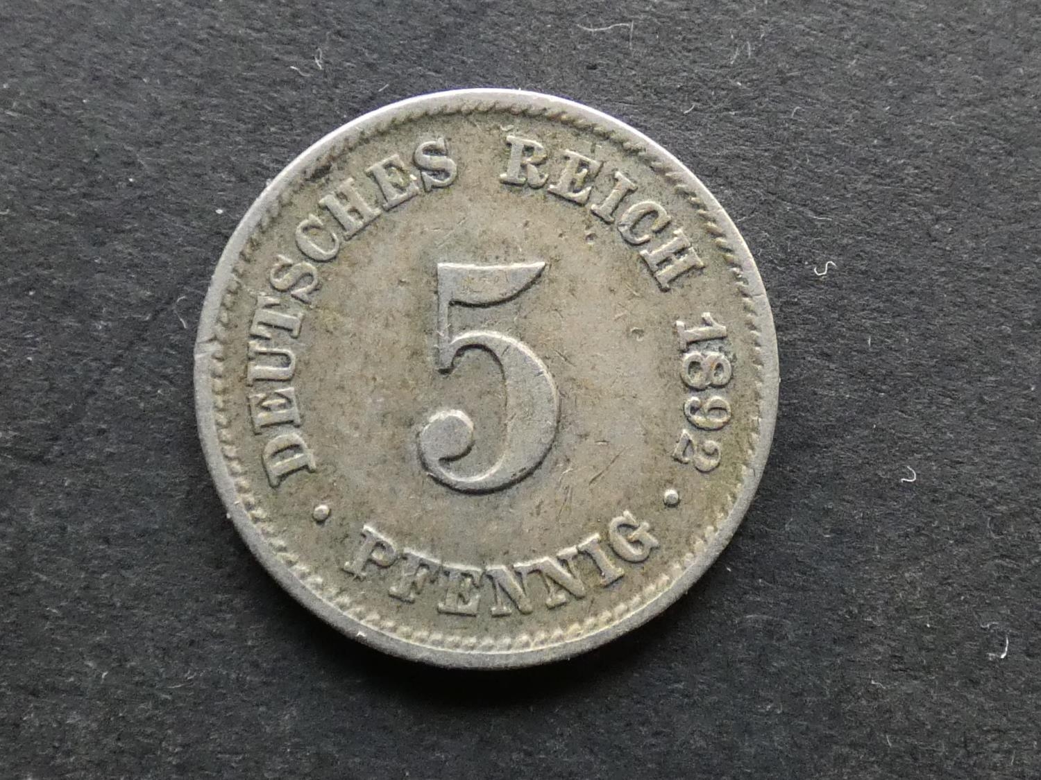 GERMANY. Empire (1871-1918). 5 Pfennig, 1892J, Hamburg mint, KM11, GF