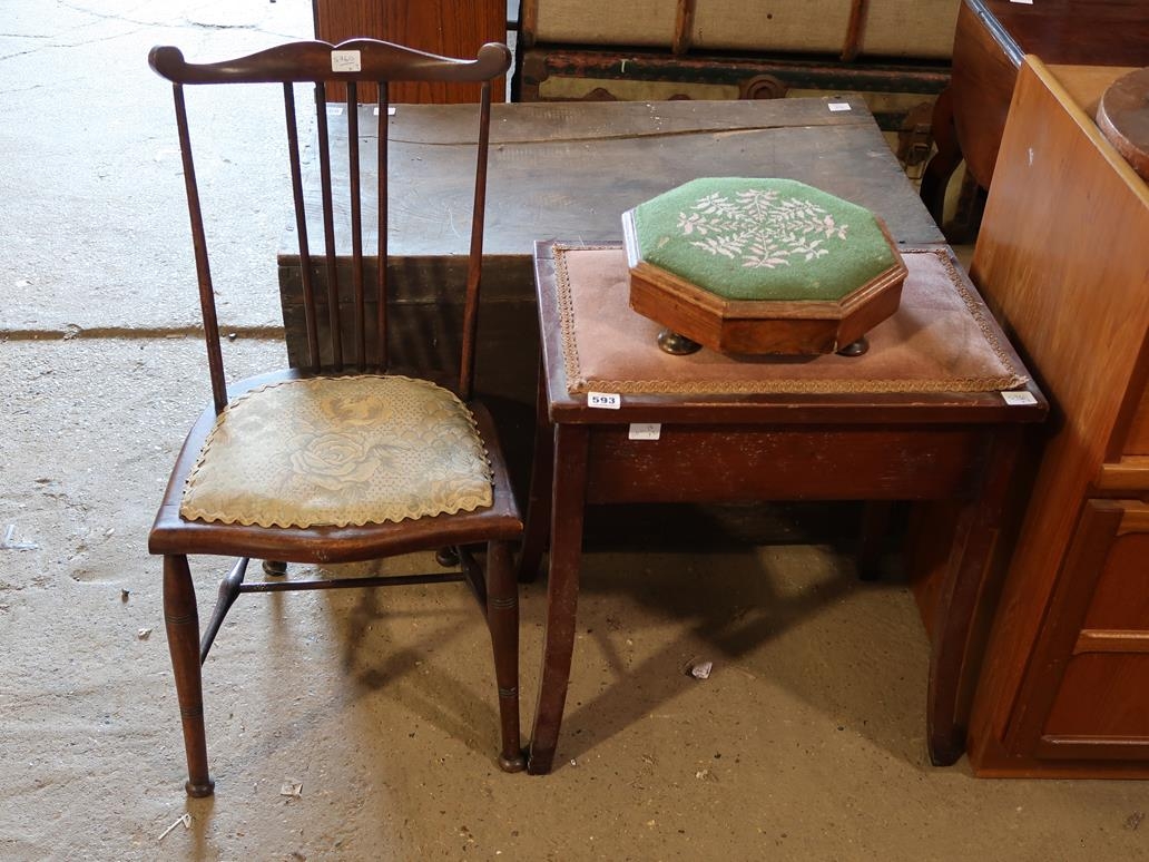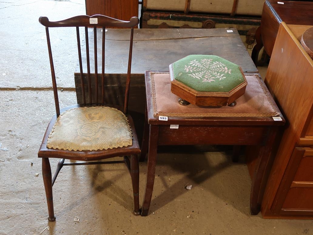 PIANO STOOL, VICTORIAN STOOL AND SPINDLEBACK CHAIR