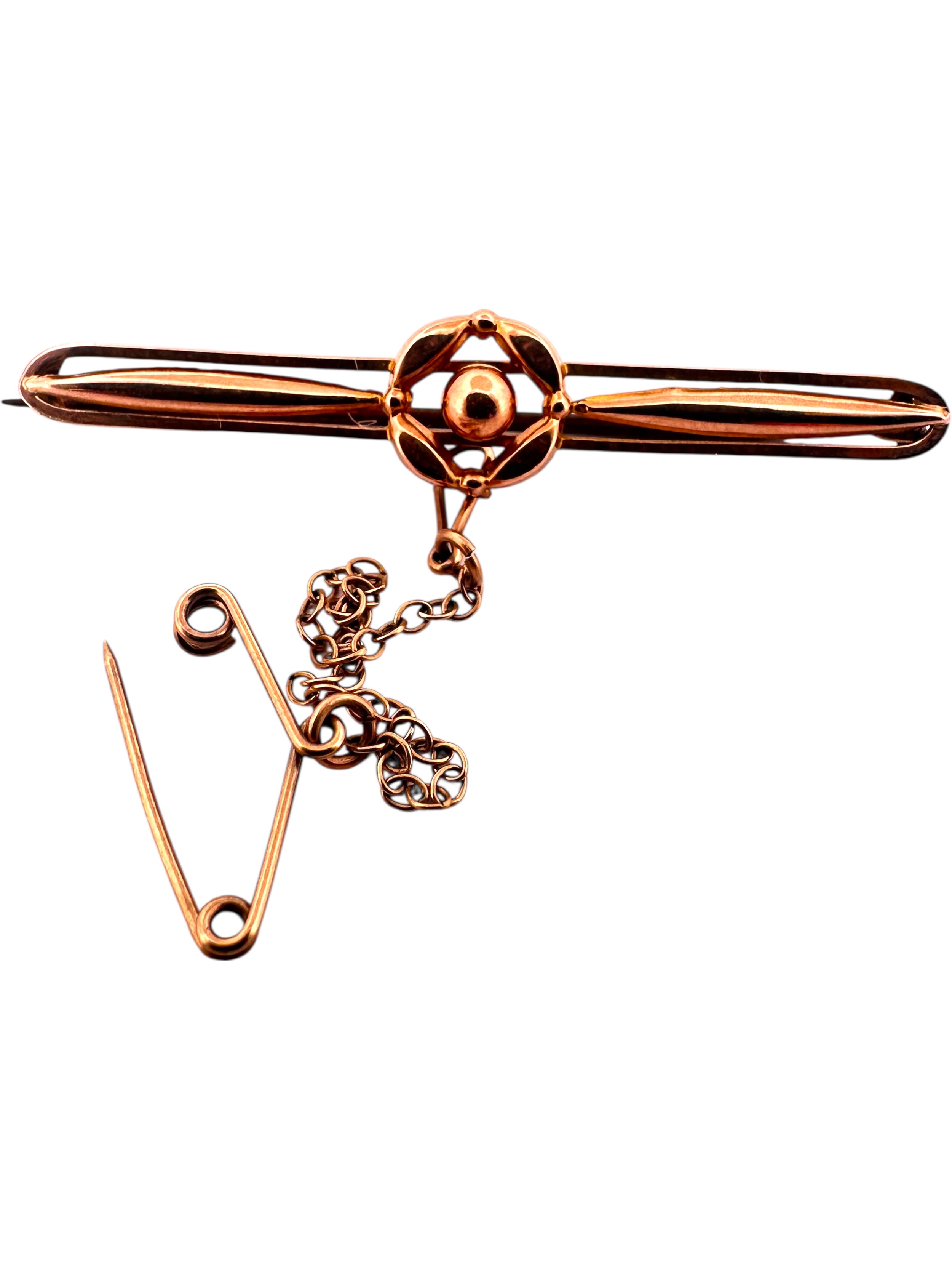 Nine Carat Gold Art Nouveau Brooch. 2.14g metal pin