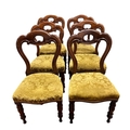 A SET OF SIX VICTORIAN MAHOGANY DINING CHAIRS each with a shaped pierced top rail with scroll decoration above upholstered seats on baluster legs