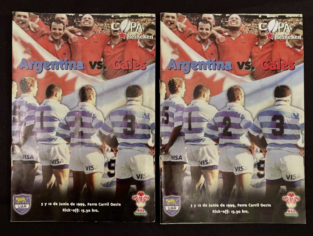 1999 Argentina v Wales Autographed Rugby Programmes (2): Both Test matches from this tour, signed by many players, past players and guests. VG