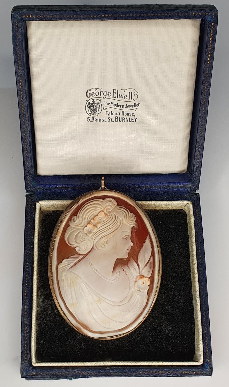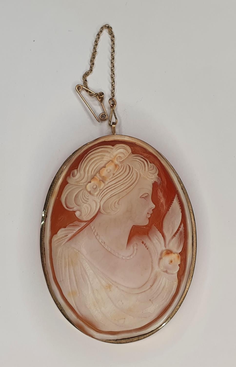 Large oval Edwardian cameo brooch in gold setting,