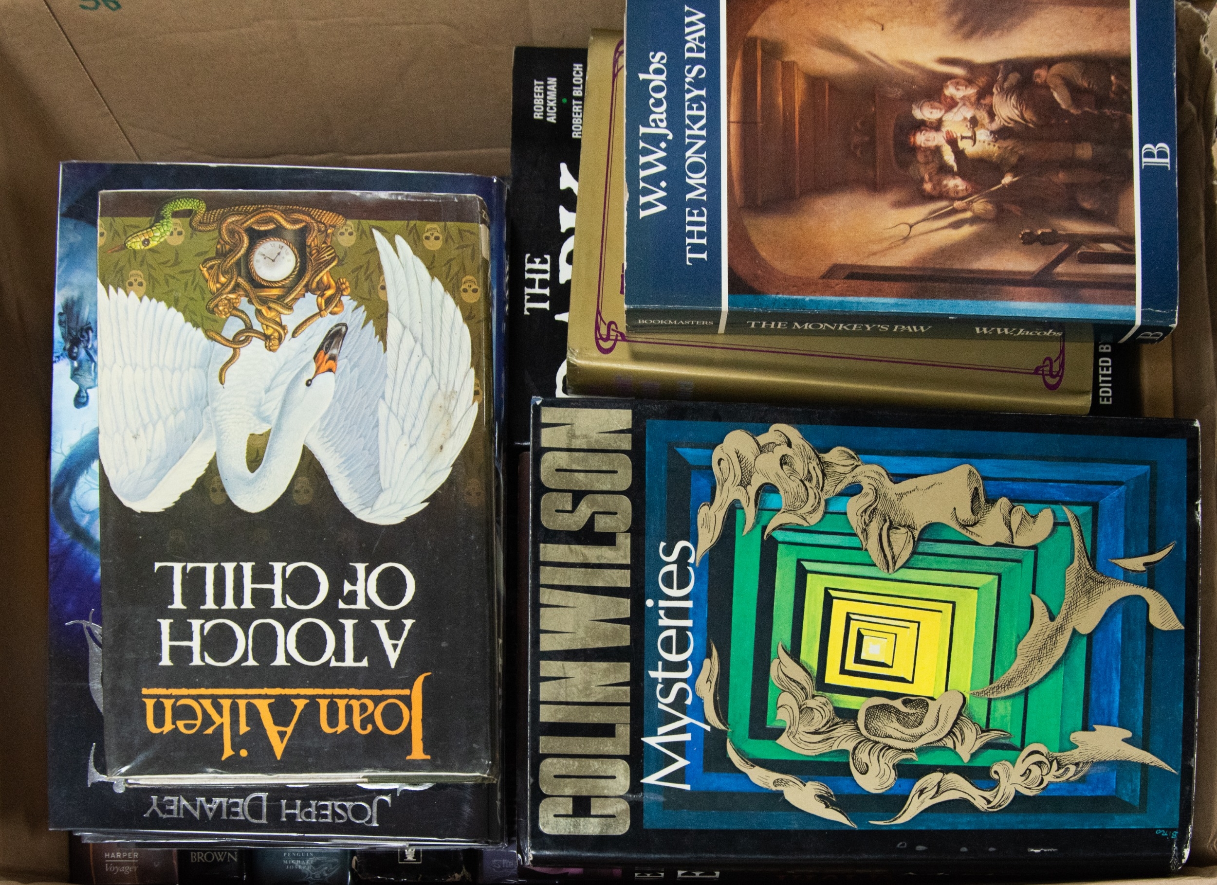 George Lanning - The Pedestal, pub Michael Joseph, 1967, 1st ed, dj. David G Hartwell - The Darek Descent 1 The Colour of Evil, pub Grafton, 1990. Together with a further group of mainly SUPERNATURAL & HORROR FICTION, various authors to include ANNE RICE, JOAN AIKEN, COLIN WILSON, JOSEPH DELANEY, T M WRIGHT amongst others. Contents of a box