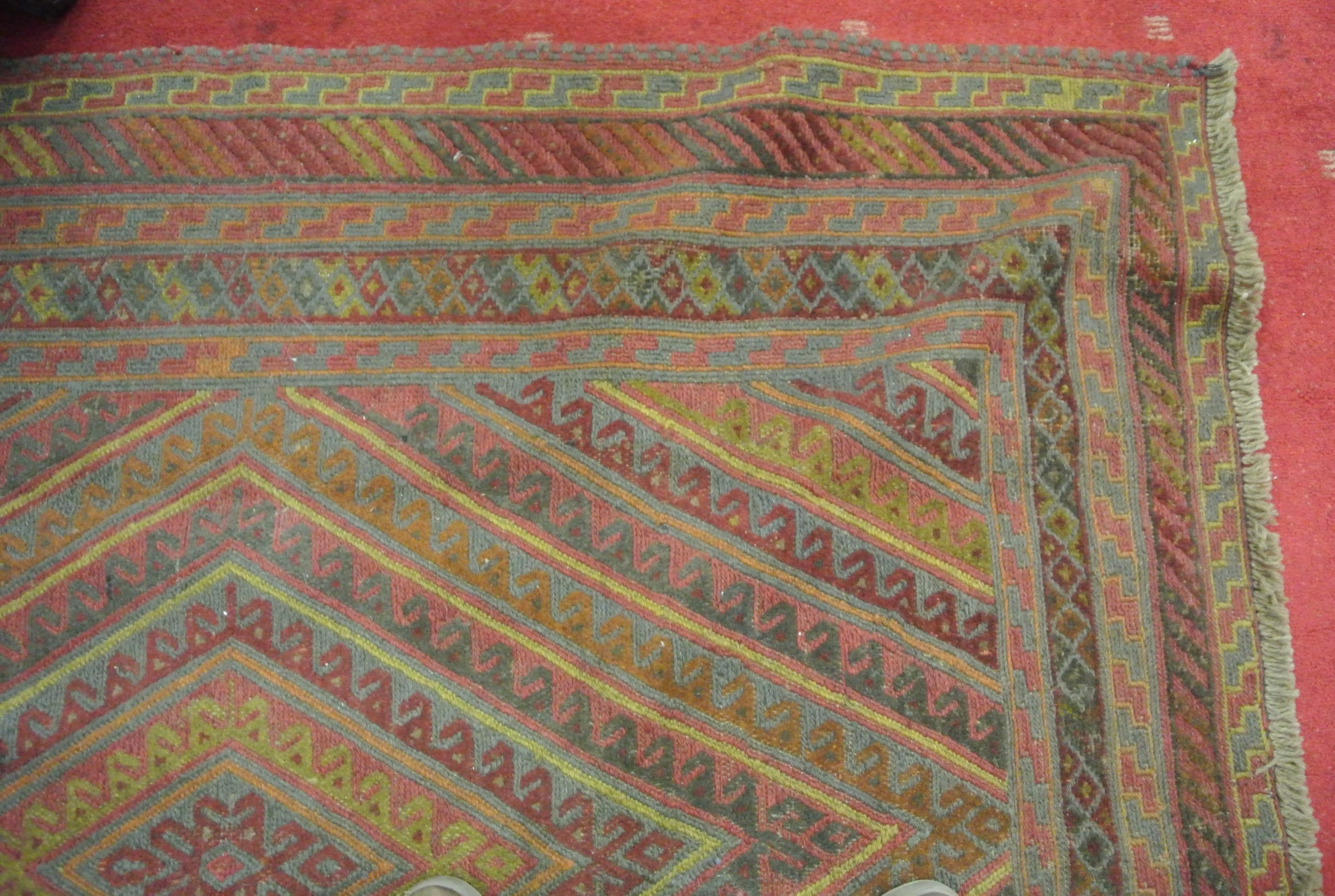 Hand woven wool pile Afghan Mashwani kilim with embossed pattern