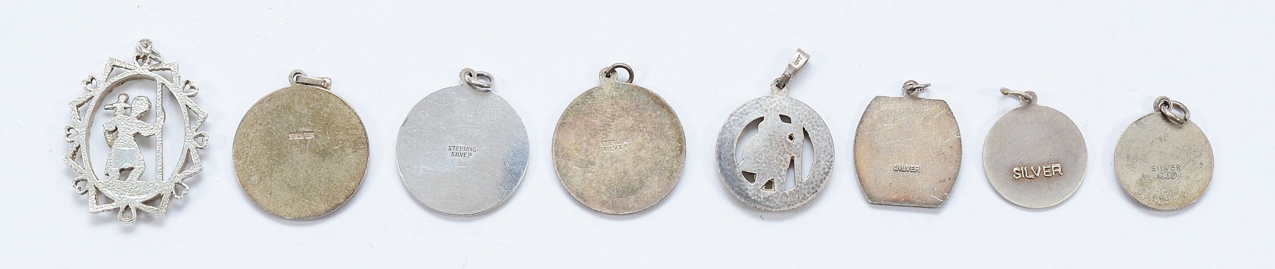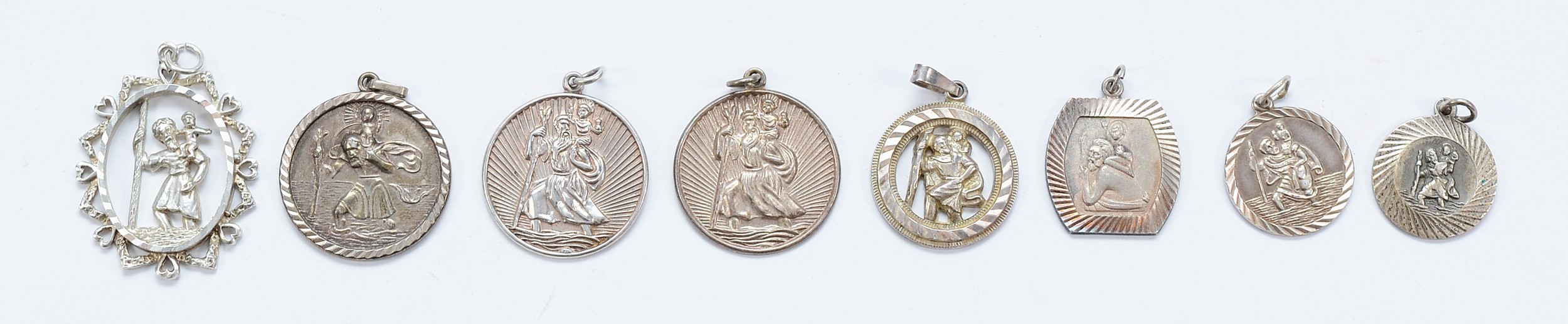 Georg Jensen, a silver St Christopher pendant, with seven silver St Christopher pendants, 38g