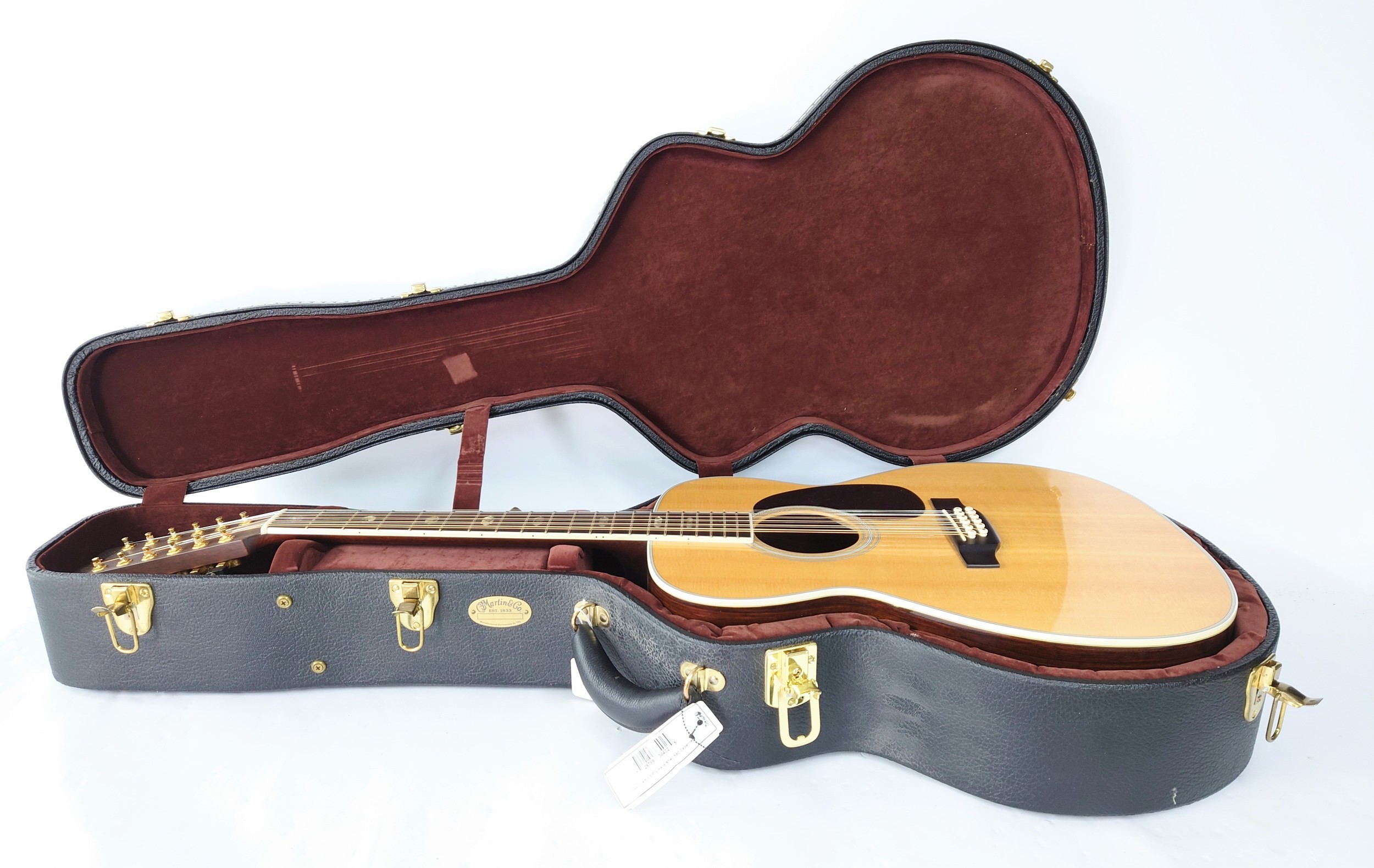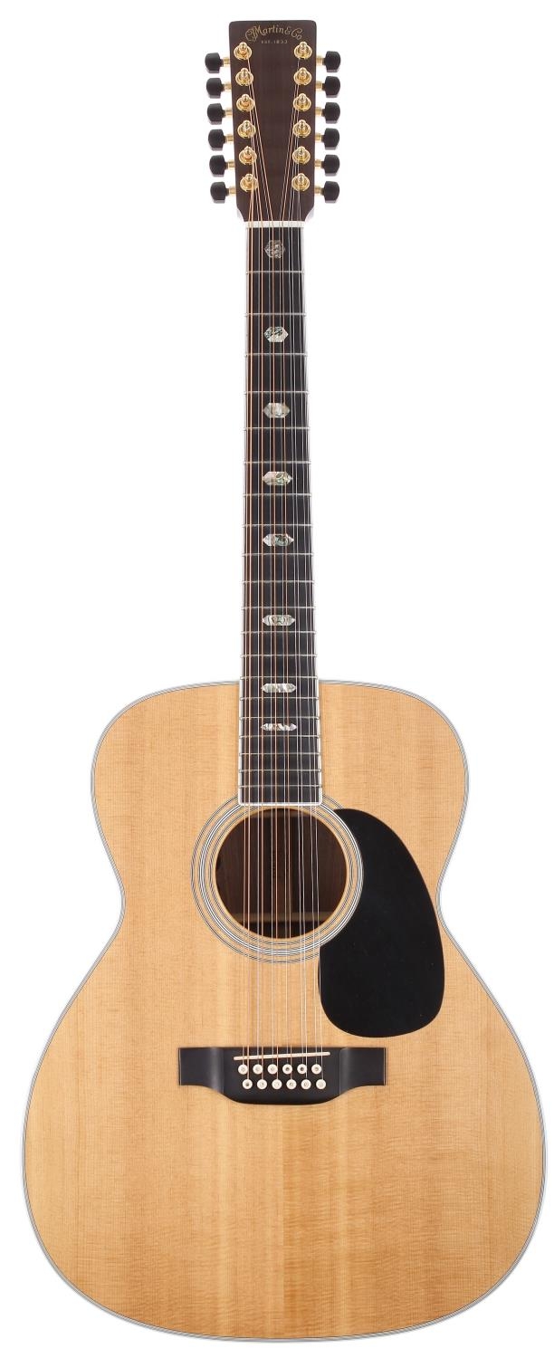 1993 C.F Martin J12-40 twelve string acoustic guitar, made in USA; Back and sides: Indian rosewood, a few light surface dings to back; Top: natural spruce; Neck: mahogany; Fretboard: ebony with hexagon abalone position markers; Frets: good; Electrics: working, later fitted Fishman pickup system; Case: original hard case; Overall condition: very good