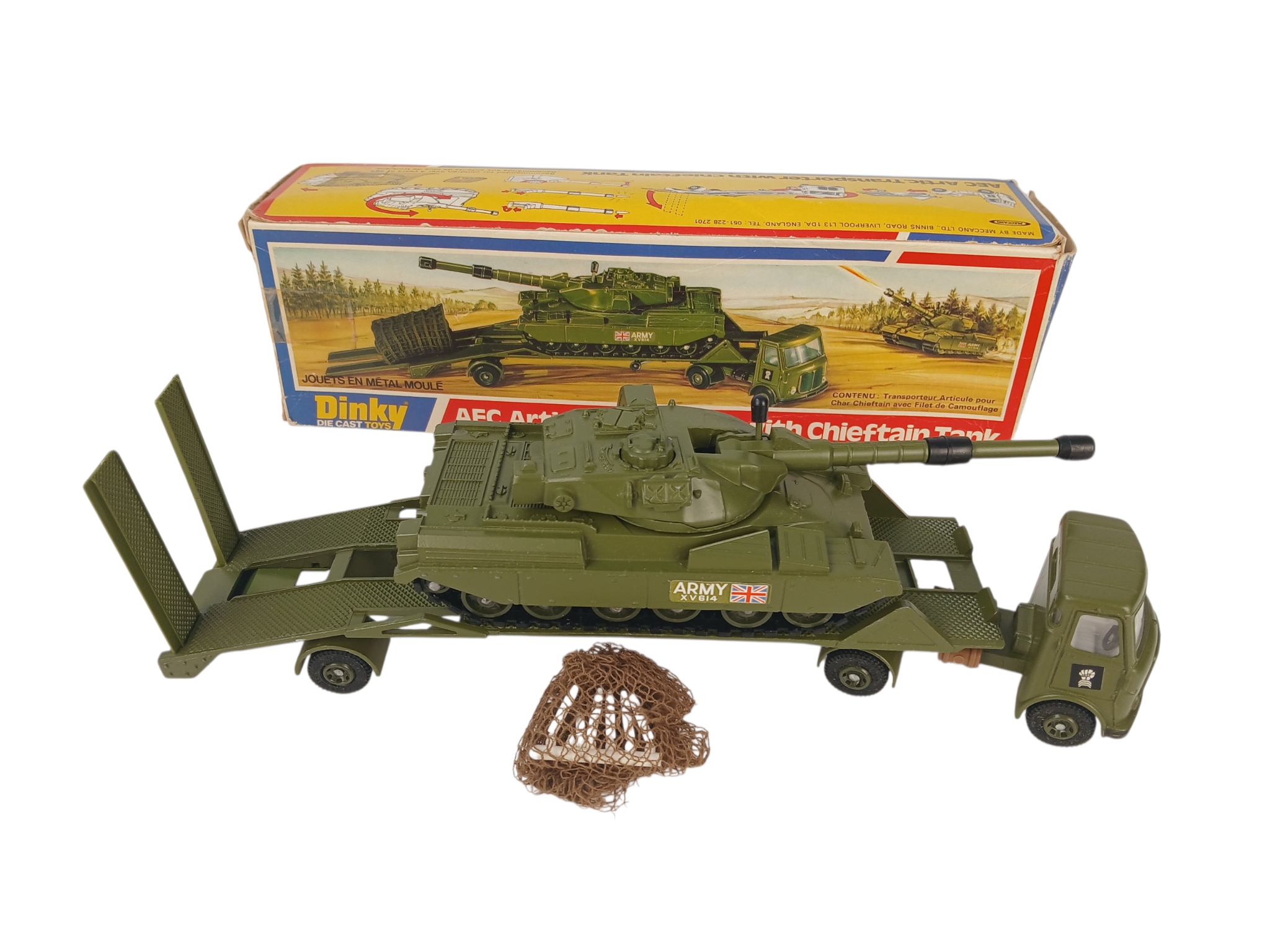 Boxed Dinky Toys 616 AEC Artic Transporter with Chieftain Tank – netting and shells present