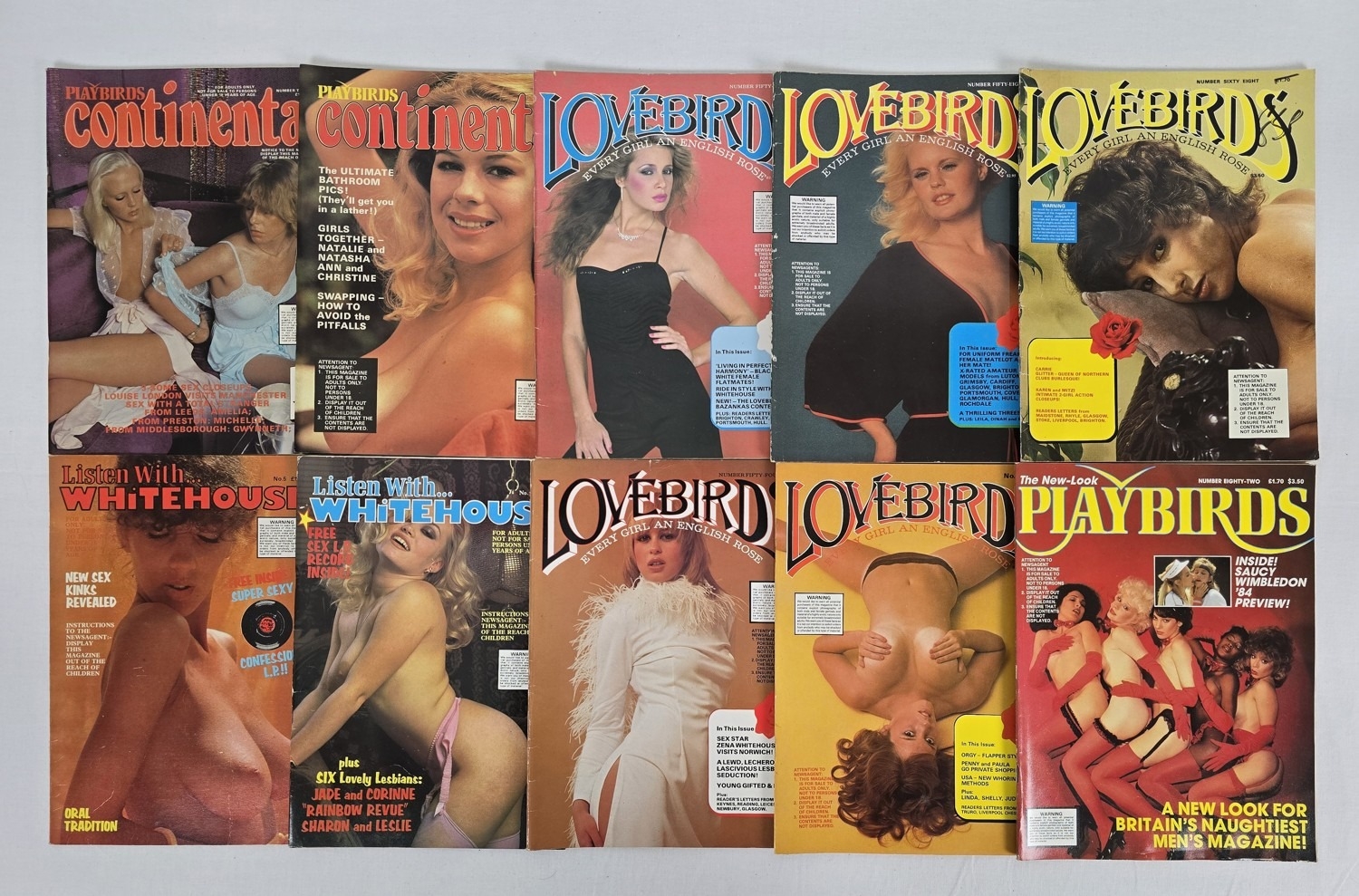 10 assorted vintage issues of Lovebirds, Playbirds and Whitehouse adult erotic magazines. To include Playbirds Continental and Listen with Whitehouse.