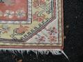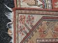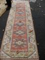 A modern peach ground runner having seven central medallions, 265 x 80cm.