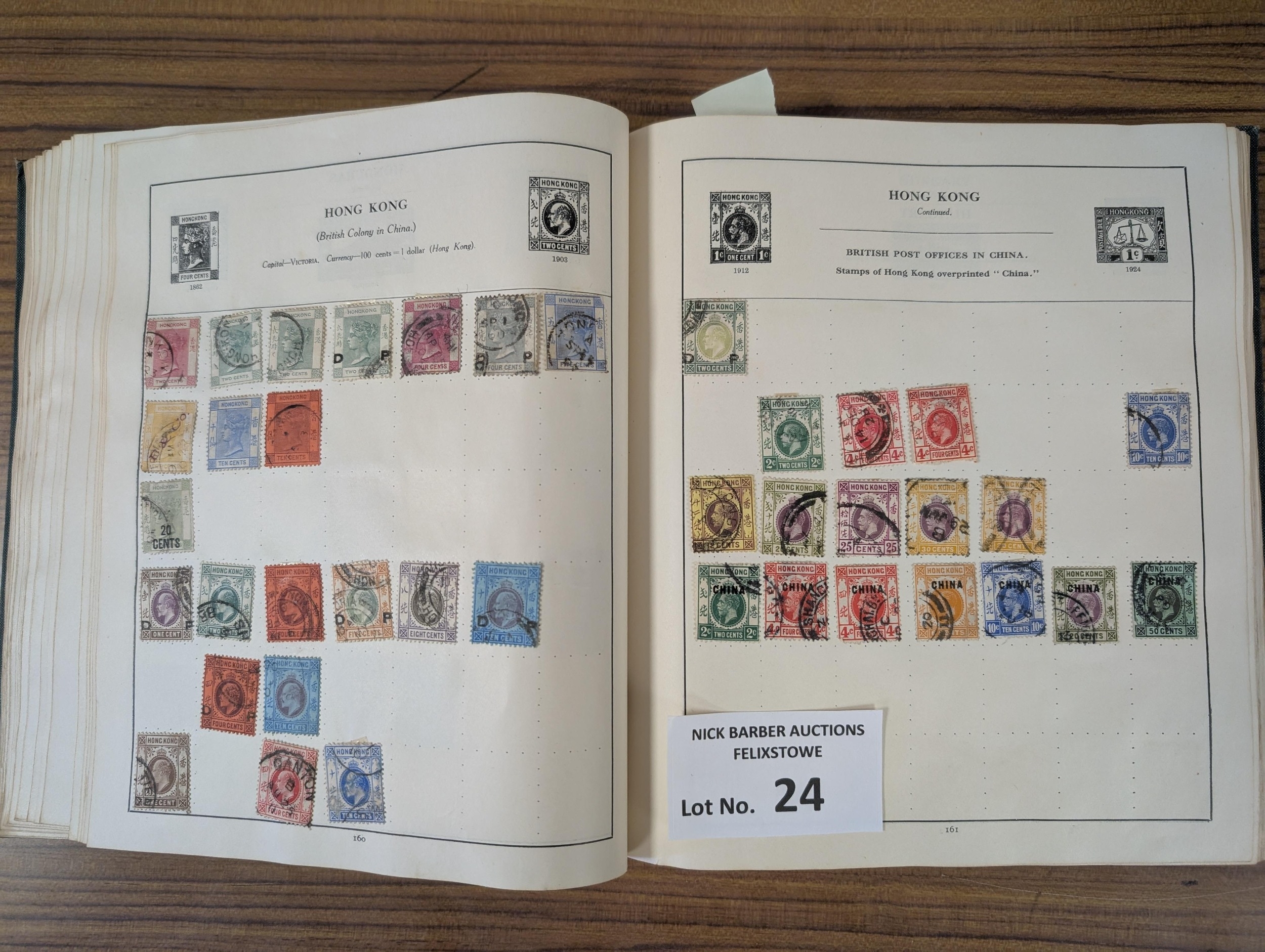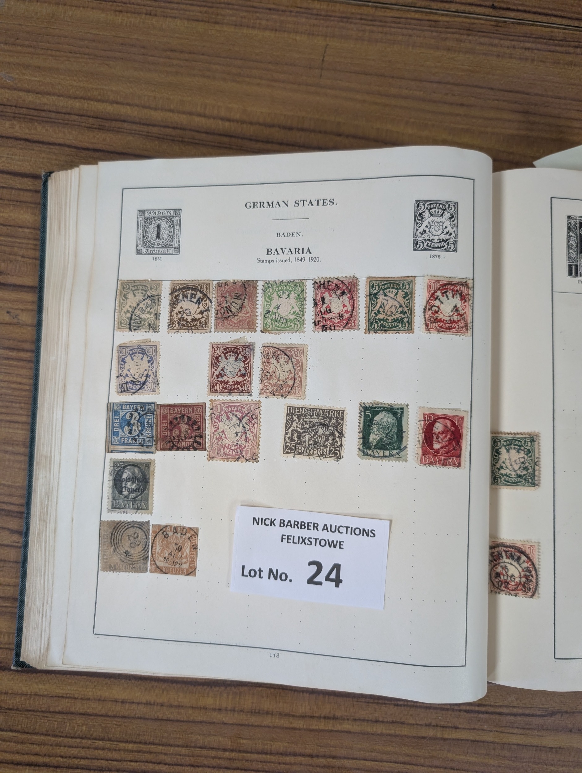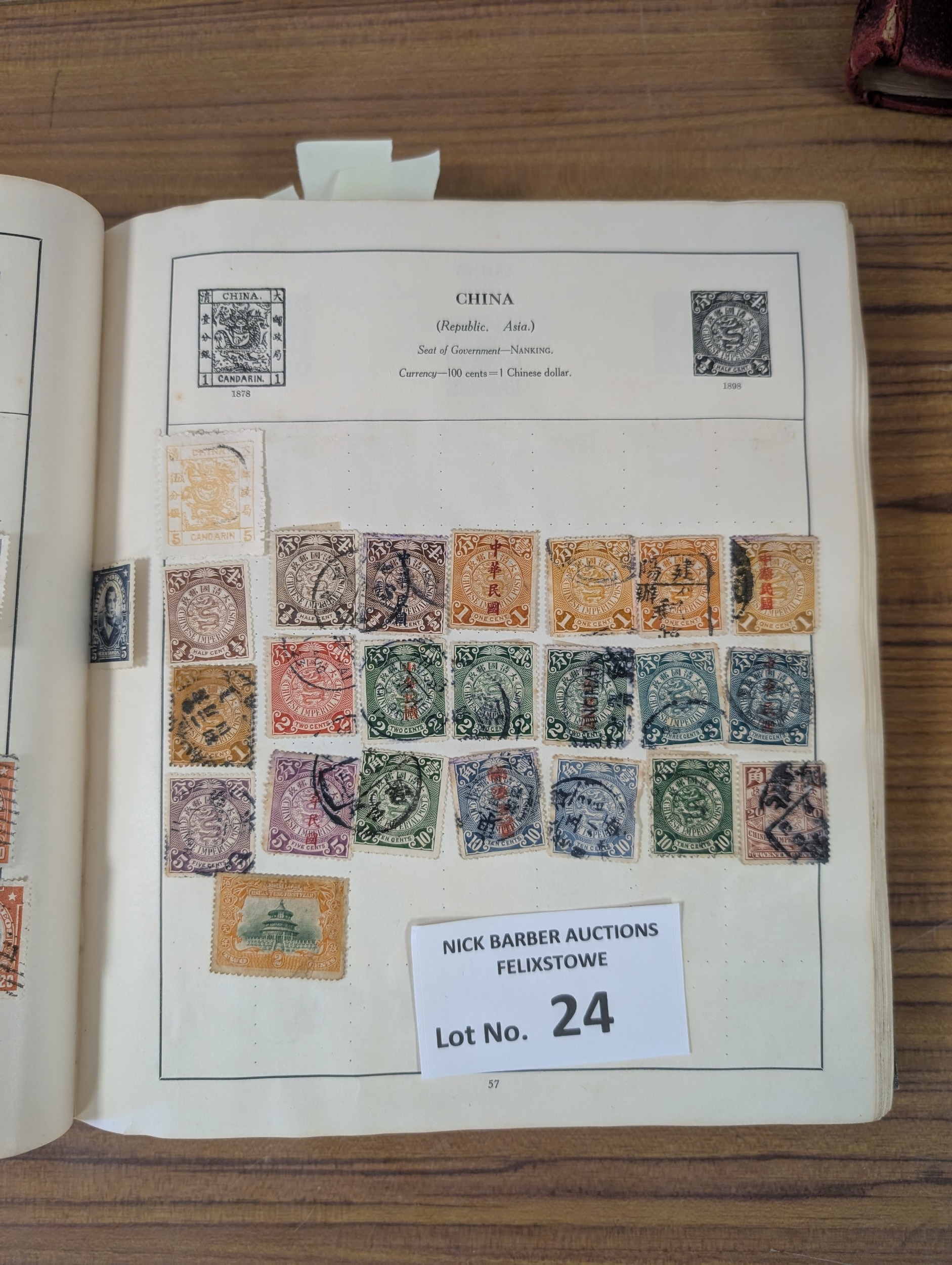 Stamps: 3x vintage albums, well filled, QV onwards including interesting China, Germany, Hong Kong, India, Japan.