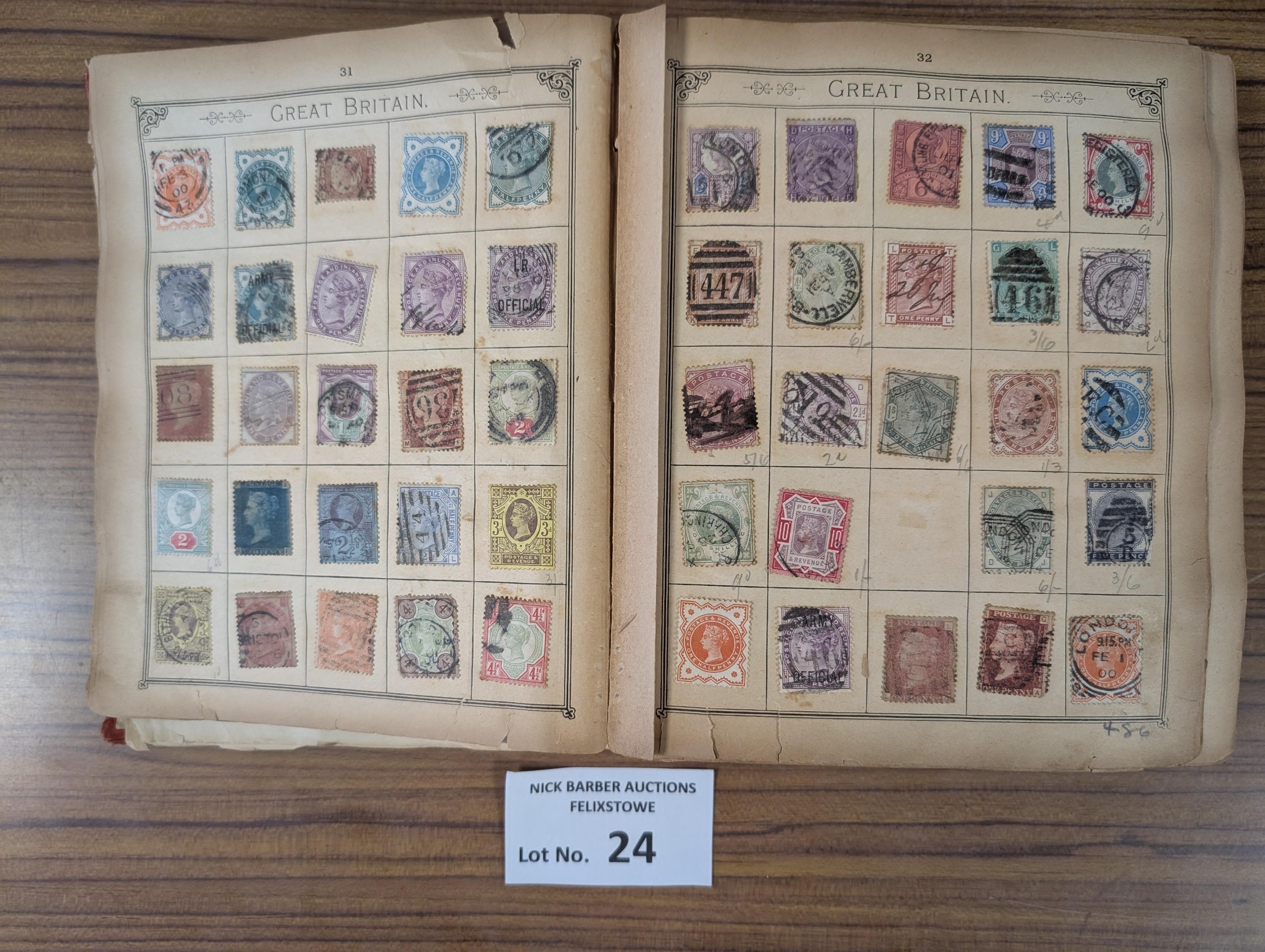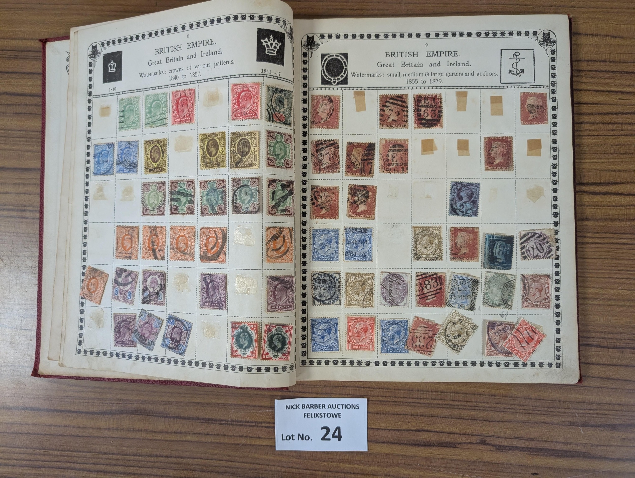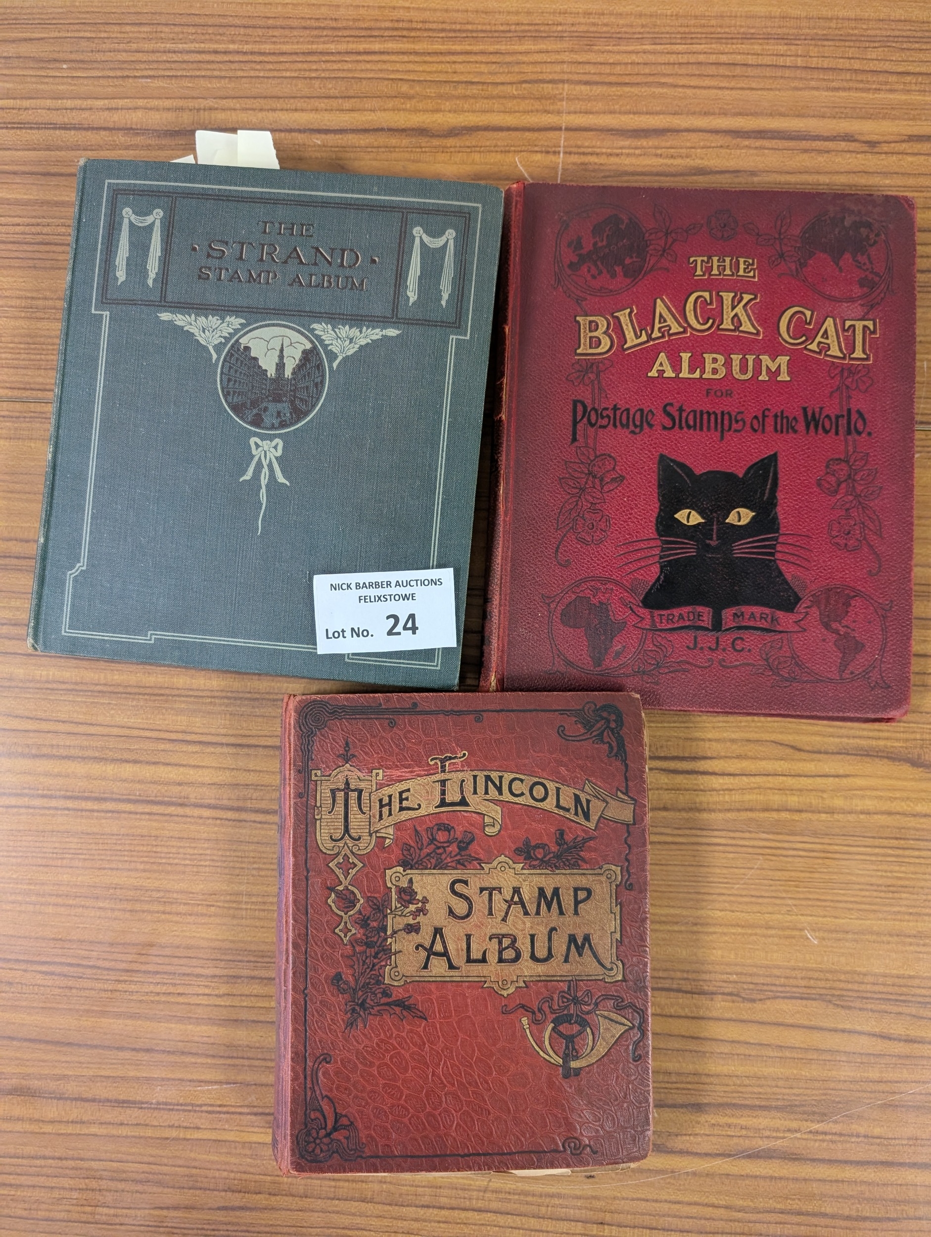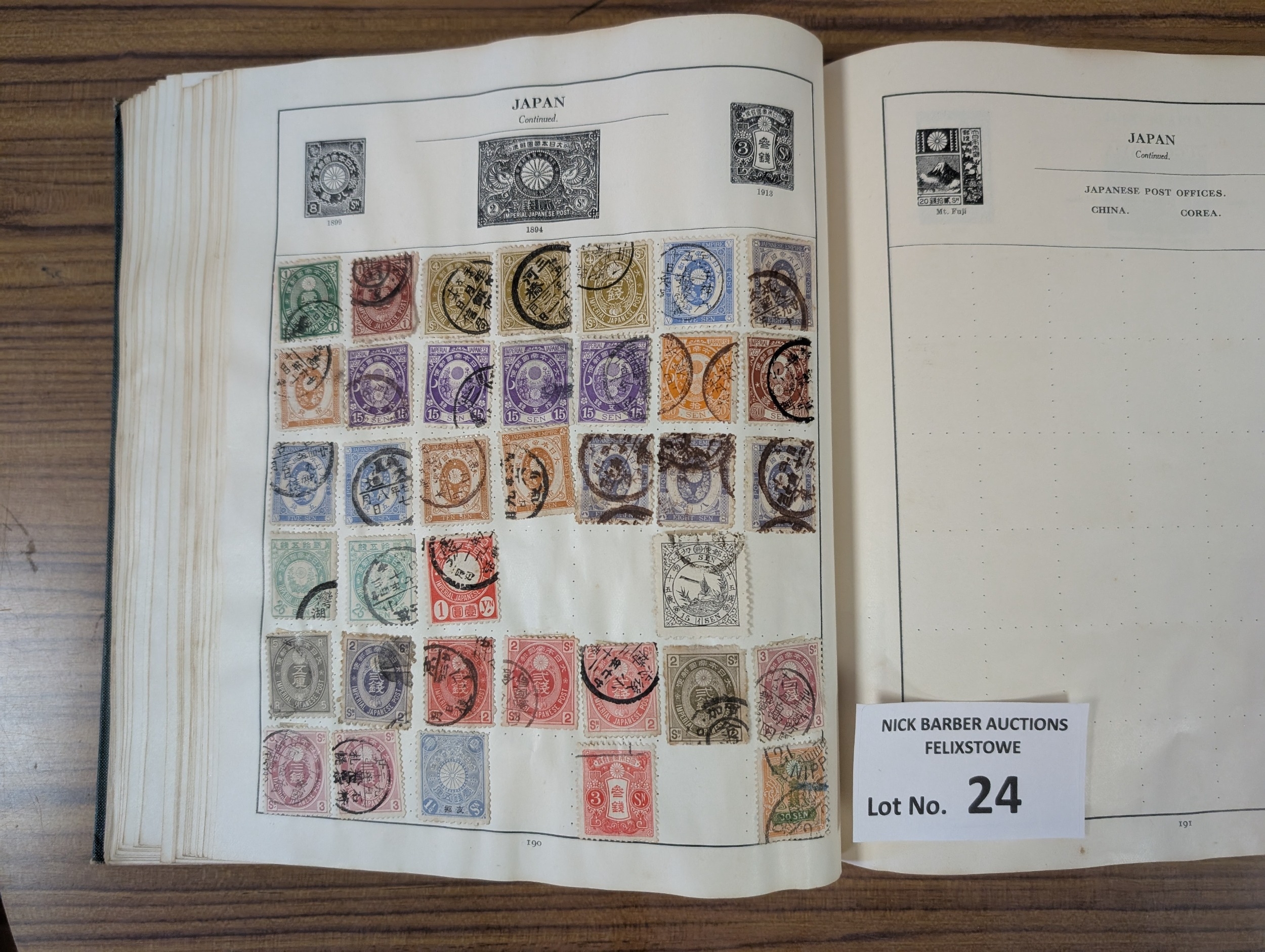 Stamps: 3x vintage albums, well filled, QV onwards including interesting China, Germany, Hong Kong, India, Japan.