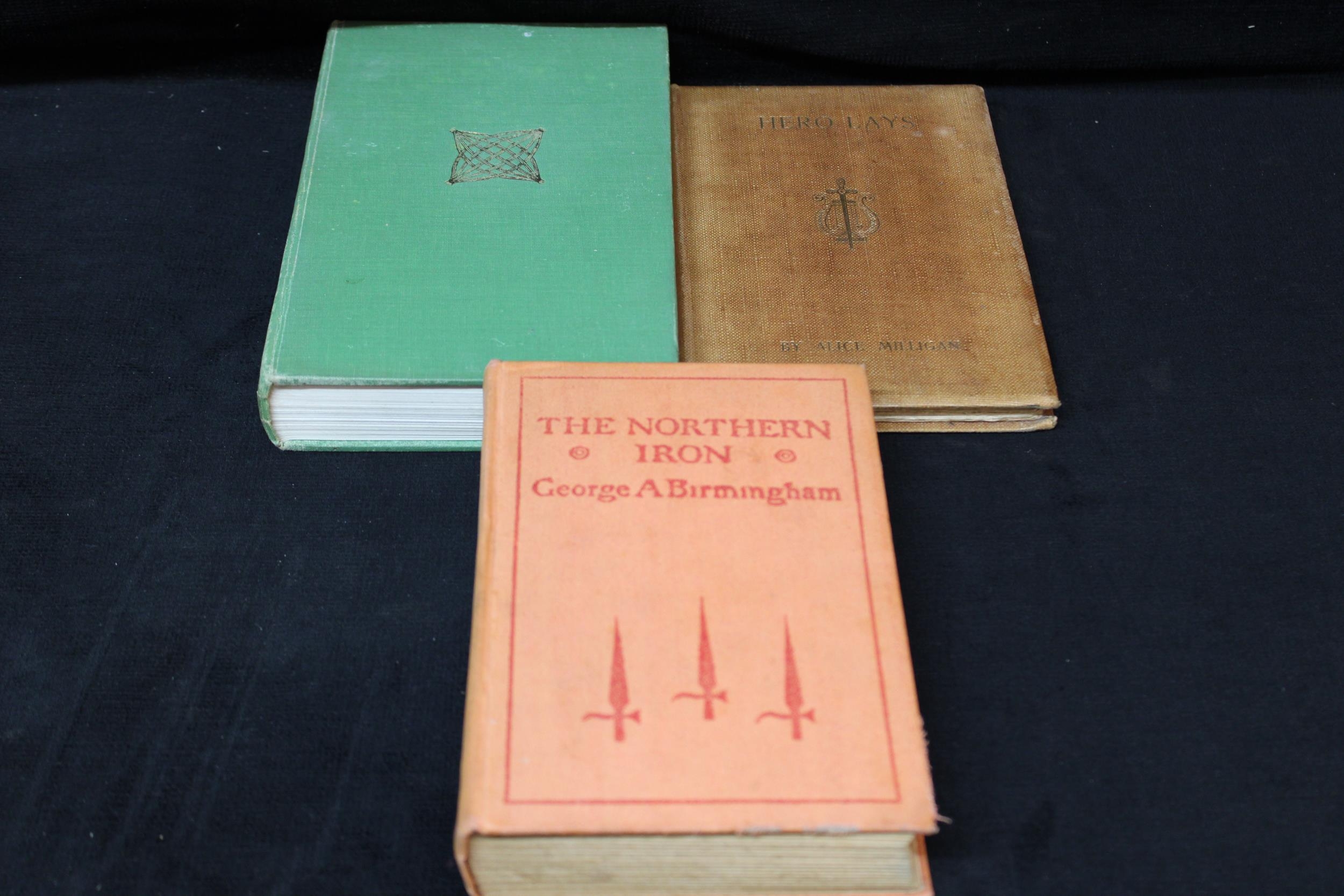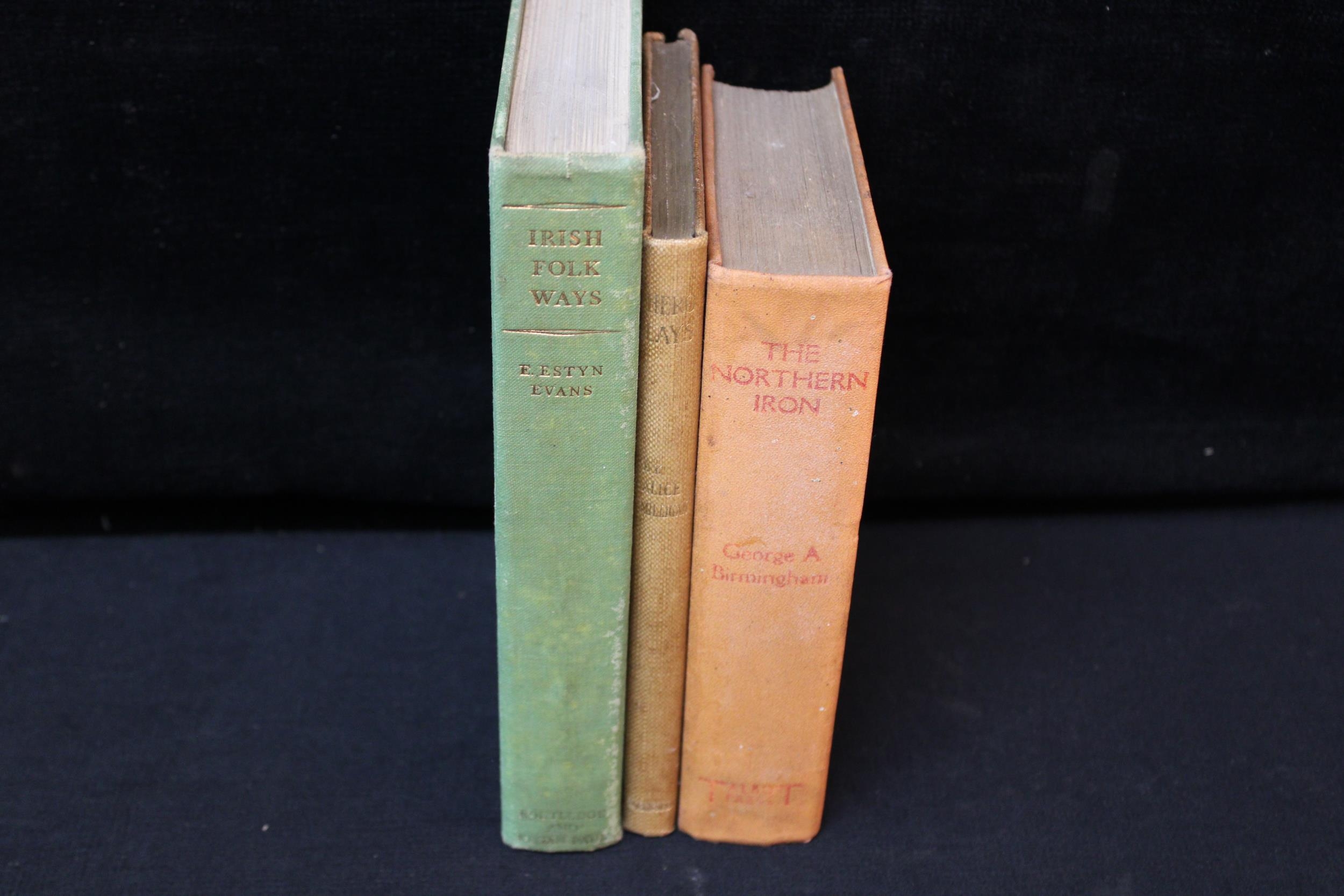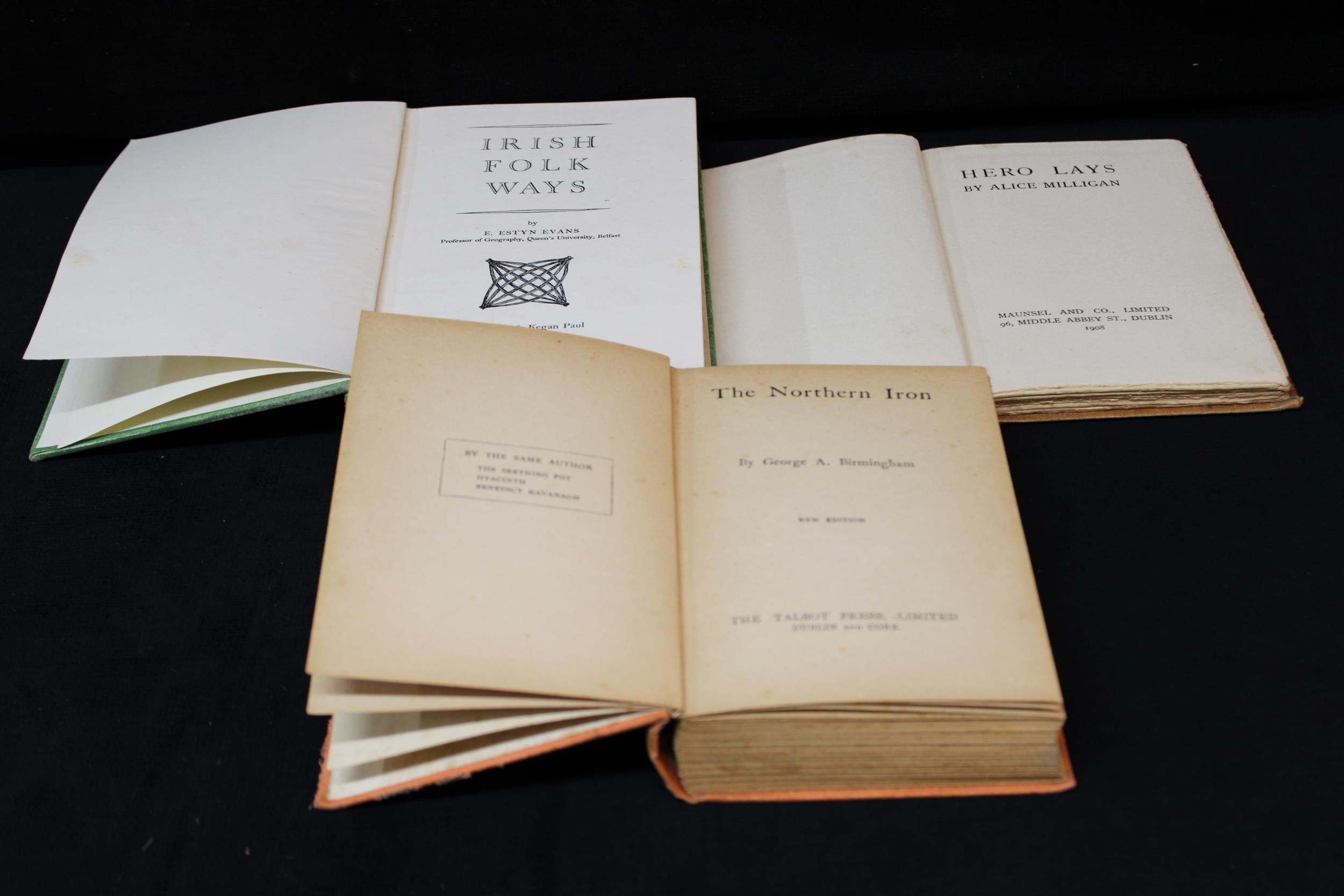 3 Books: Hero Lays by Allice Milligan 1908: Irish Folk Ways by Estyn Evans 1957: and The Northern Iron by George Birmingham all 1st Editions