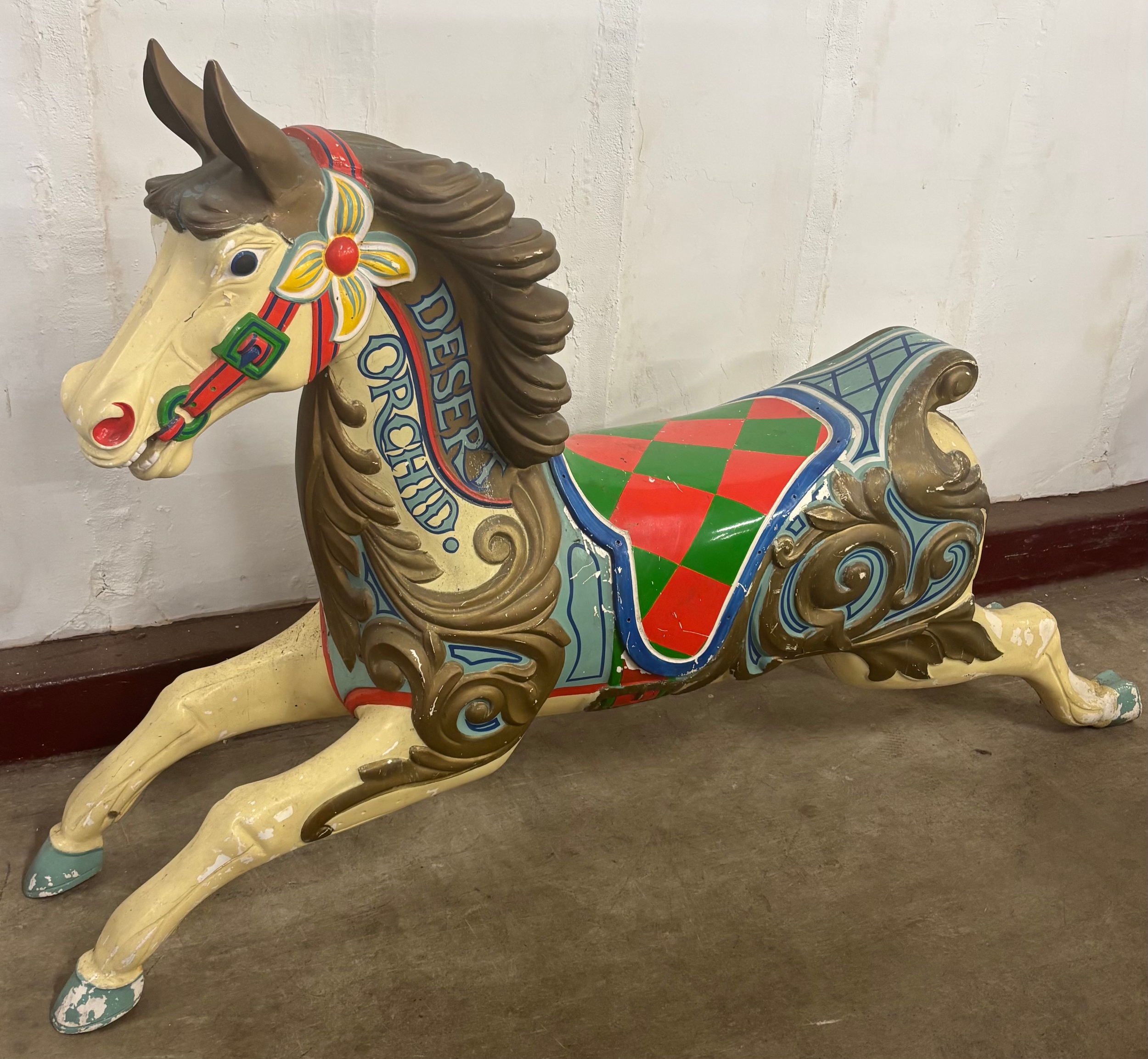 A vintage fibreglass carousel horse