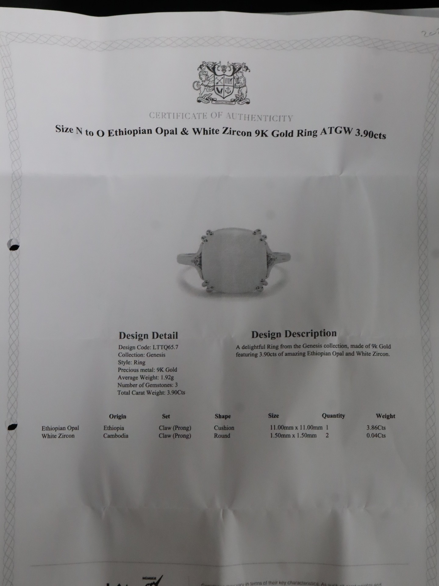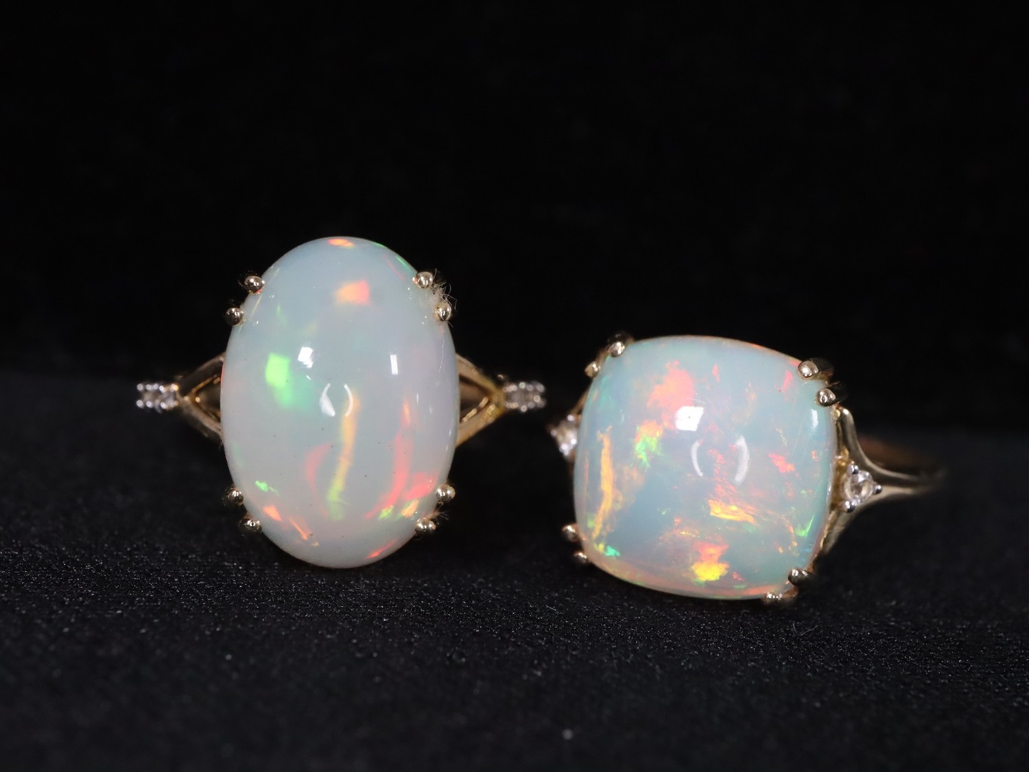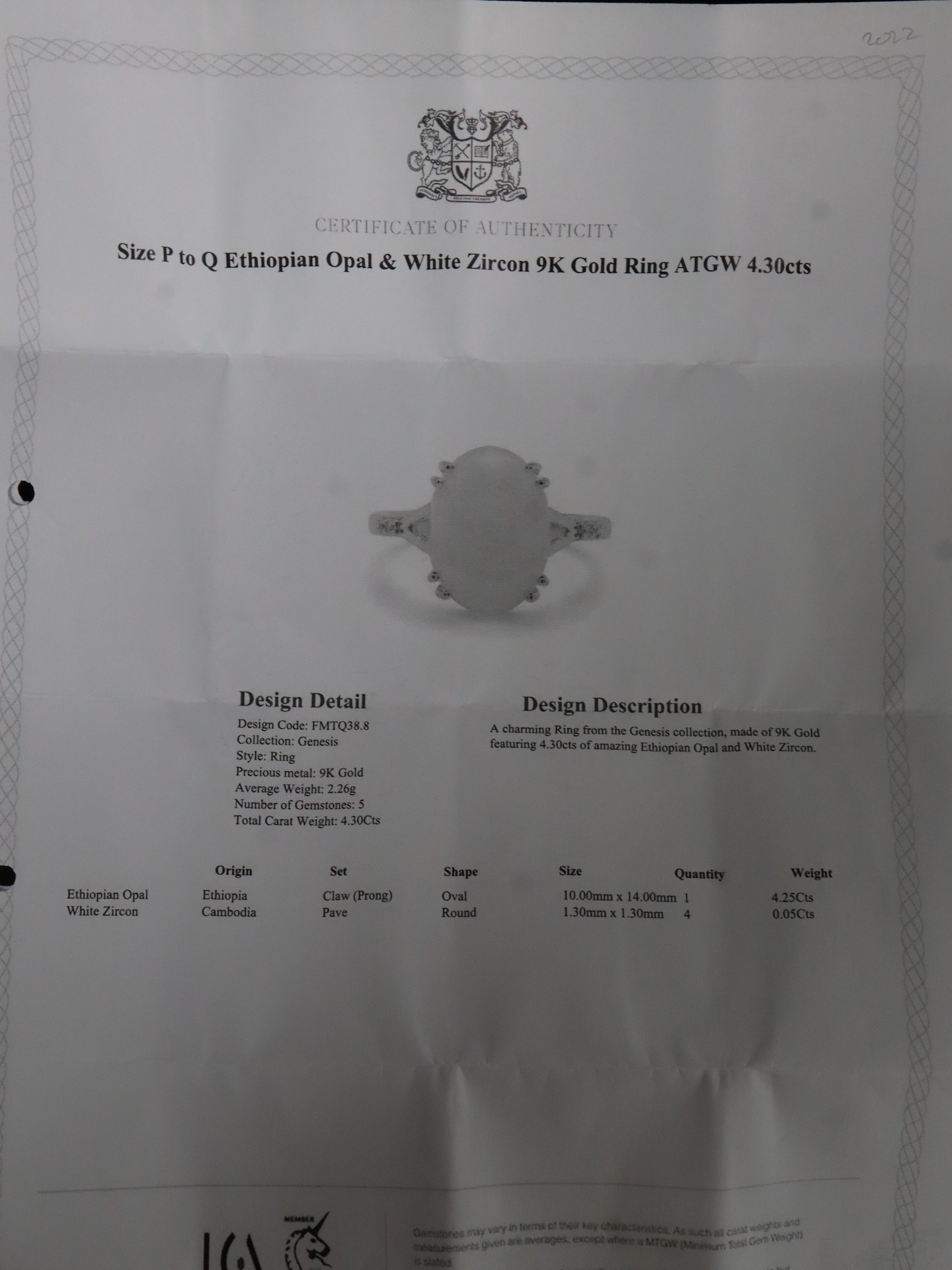 Ethiopian Opal & White Zircon 9K Gold Ring Atgw 3.90cts Size N to O, Ethiopian Opal & White Zircon 9K Gold Ring Atgw 4.30cts Size P to Q -5.9g