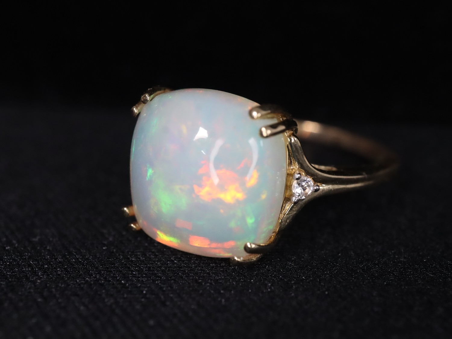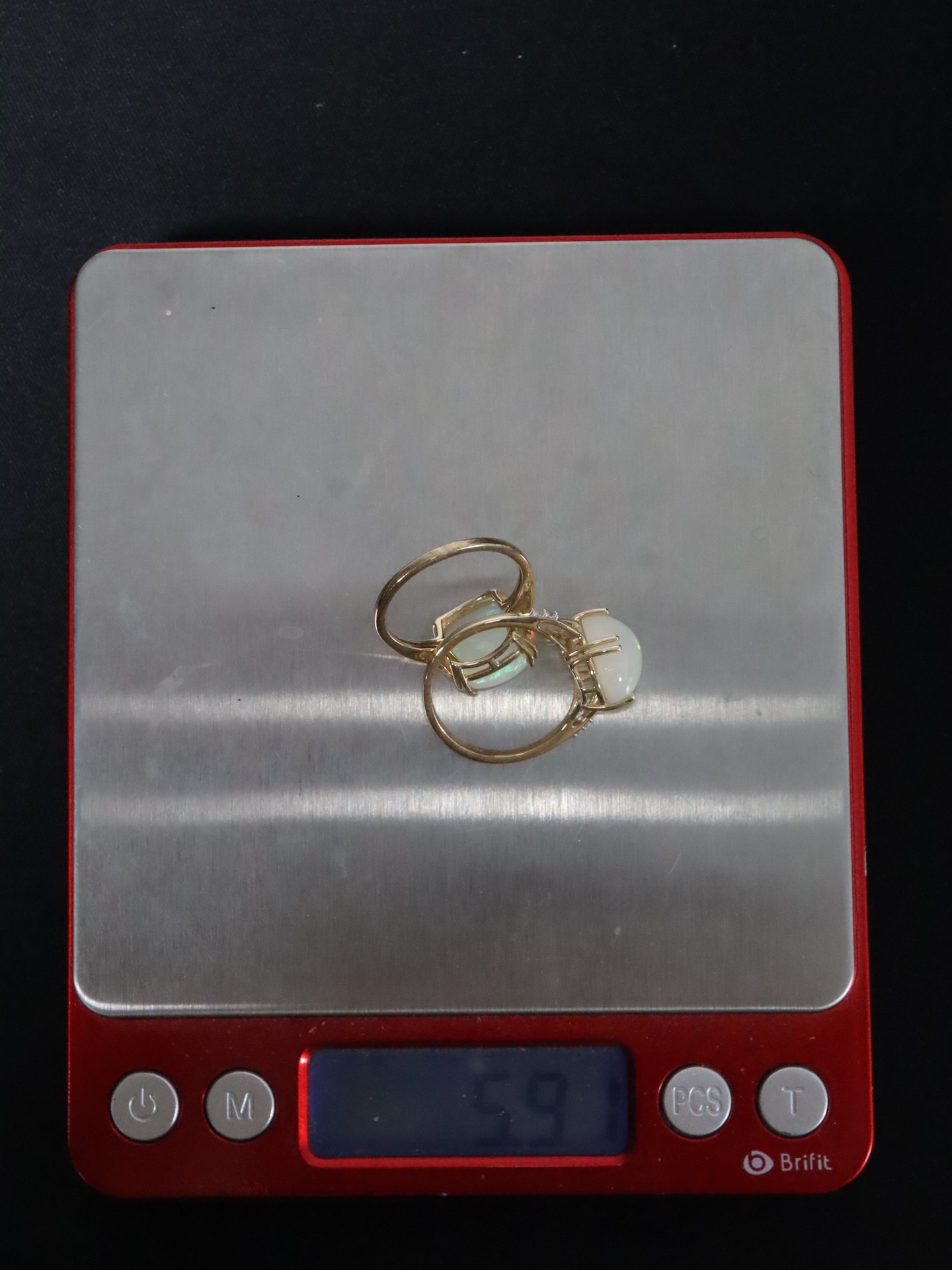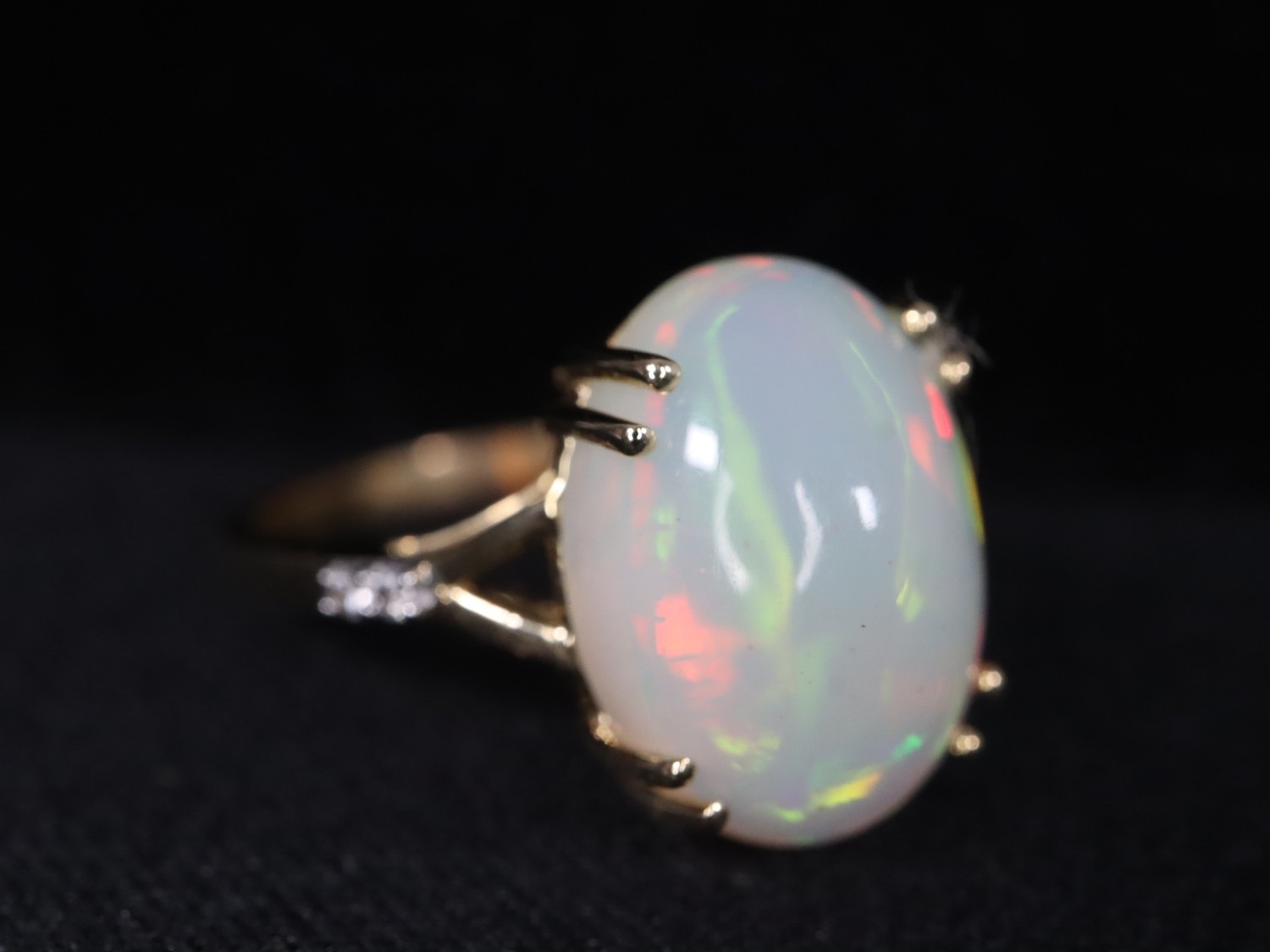 Ethiopian Opal & White Zircon 9K Gold Ring Atgw 3.90cts Size N to O, Ethiopian Opal & White Zircon 9K Gold Ring Atgw 4.30cts Size P to Q -5.9g