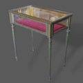 An Edwardian carved giltwood bijouterie, the hinged top above a baize lined interior, raised upon turned tapering fluted legs, 72cms wide by 43cms deep and 79cms tall