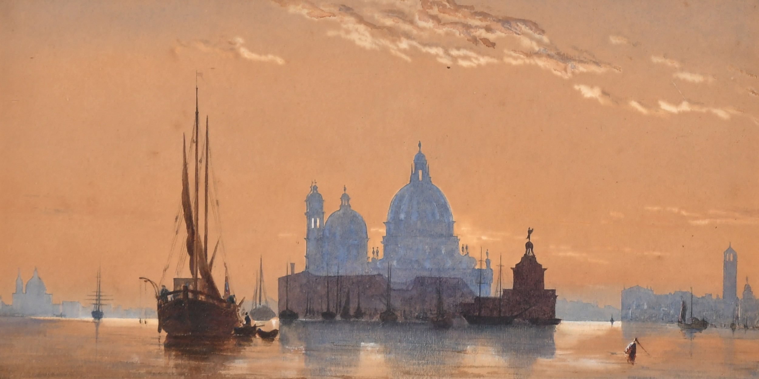 Attributed to Edward William Cooke (1811-1880) British. "Santa Maria della Salute", Watercolour c.1867, 7" x 13" (17.8 x 33cm)