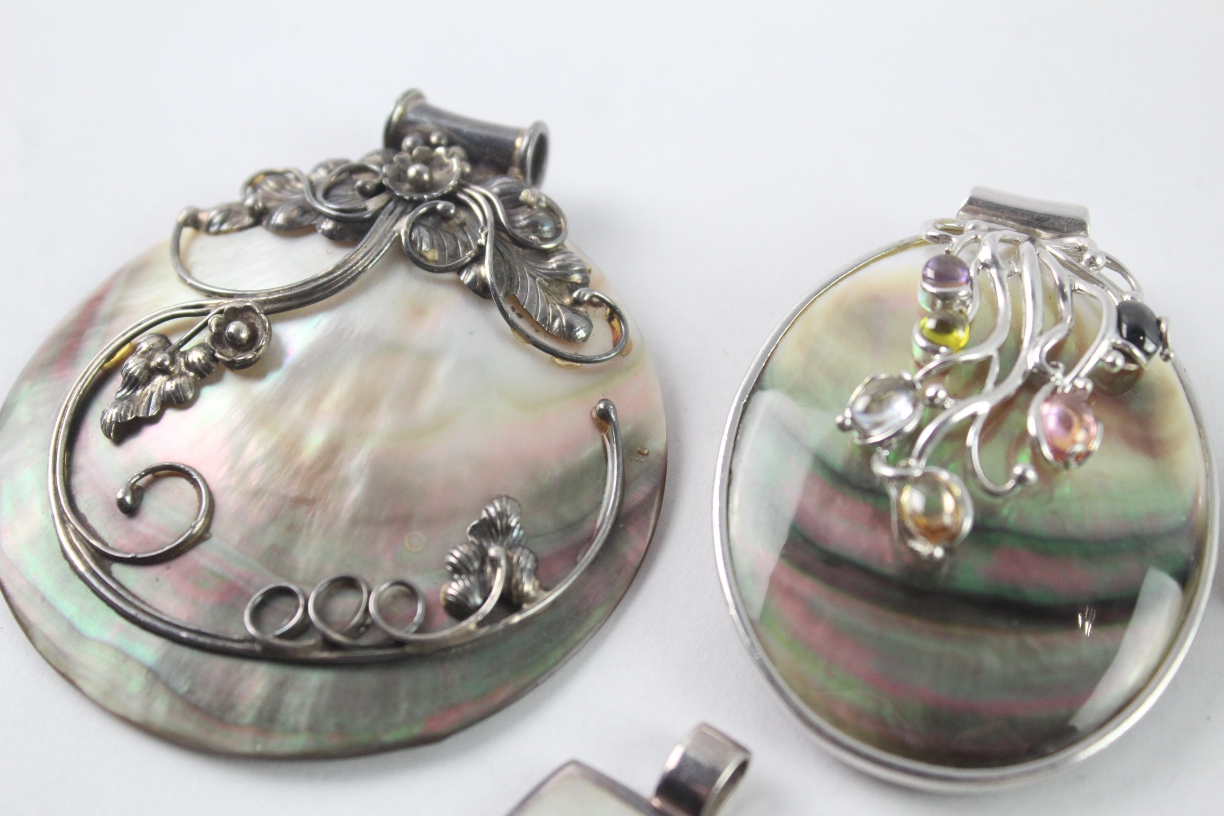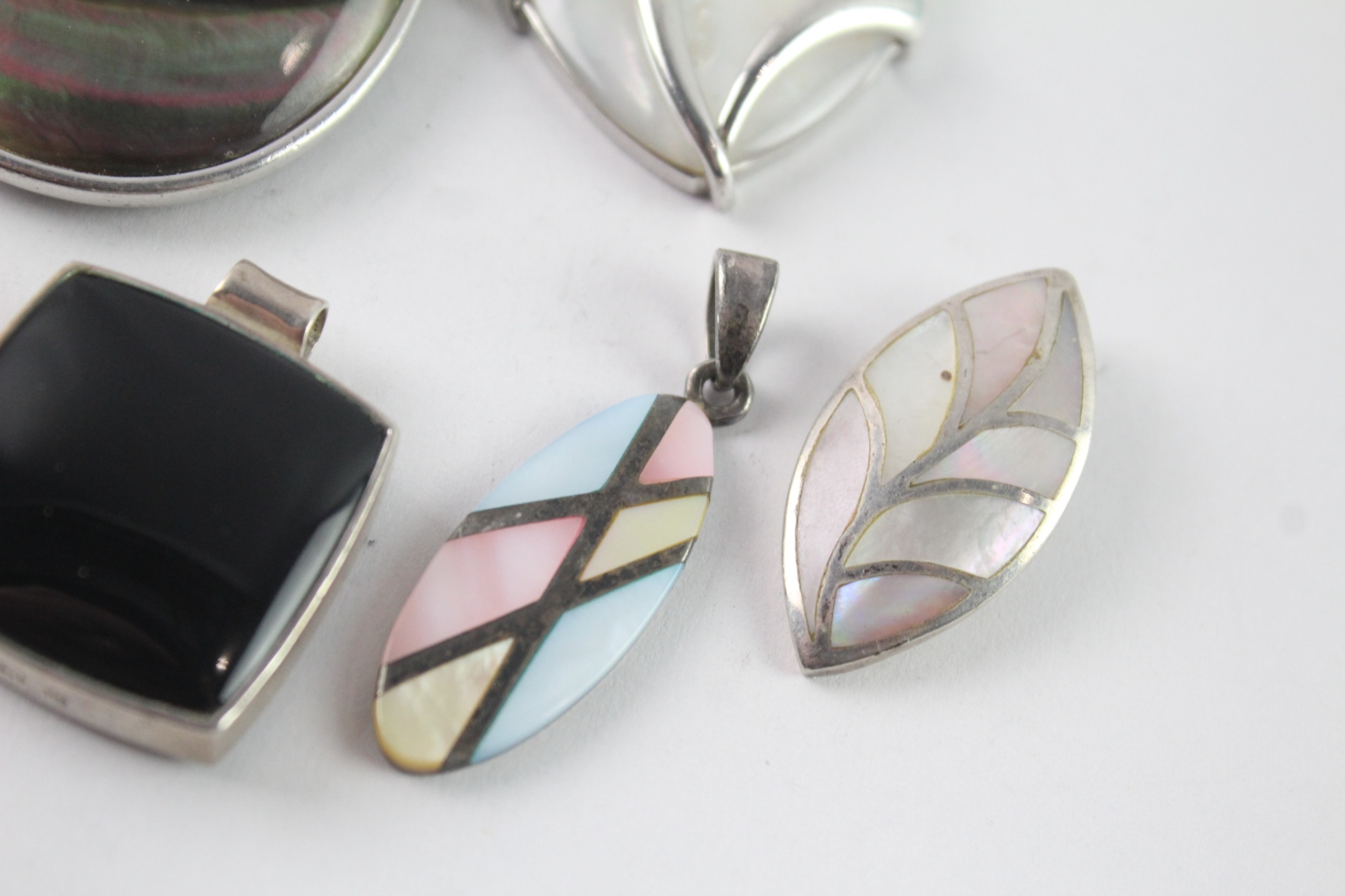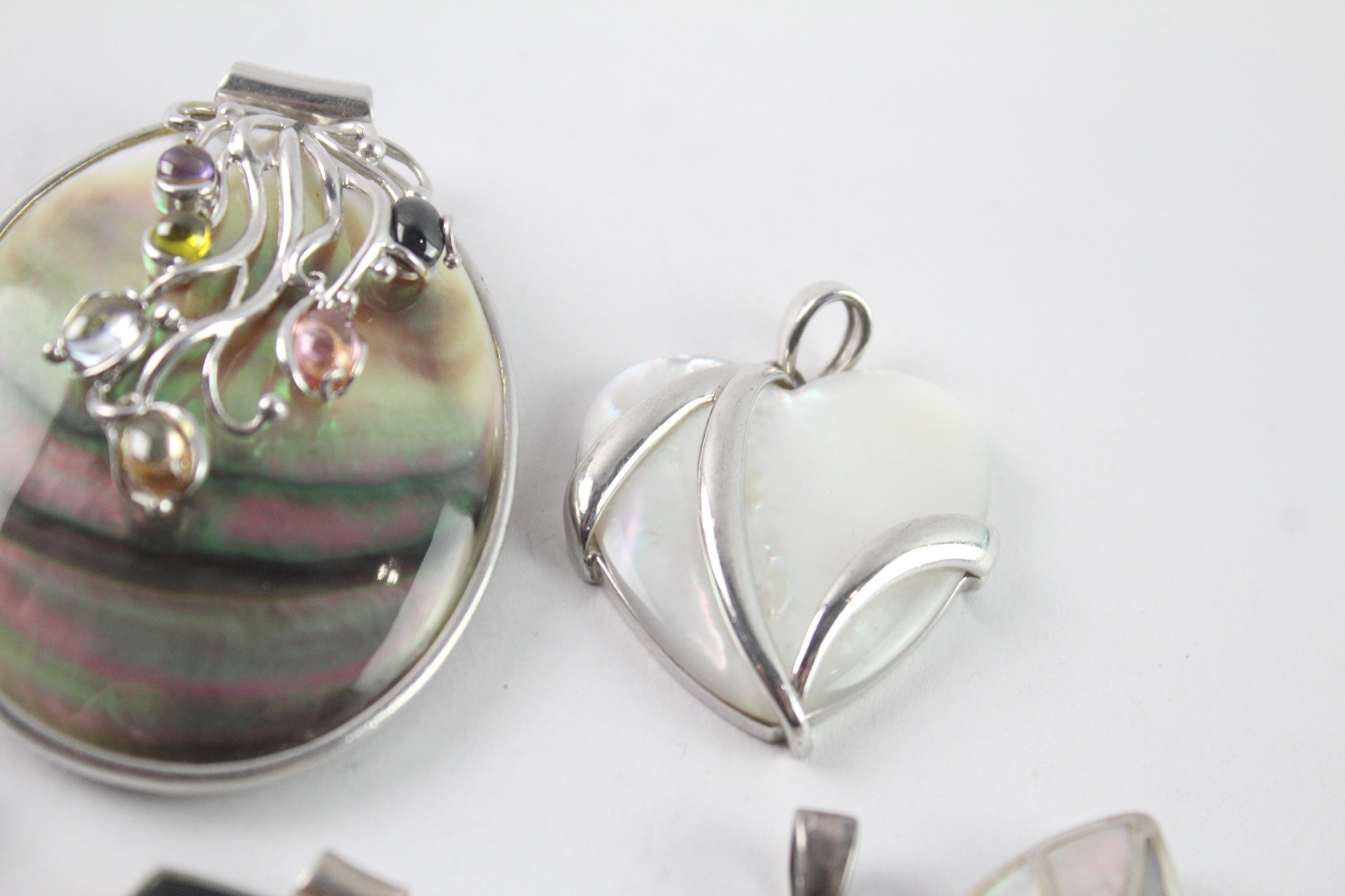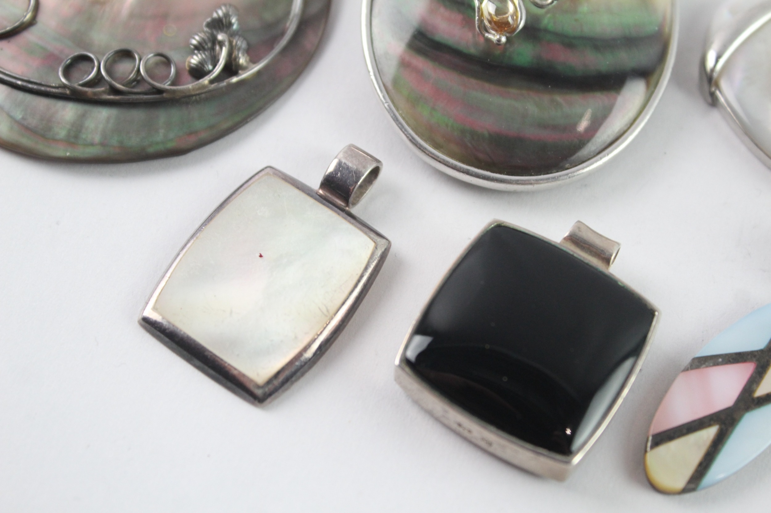 Collection of Sterling Silver Pendants inc. MOP, Gemstone x 7 100g