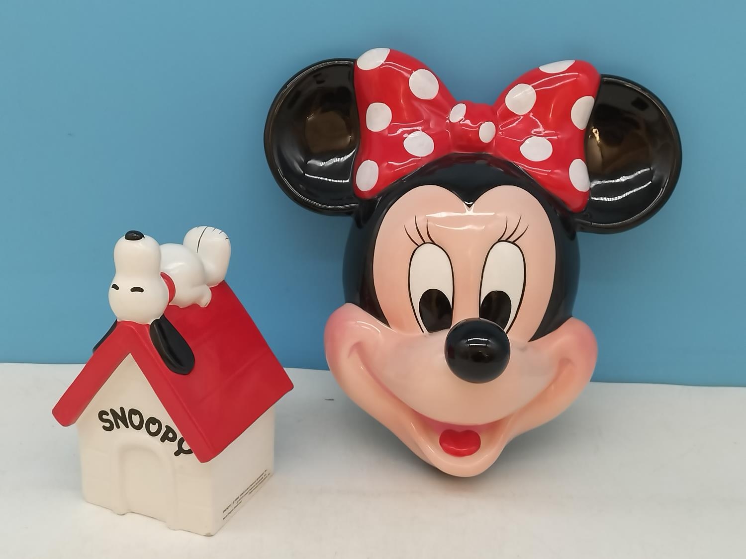 Minnie Mouse Face Wall Plaque (25cm x 24cm) plus Snoopy Money Box.