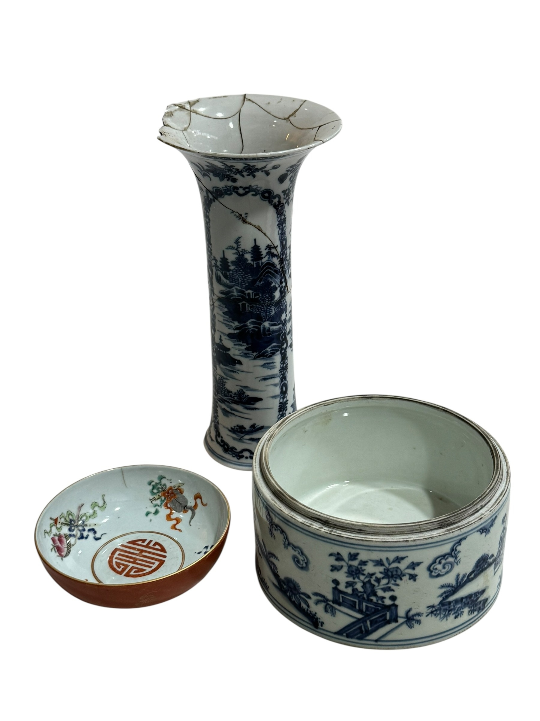 Chinese blue and white vase, blue and white bowl and small porcelain bowl (3).